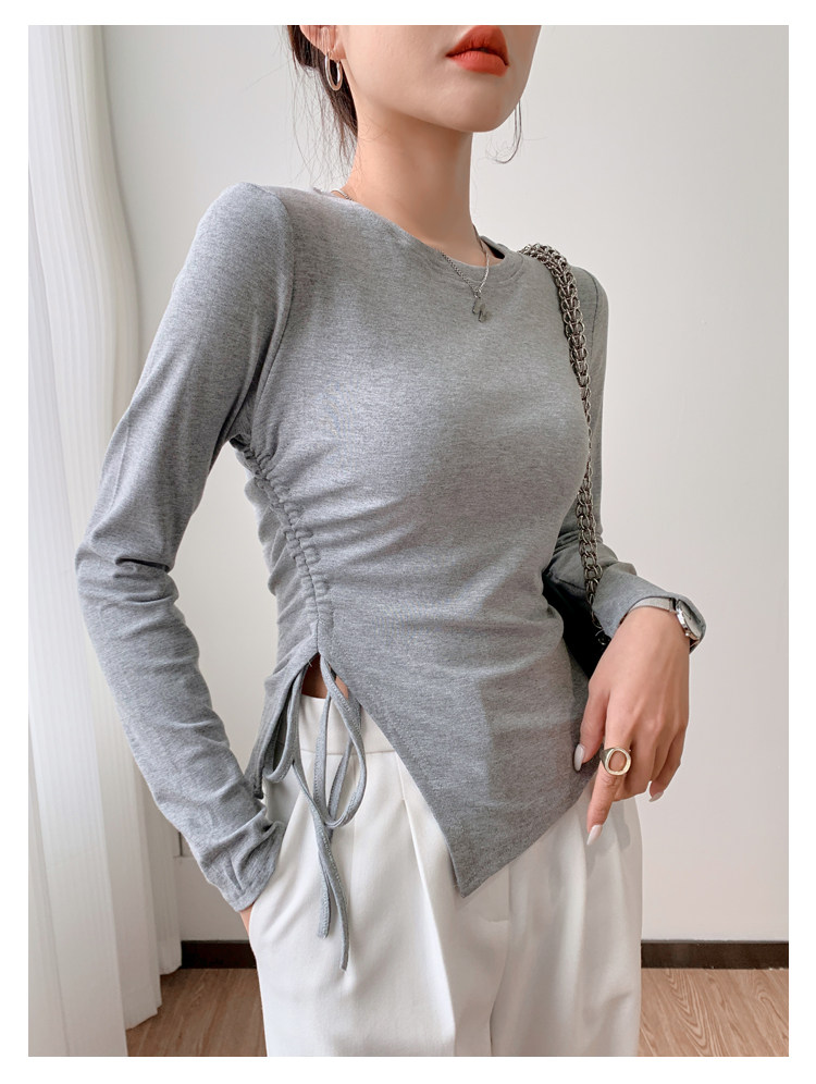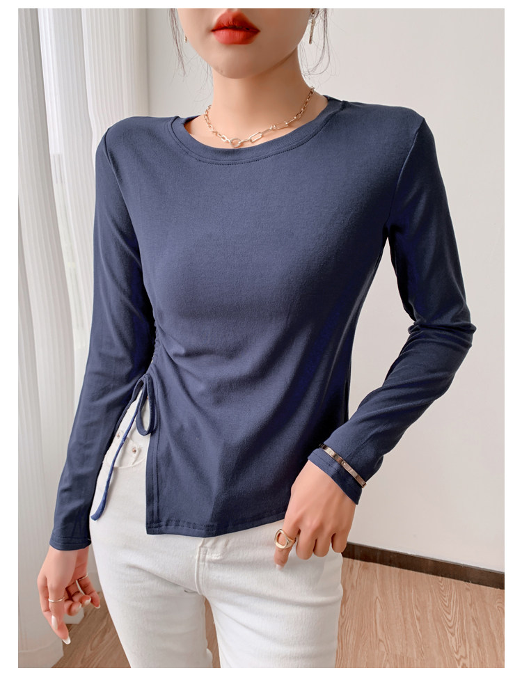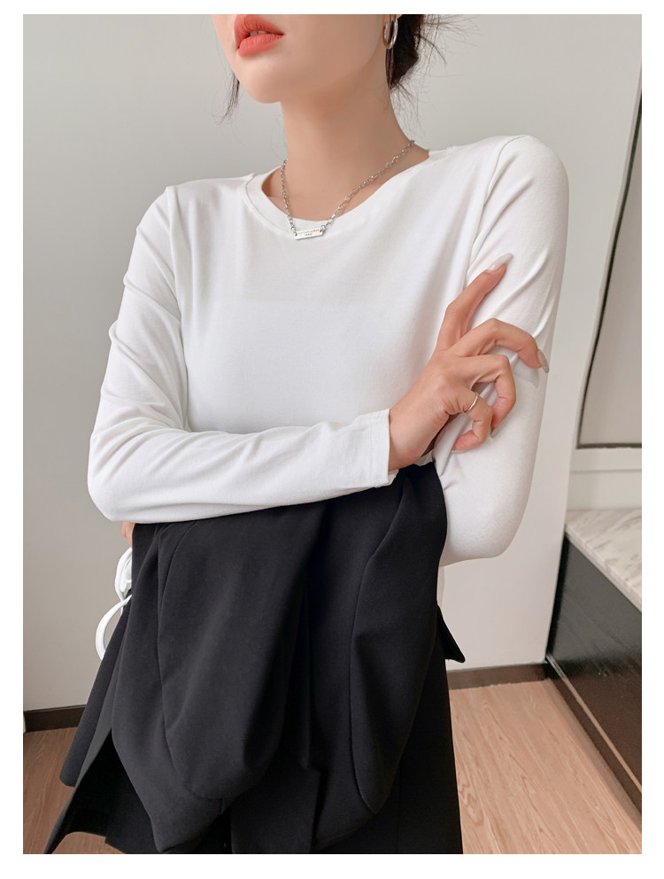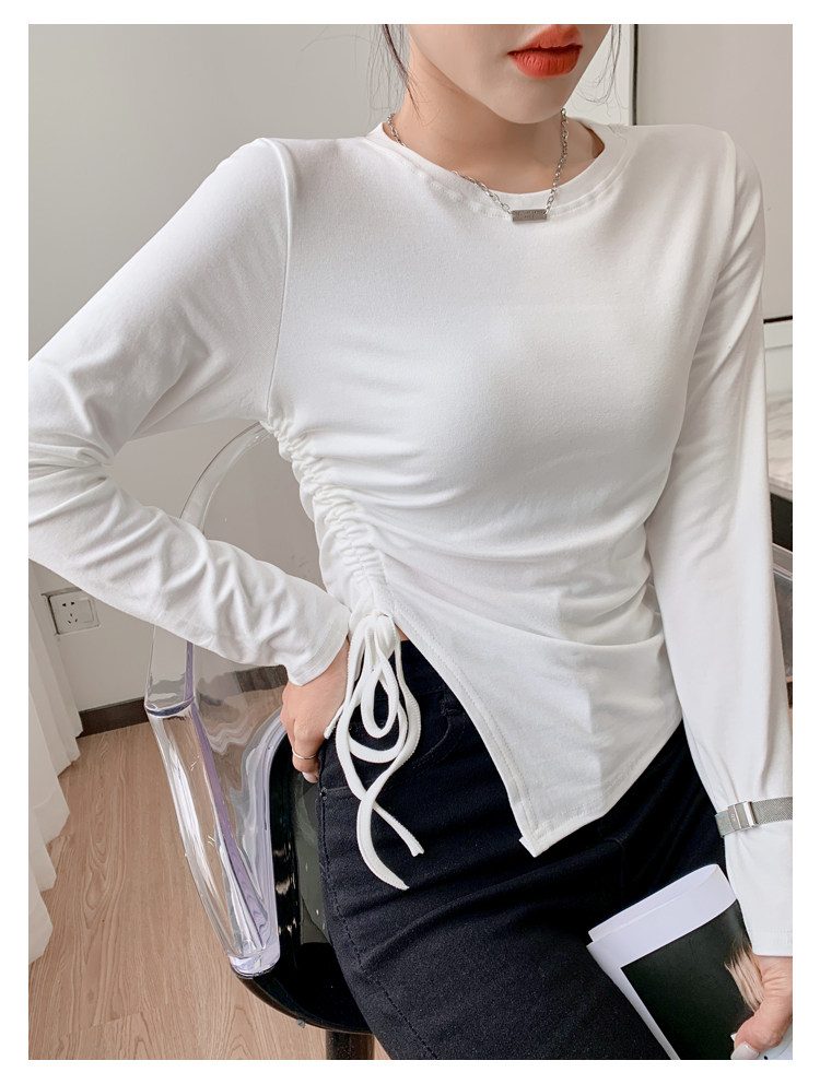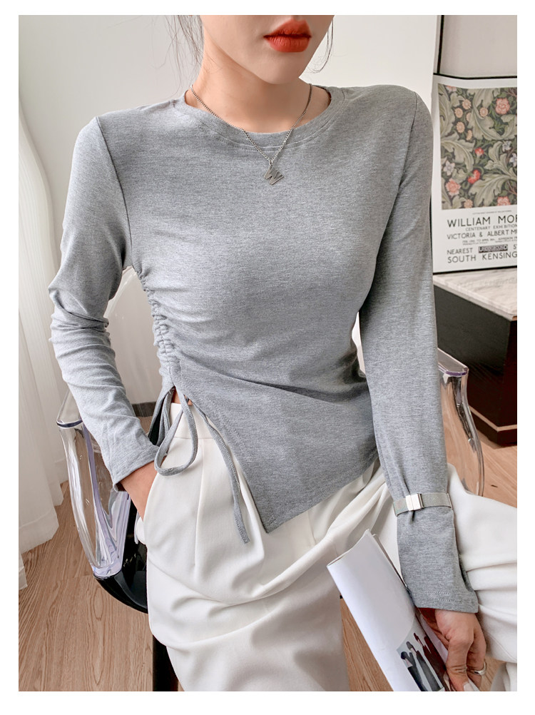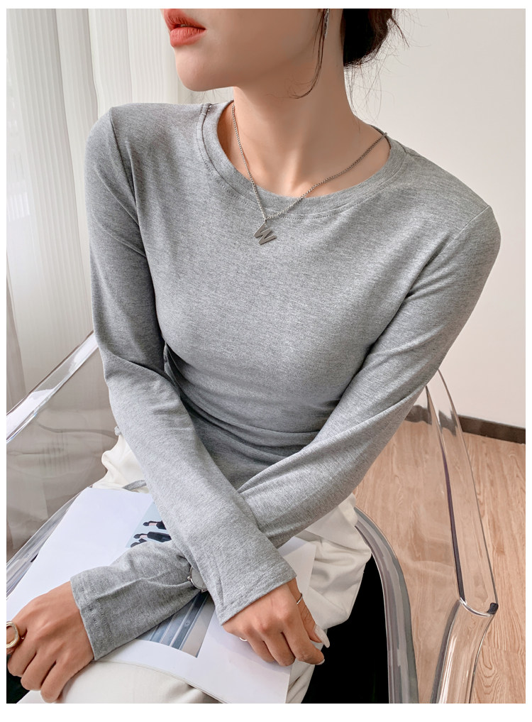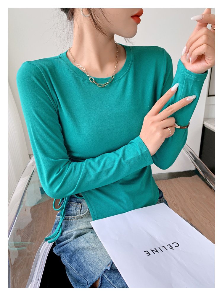 RM23648#圆领修身显瘦打底衫设计感小众长袖早秋新款T恤内搭上衣