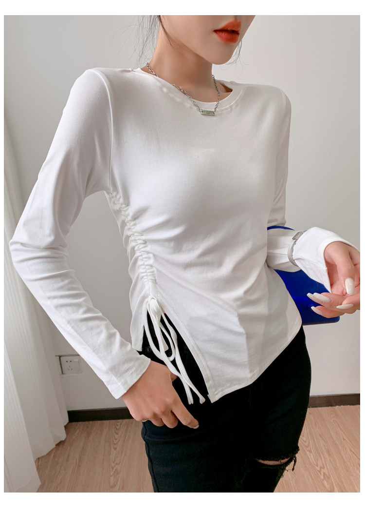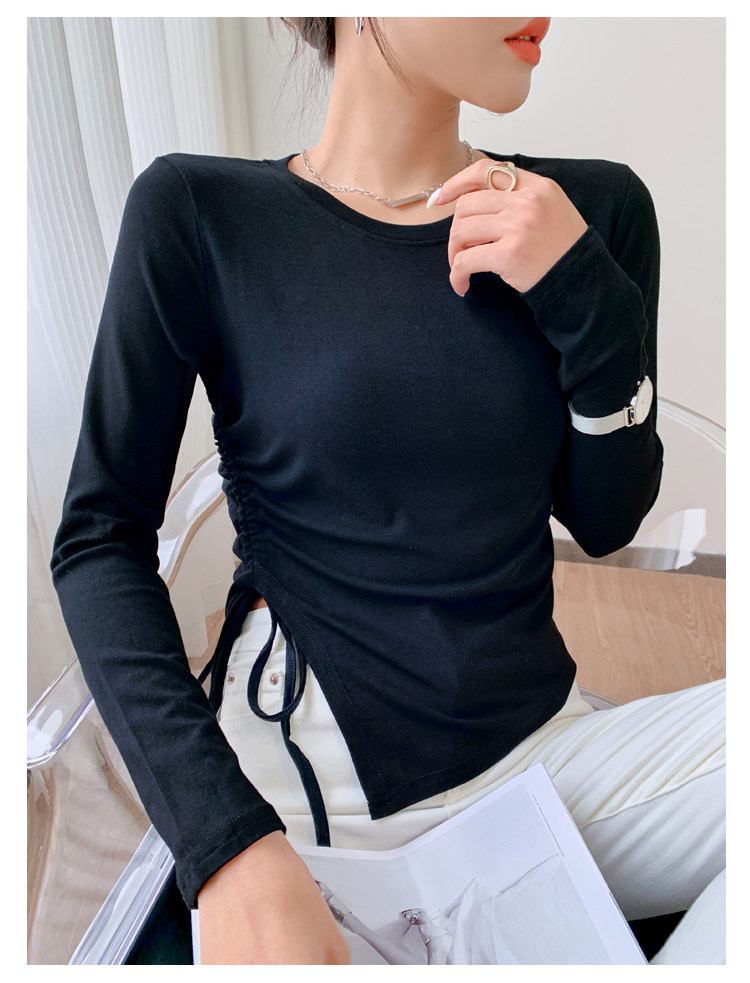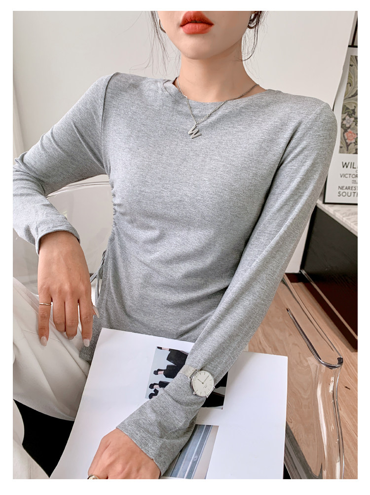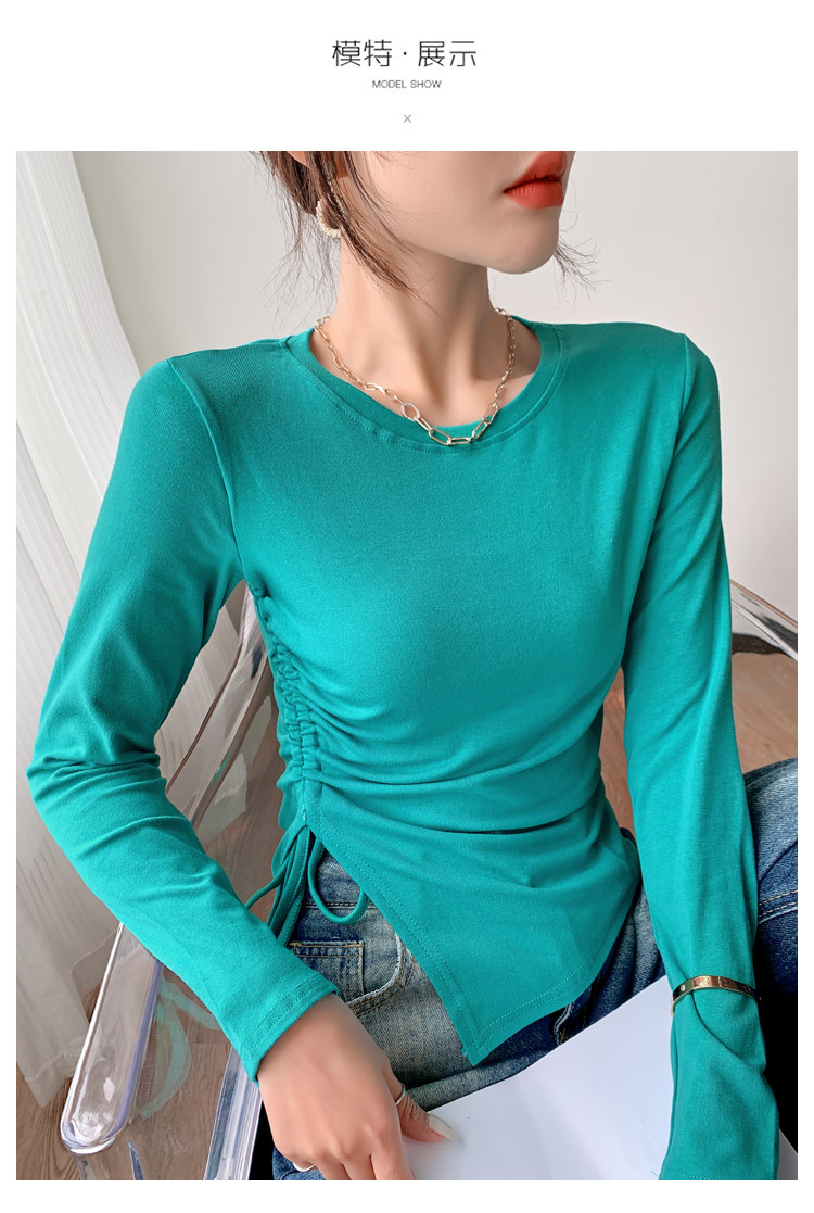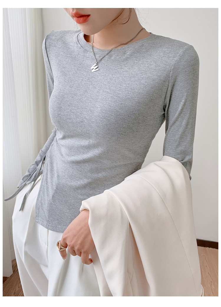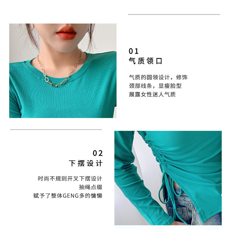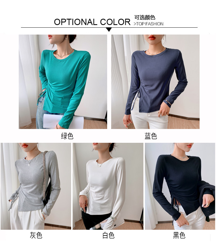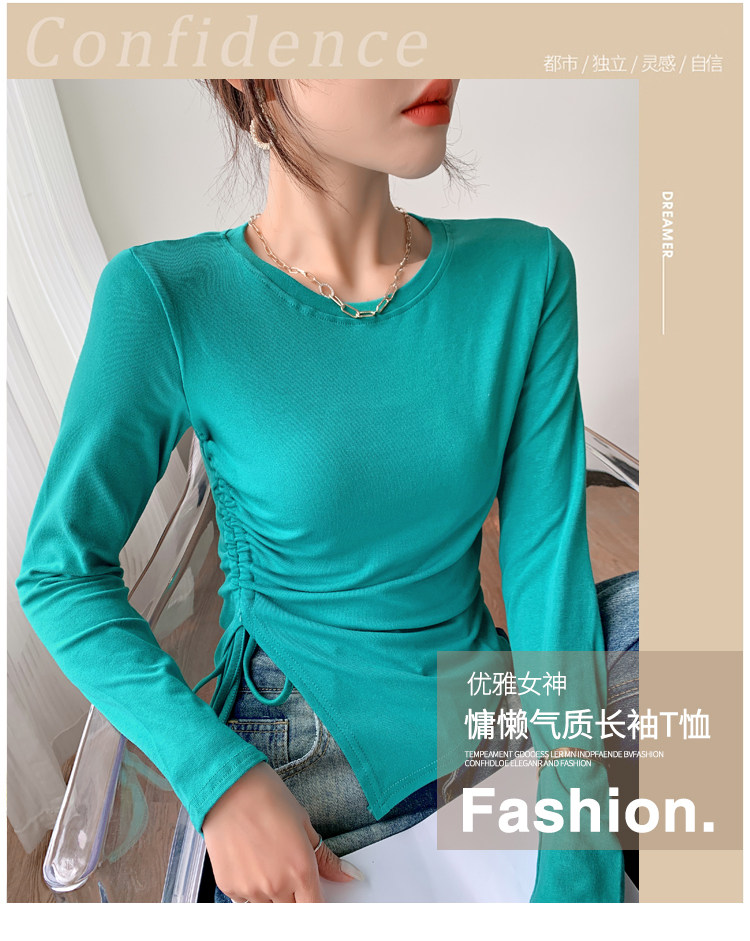RM23648#圆领修身显瘦打底衫设计感小众长袖早秋新款T恤内搭上衣
