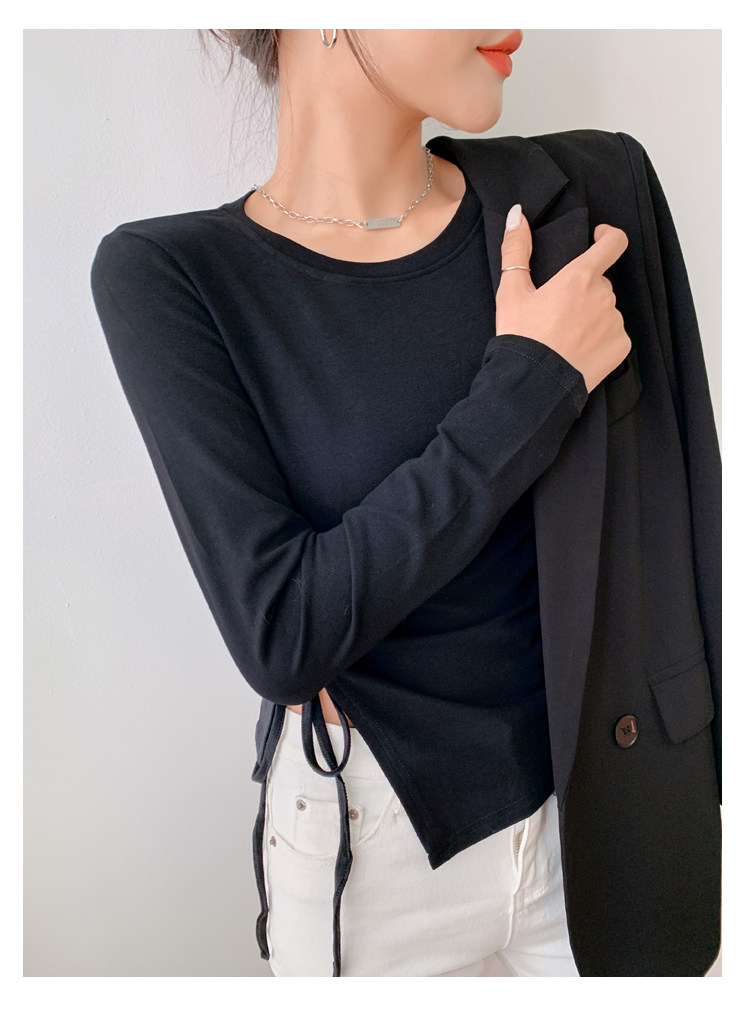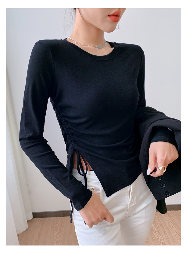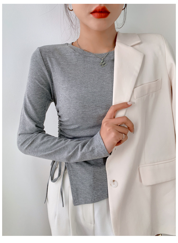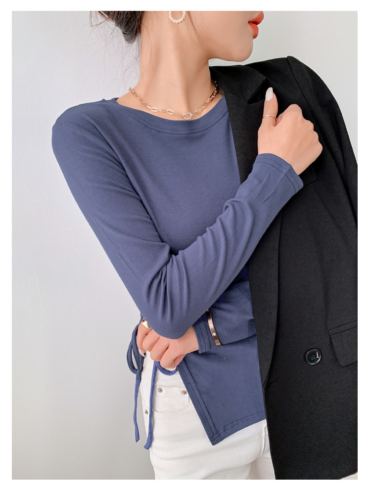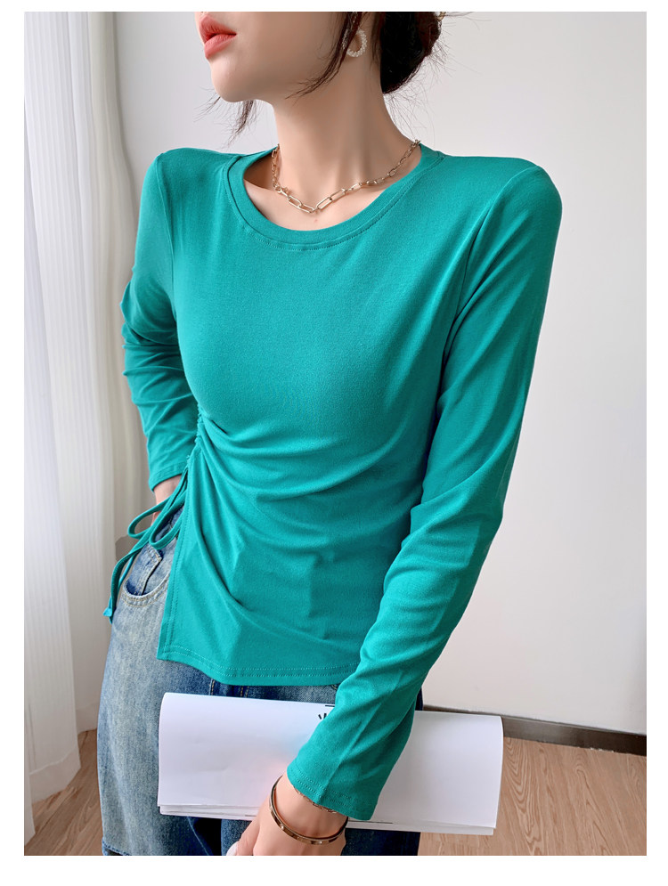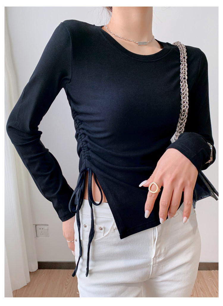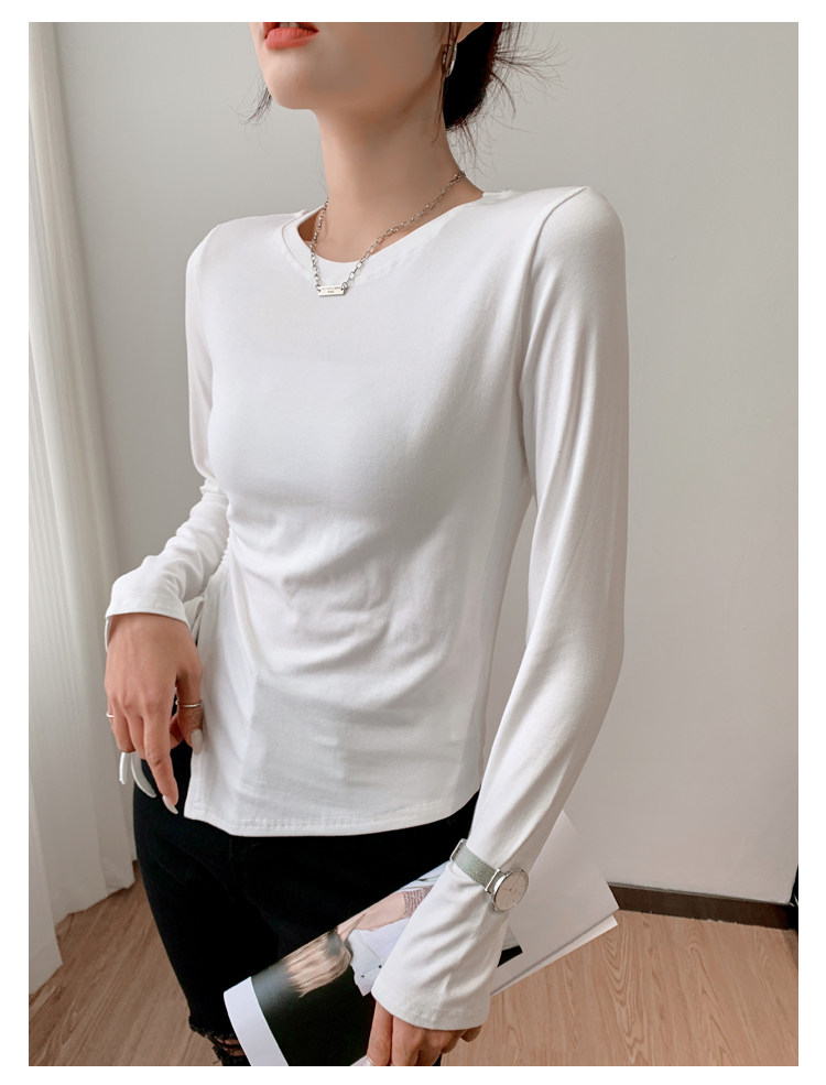 RM23648#圆领修身显瘦打底衫设计感小众长袖早秋新款T恤内搭上衣