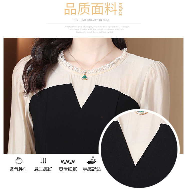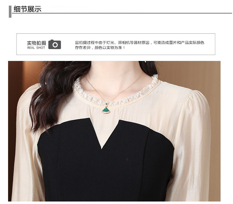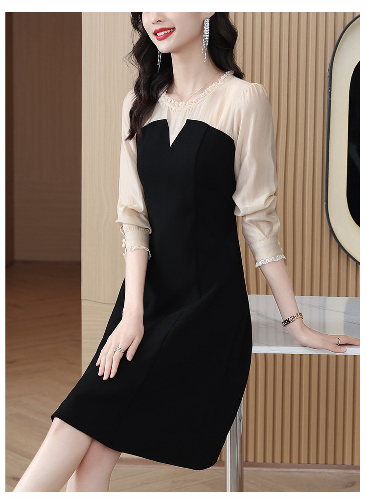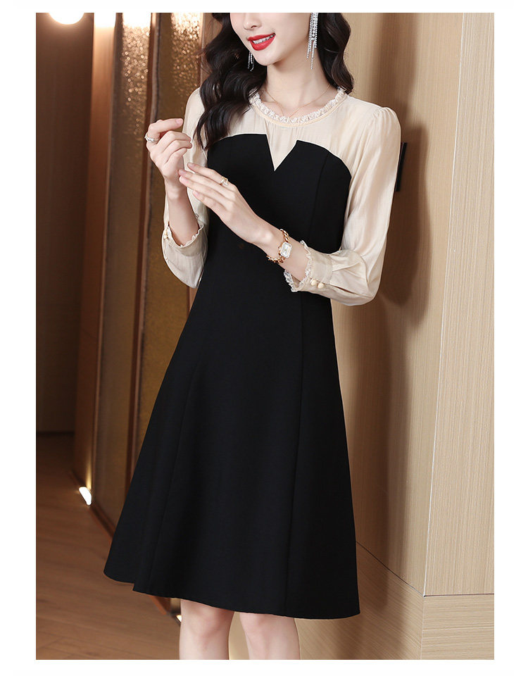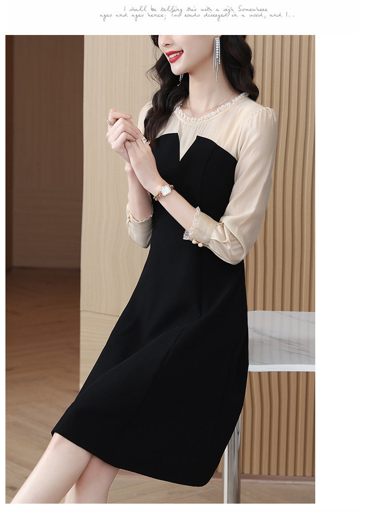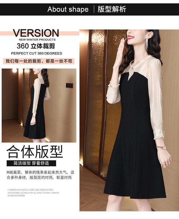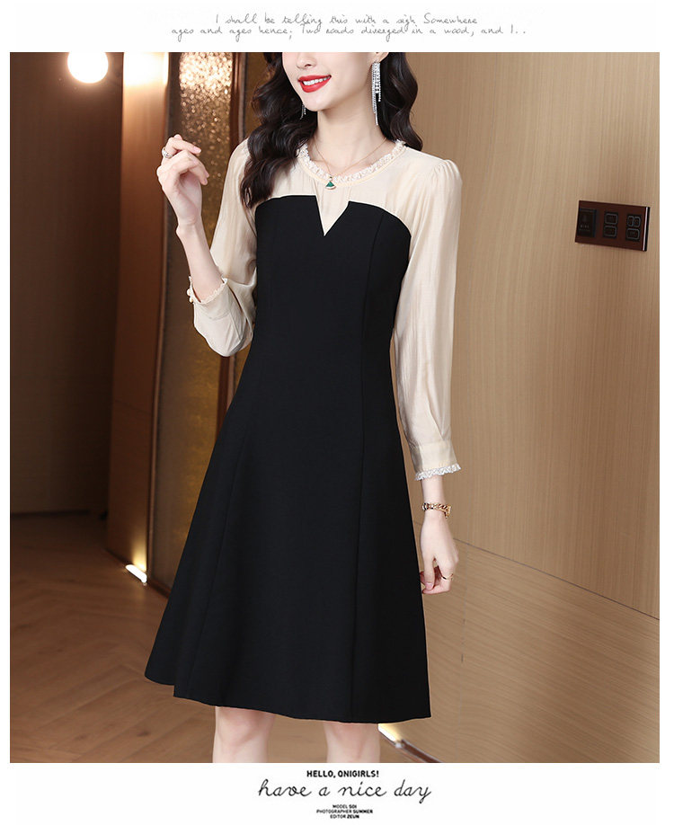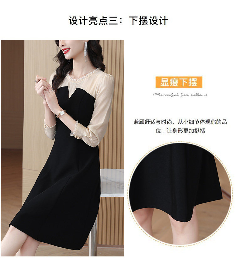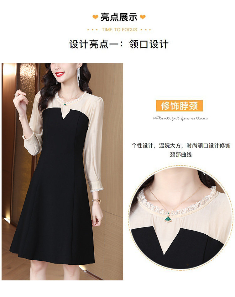 RM23730#大码长裙高腰通勤a字裙拼接时尚圆领修身显瘦连衣裙淑女风裙