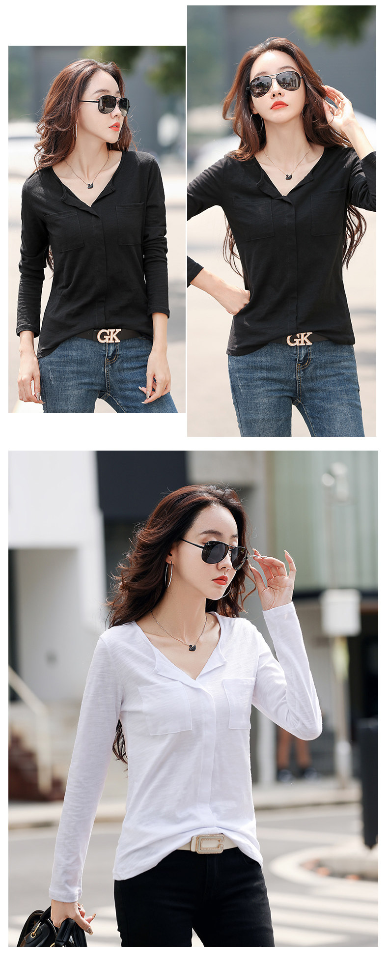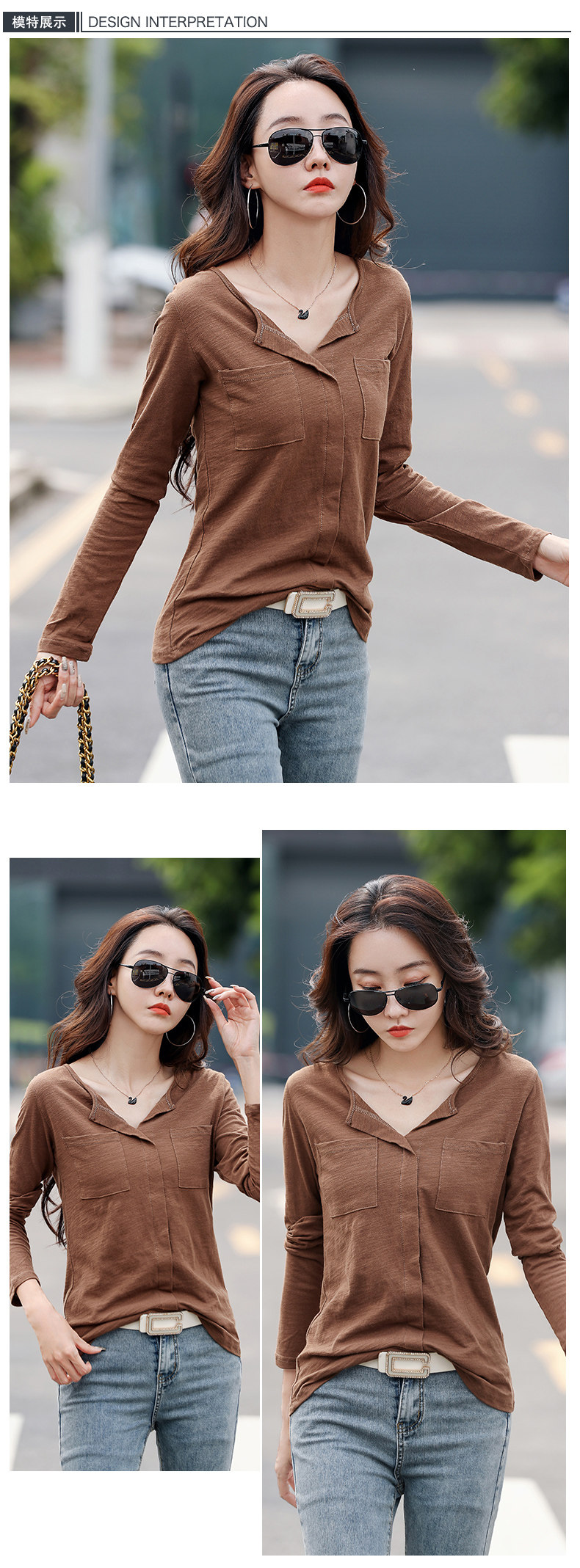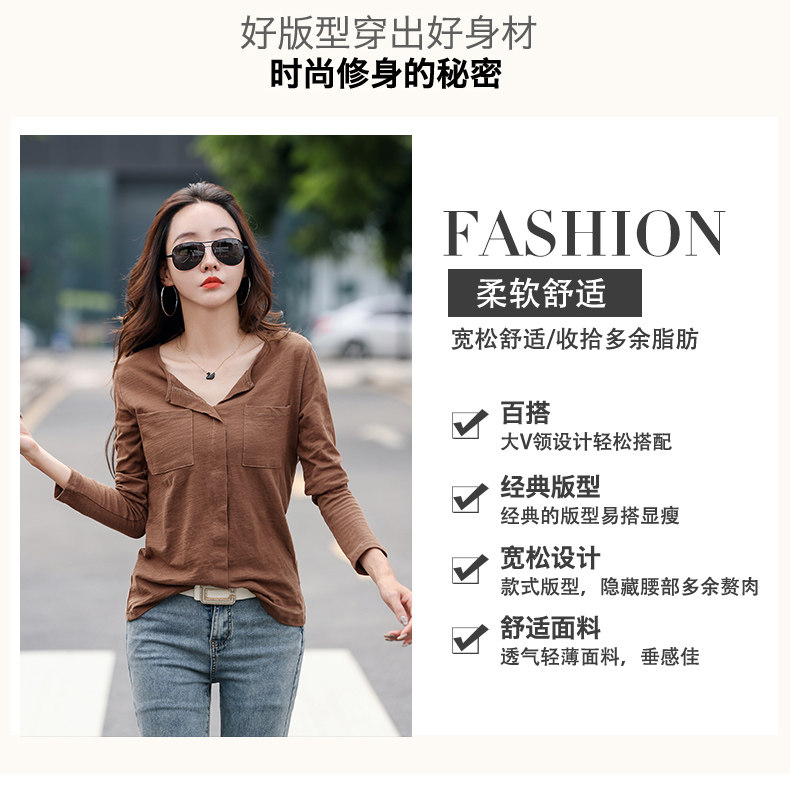 RM23822#纯棉长袖t恤女秋装2023新款宽松百搭v领春秋打底衫女装内搭上衣潮
