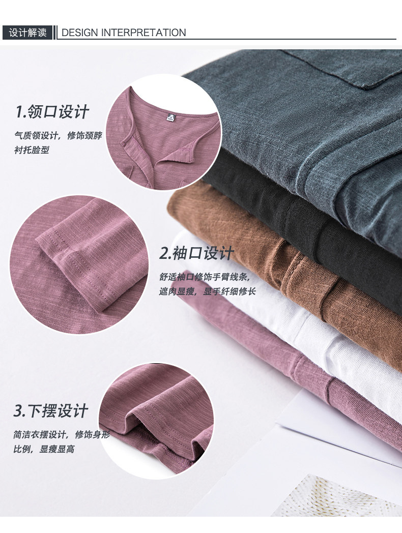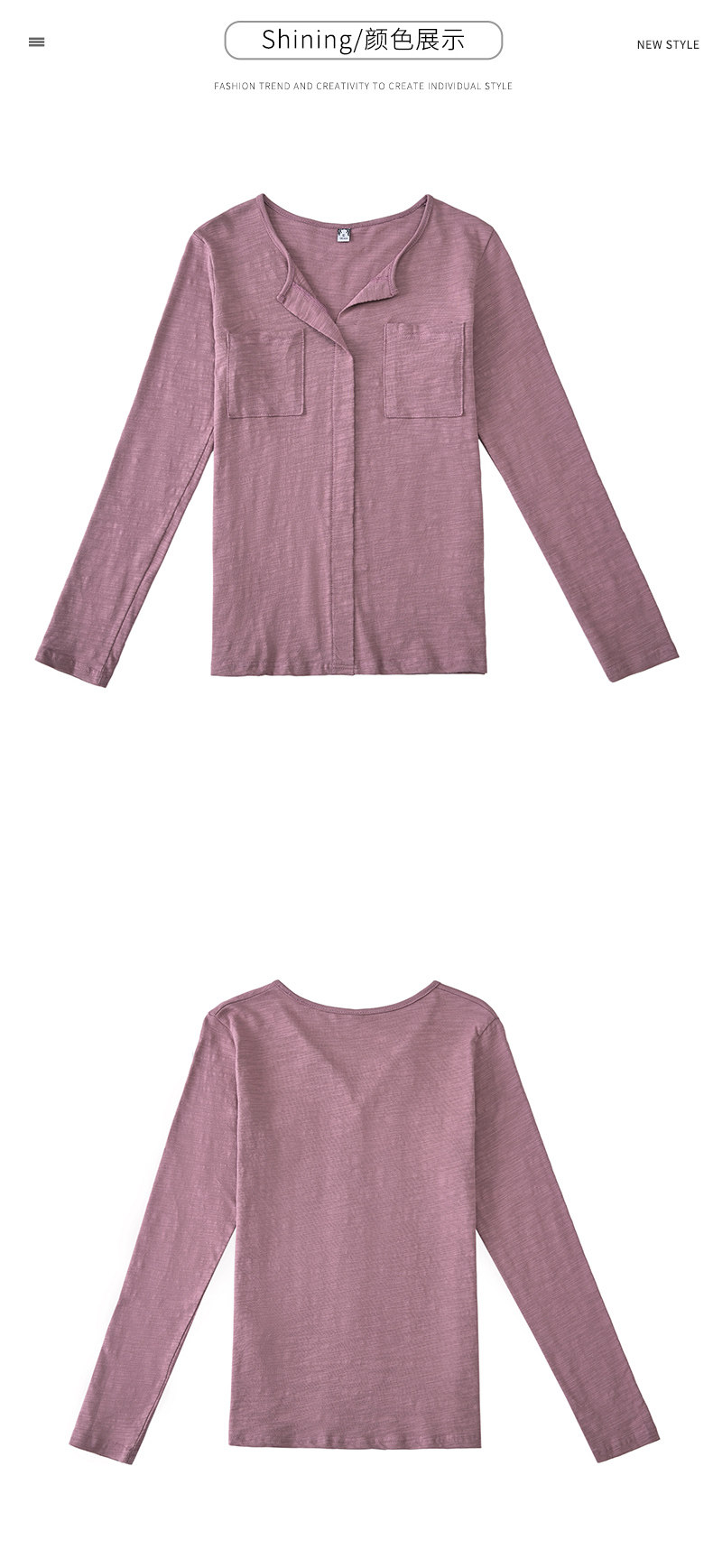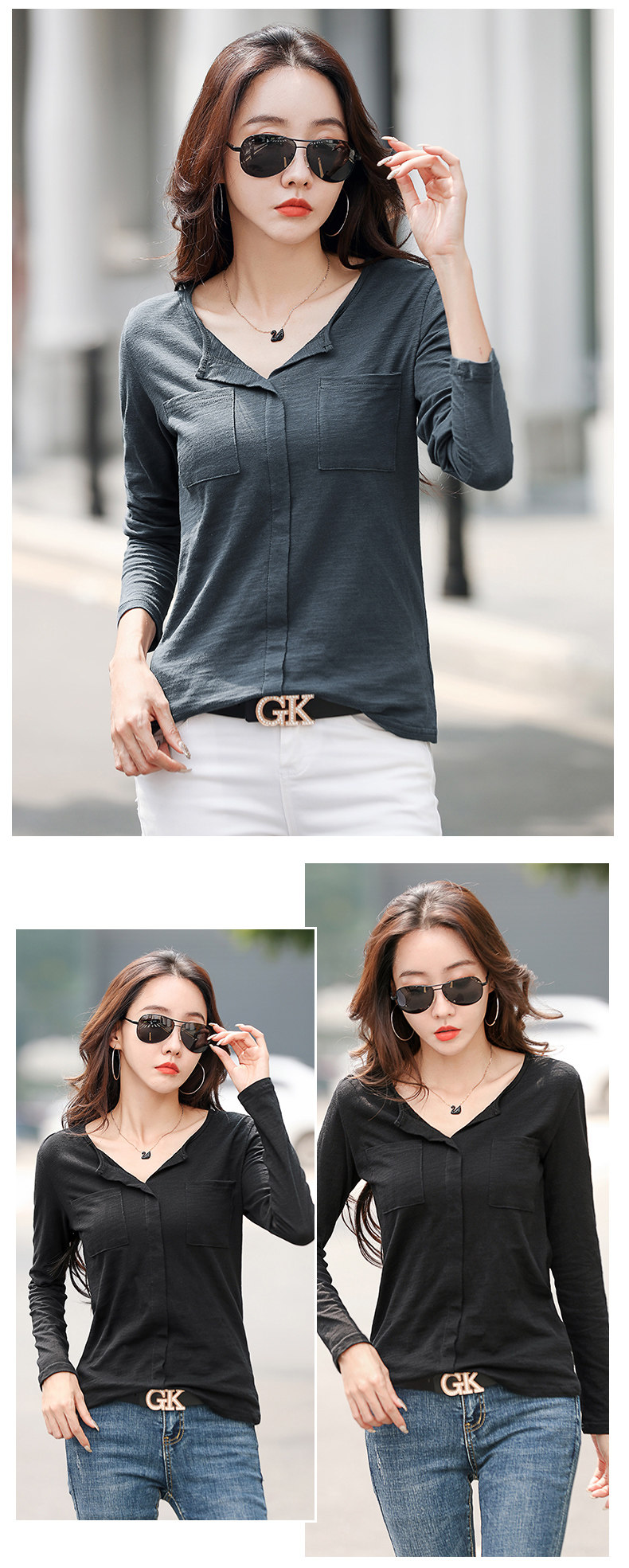 RM23822#纯棉长袖t恤女秋装2023新款宽松百搭v领春秋打底衫女装内搭上衣潮