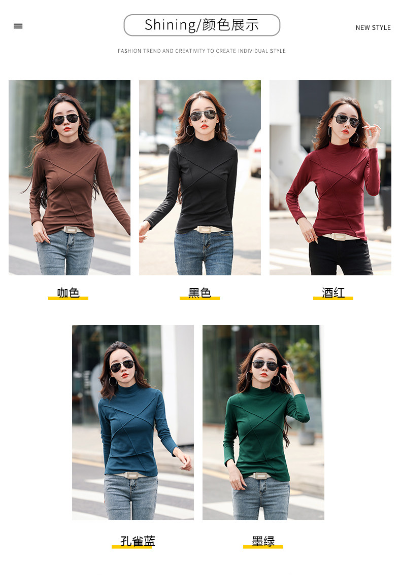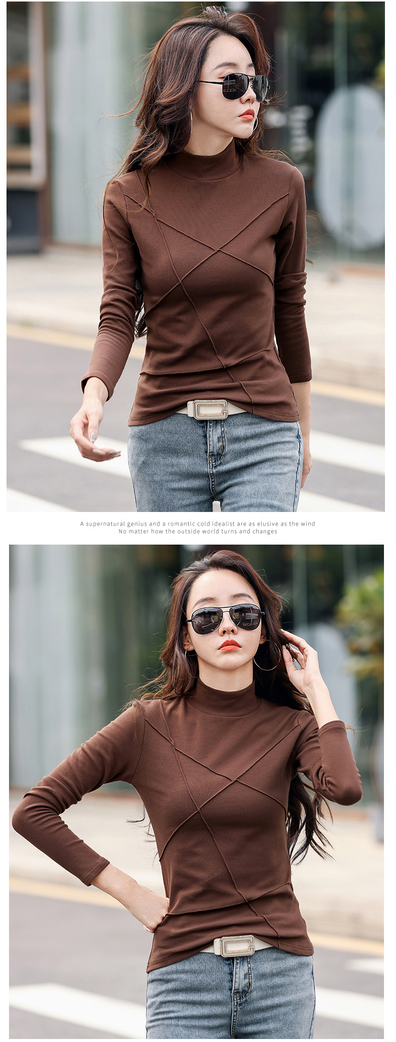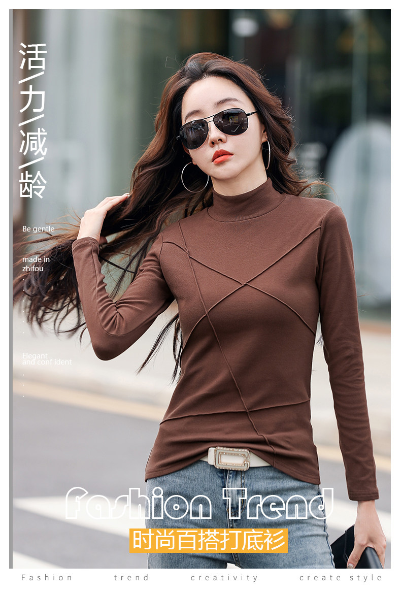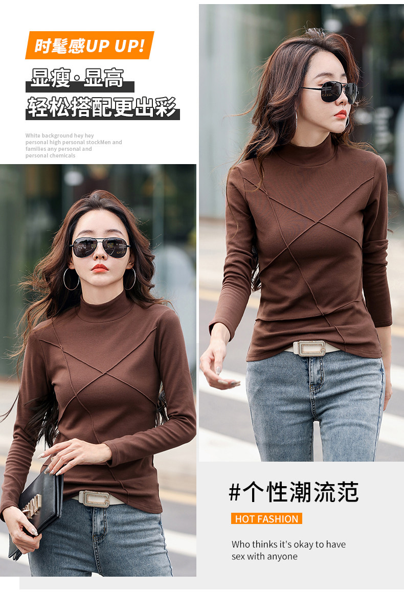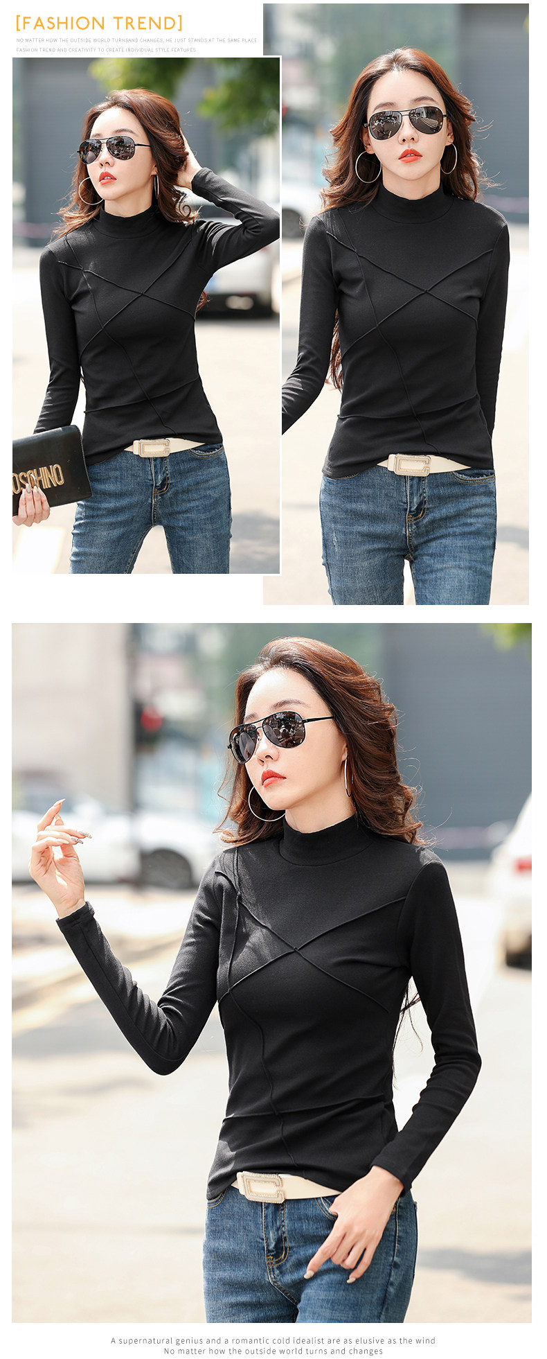 RM23826#纯棉黑色半高领加厚打底衫女秋冬内搭2023新款保暖长袖t恤女