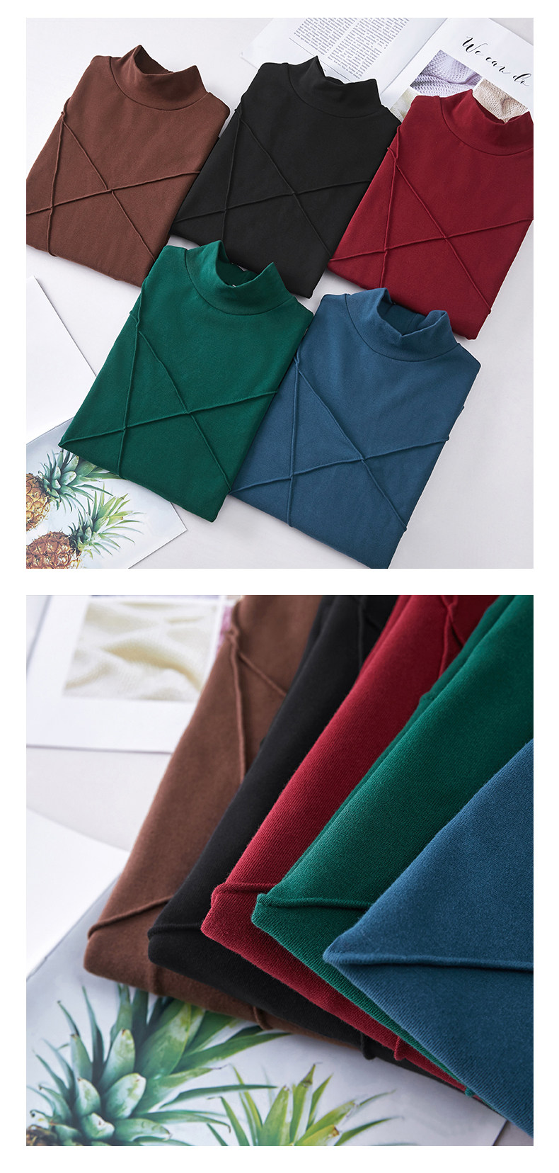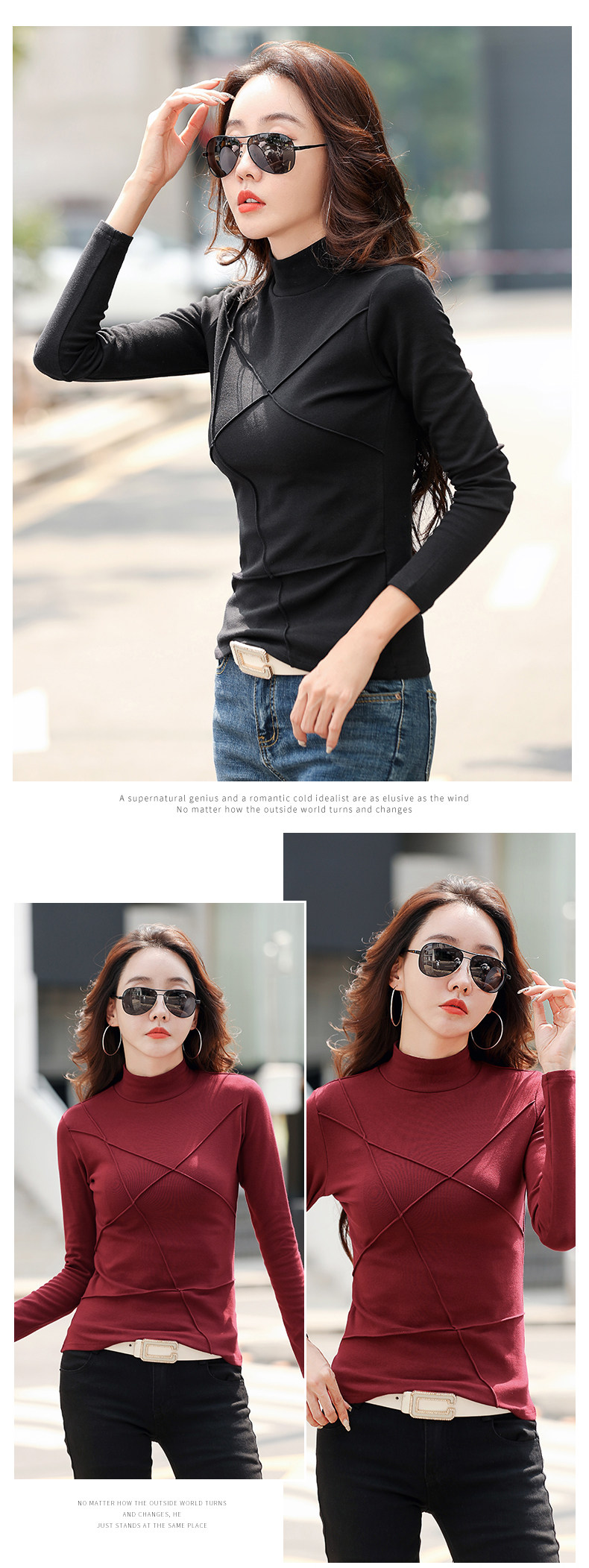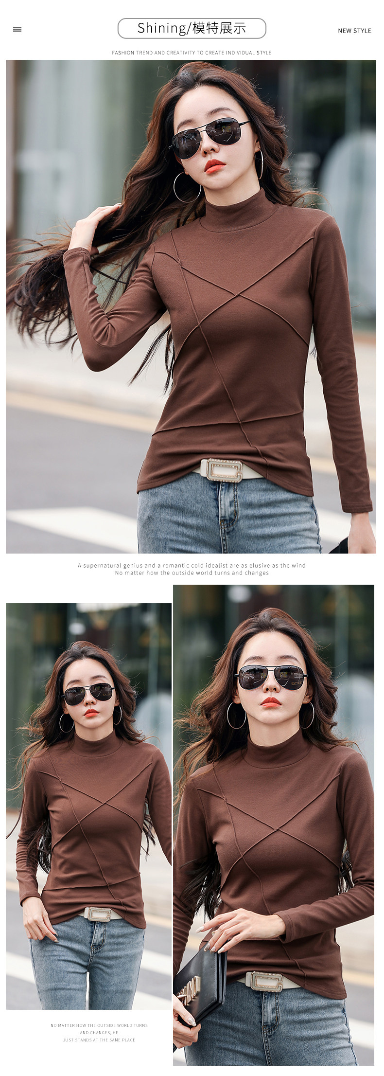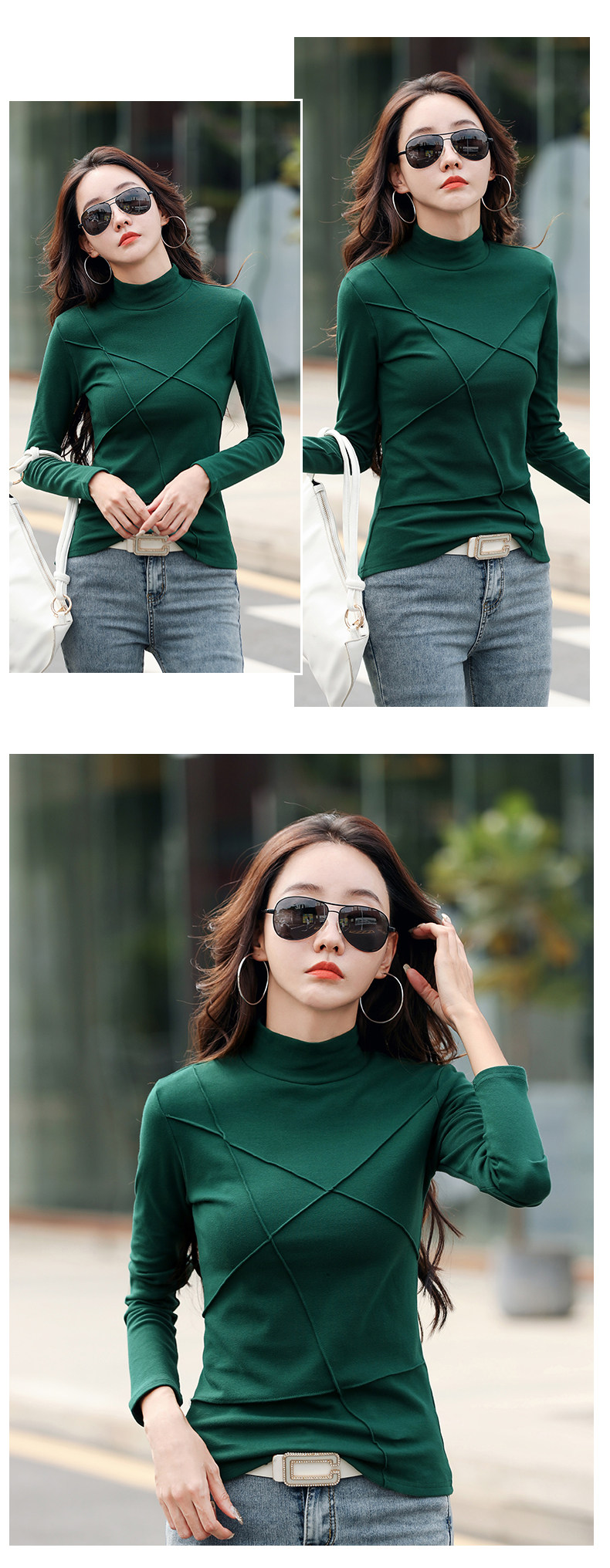 RM23826#纯棉黑色半高领加厚打底衫女秋冬内搭2023新款保暖长袖t恤女