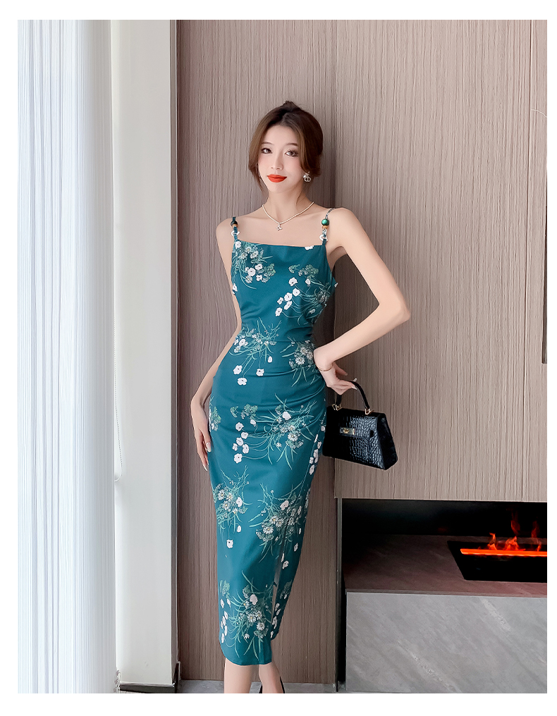 RM23892#高冷御姐风吊带连衣裙2023夏季新款印花法式高级感包臀长裙