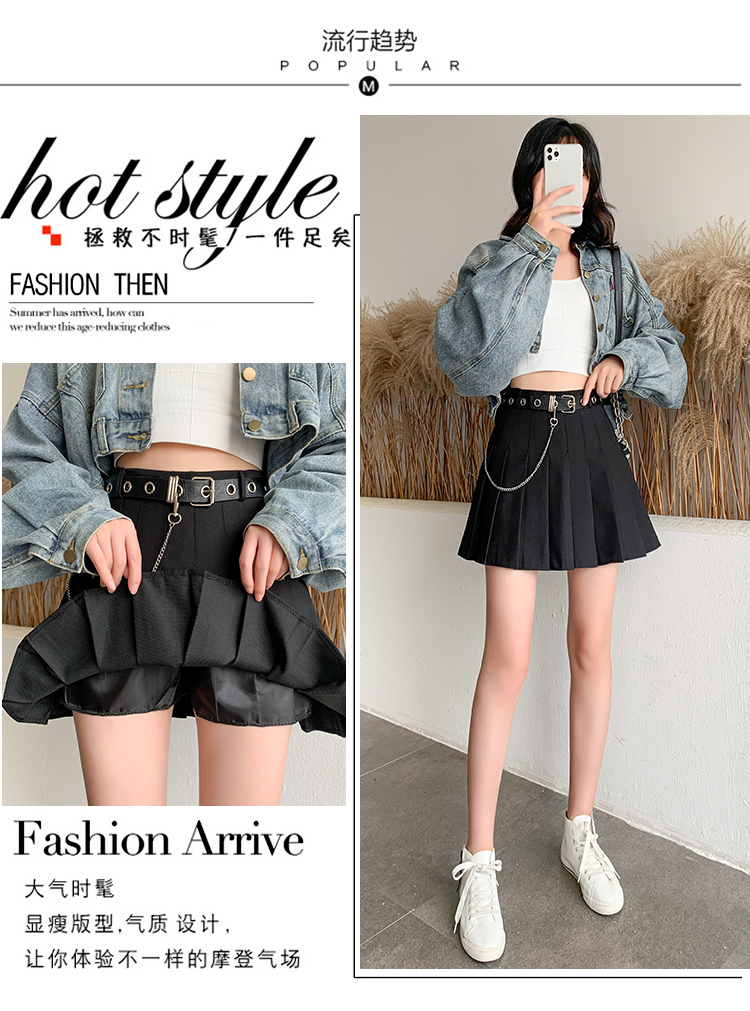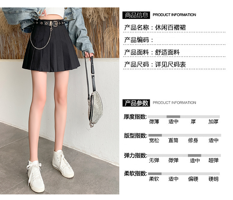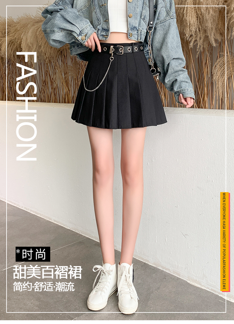 RY1821#韩版百褶裙a字裙半身裙秋冬女士短裙高腰修身黑色