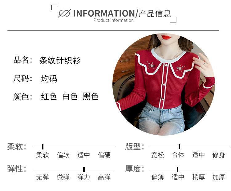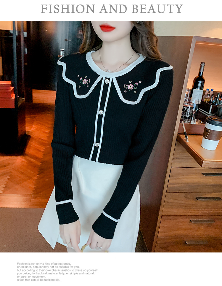 RM24259#新款小香风长袖针织毛衣女设计感电脑绣花娃娃领气质上衣