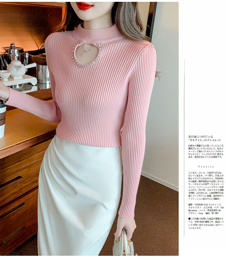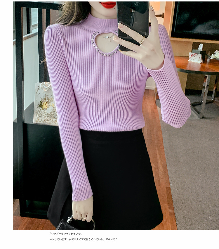 RM24261#镂空钉珠毛衣打底衫女2023年秋冬半高领长袖设计感洋气针织衫
