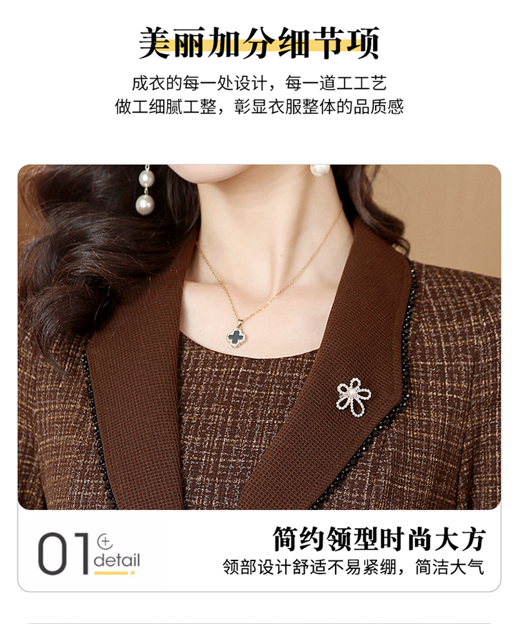 RM24433#高档假两件小香风西装连衣裙女长袖2023早秋新款洋气妈妈遮肚裙子