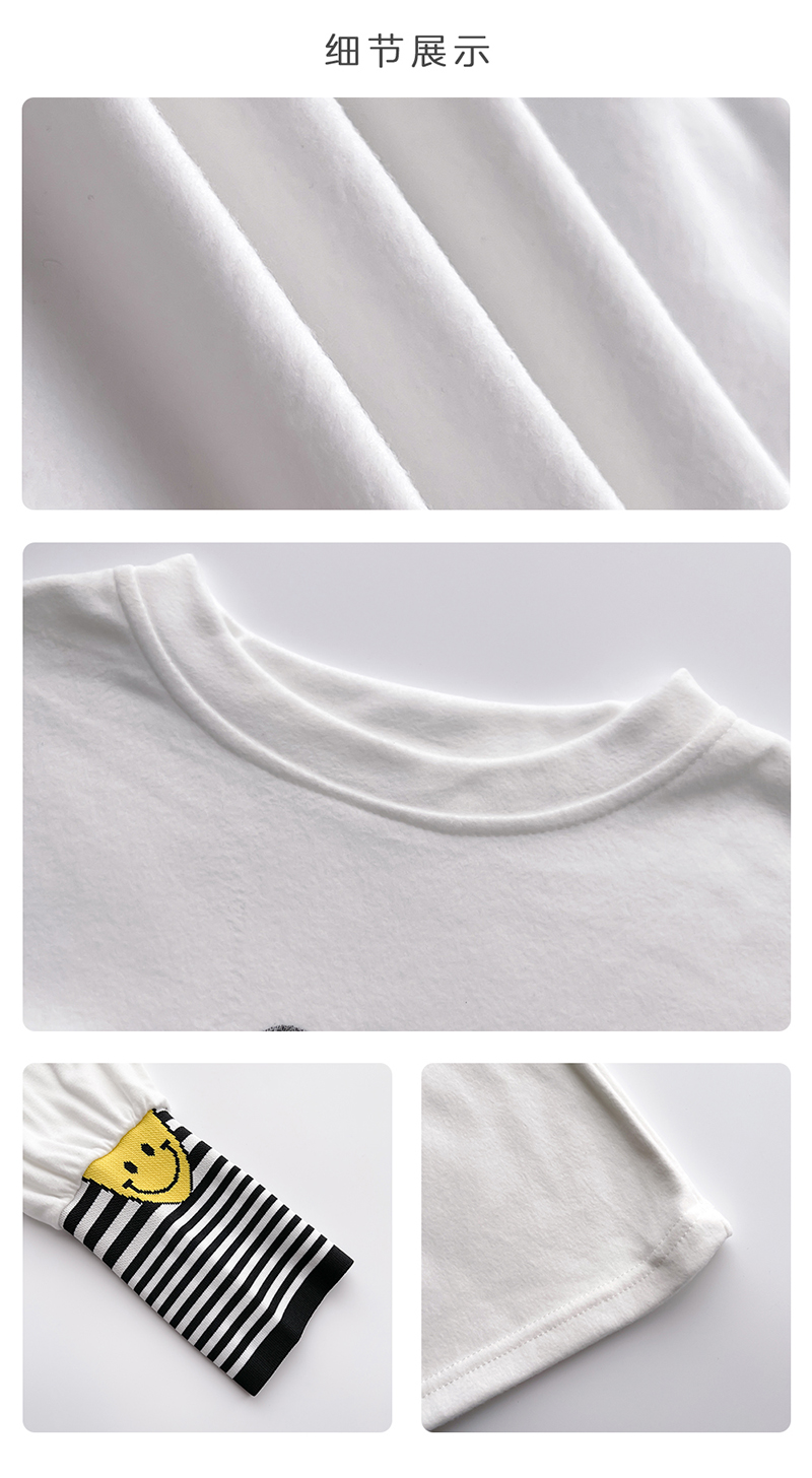 RM24710#德绒 春秋2023拼接长袖设计感小熊印花圆领上衣女