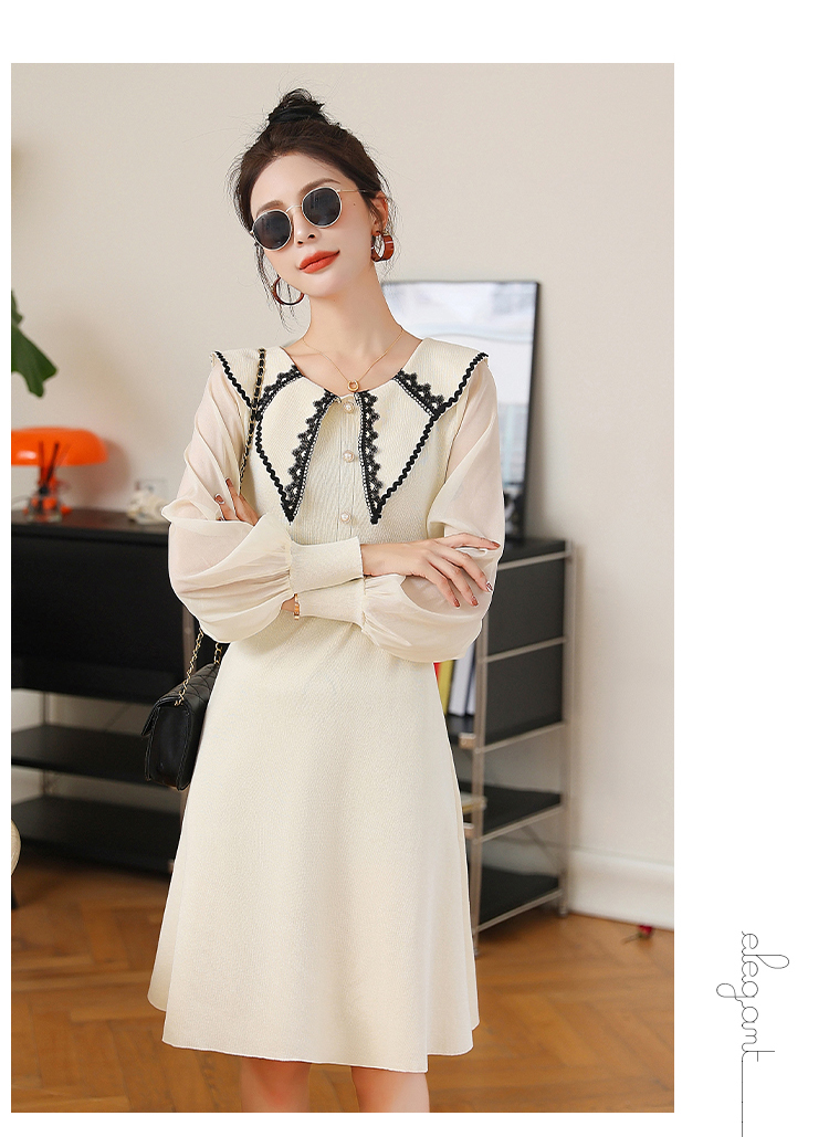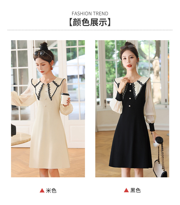 RM24729#新款洋气翻领撞色拼接雪纺长袖连衣裙女秋装收腰显瘦裙子
