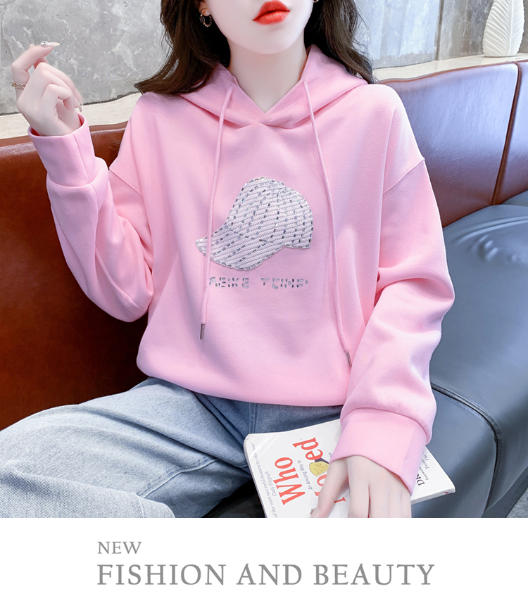 RM24755#新款韩版时尚宽松针织装饰卫衣气质潮流减龄连帽上衣