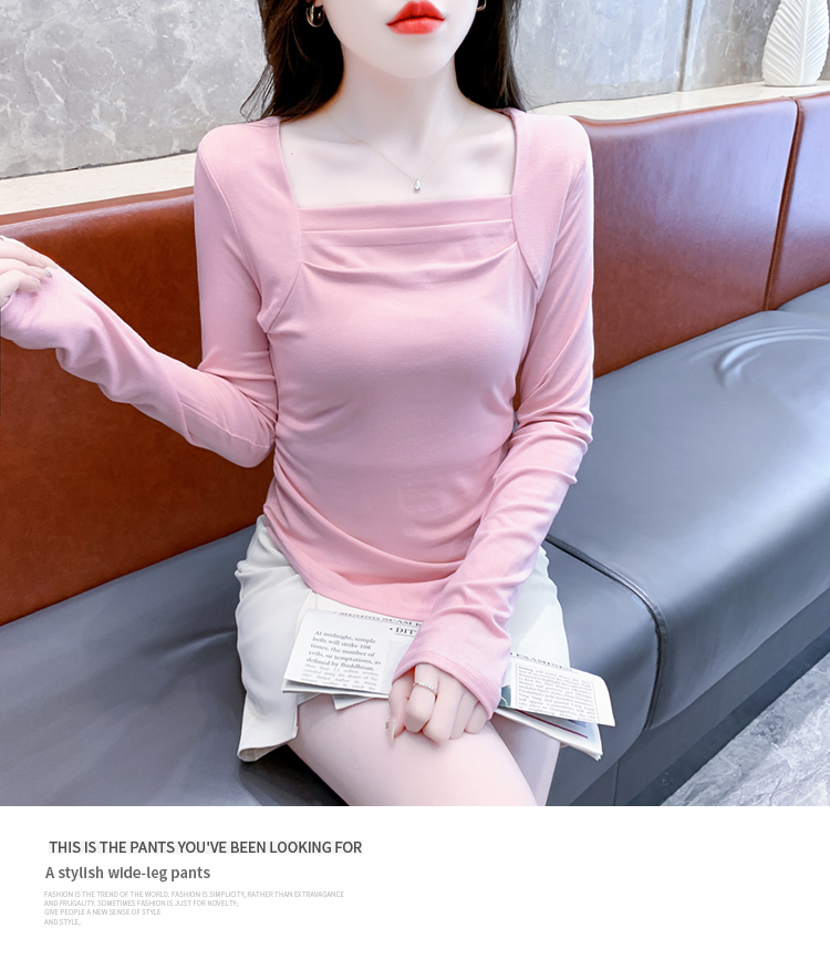 RM24761#纯色方领收褶修身卫衣女秋季2023年新款时尚气质简约百搭上衣
