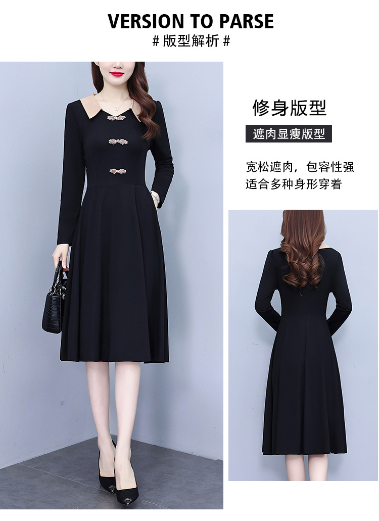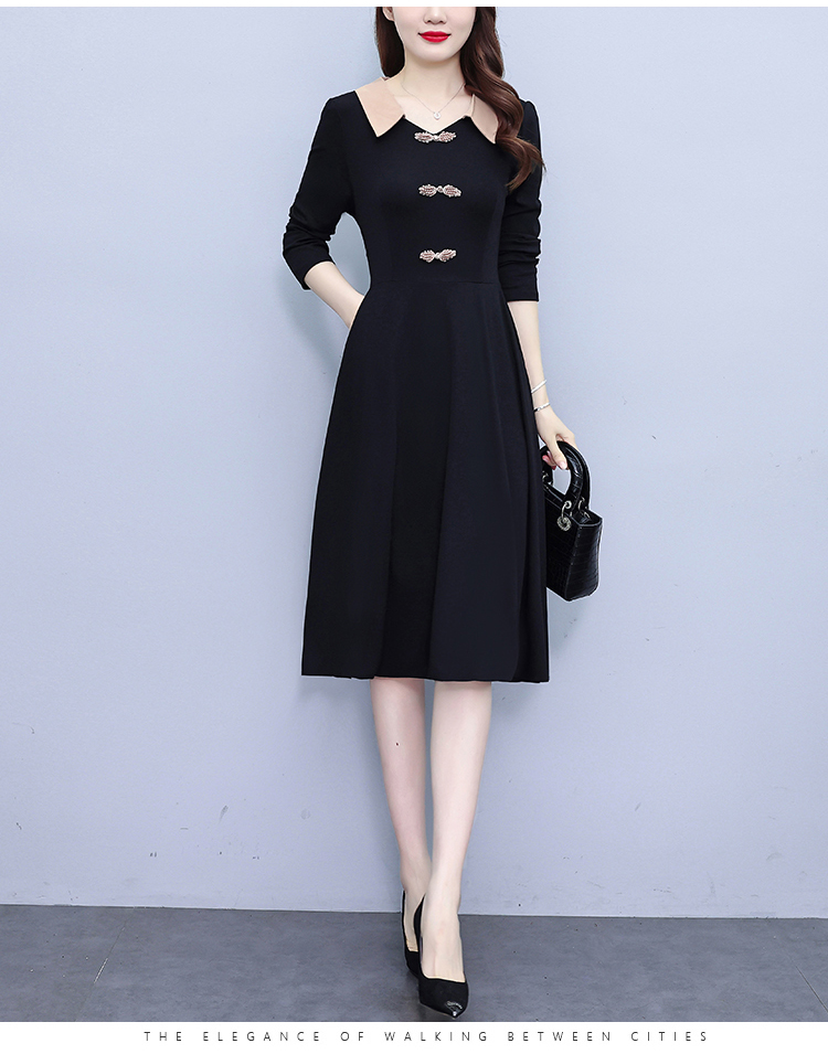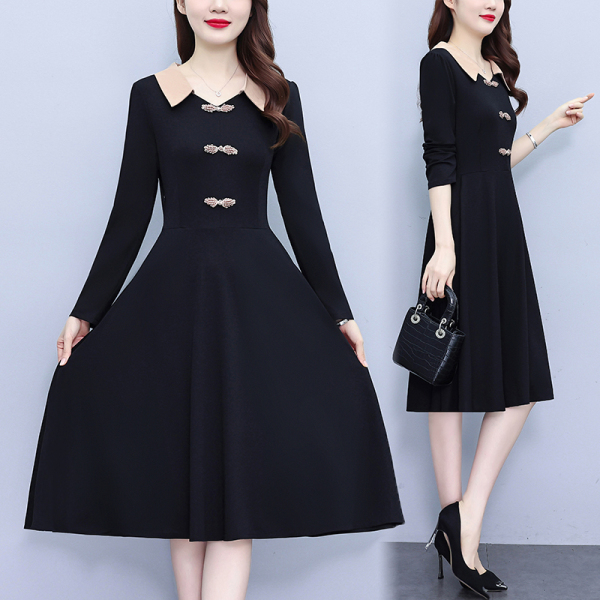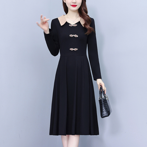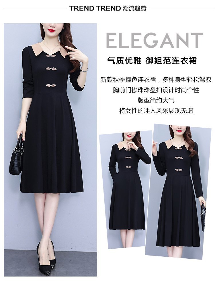 RM24770#新款修身显瘦气质减龄时尚盘扣复古装连衣裙A字裙洋气娃娃领