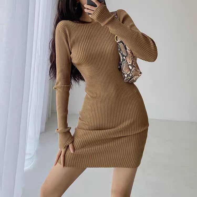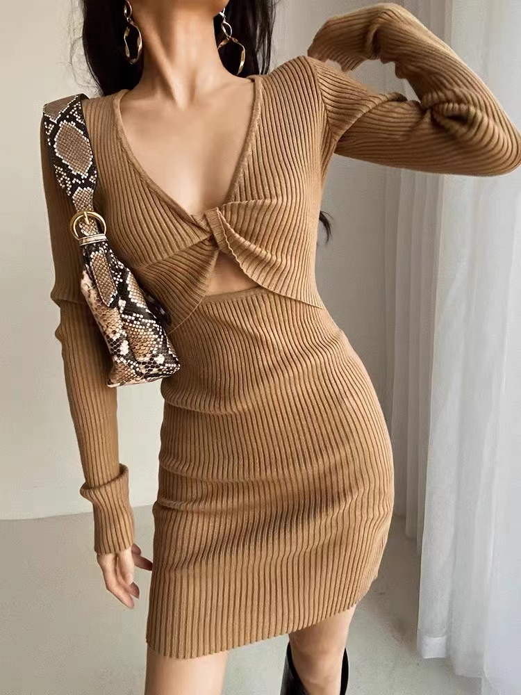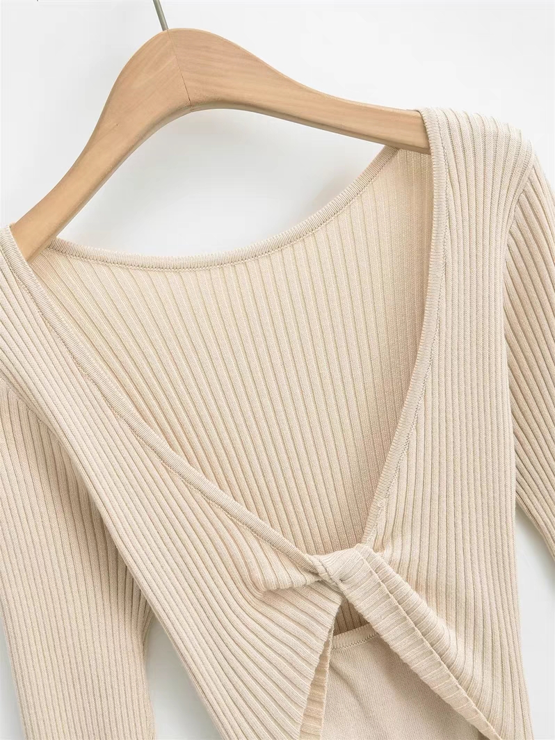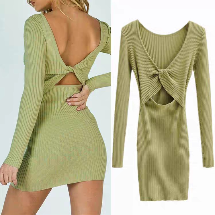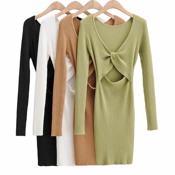 RM24845#欧美ins小众迷你露背镂空超辣针织正反两穿立裁设计感长袖连衣裙