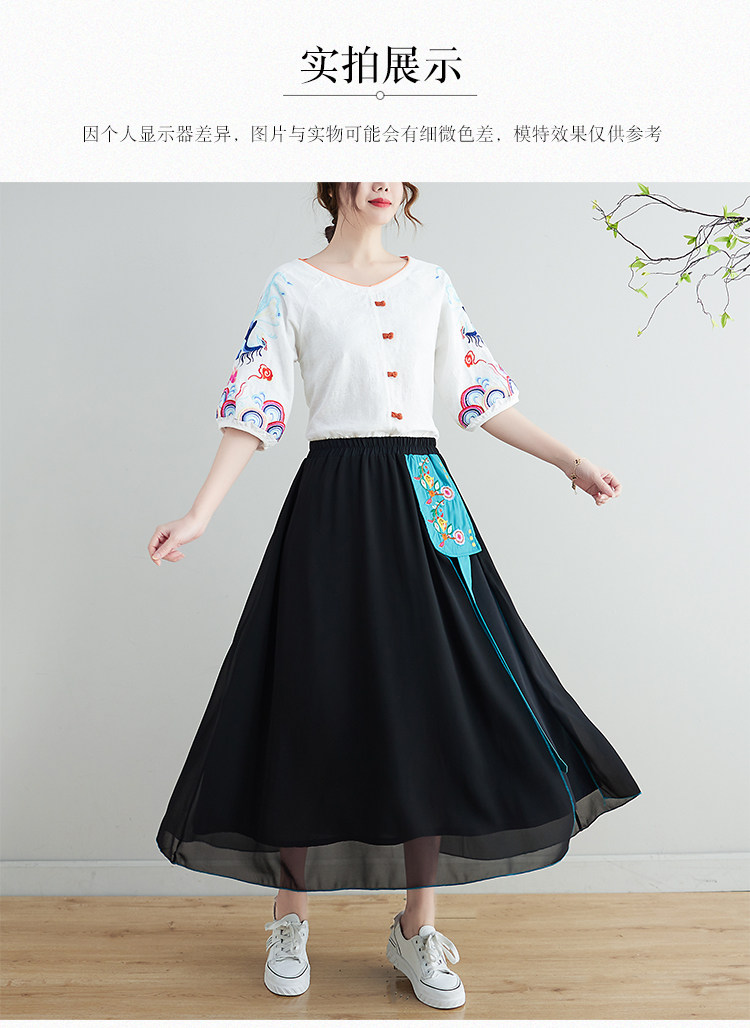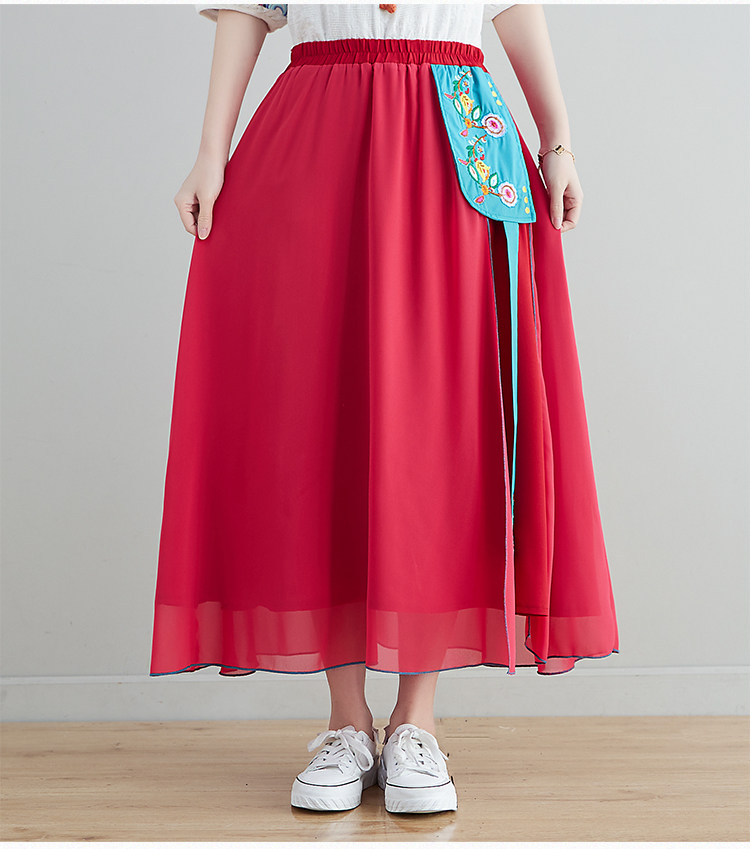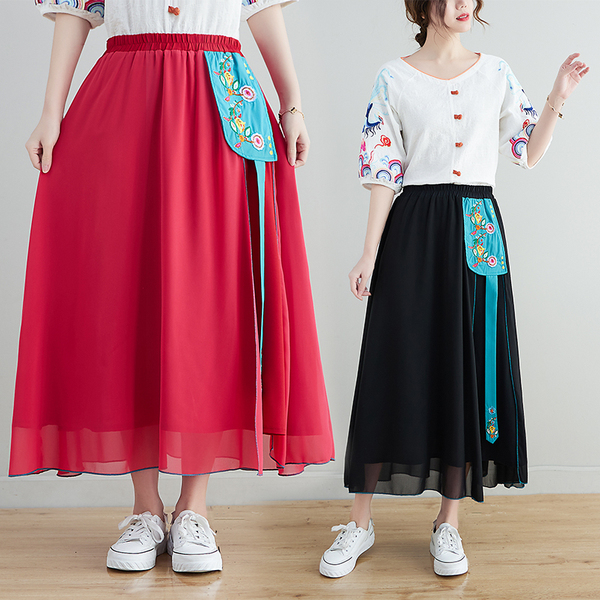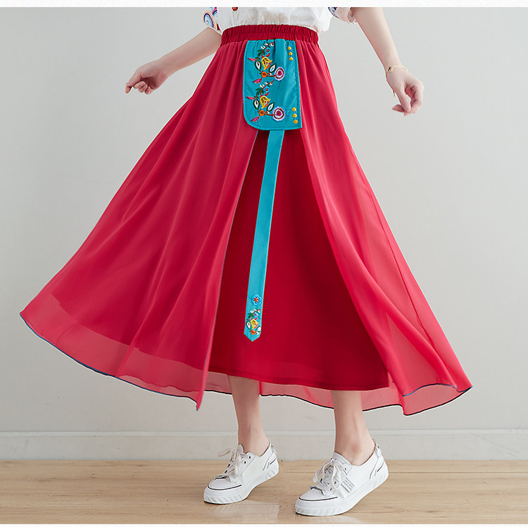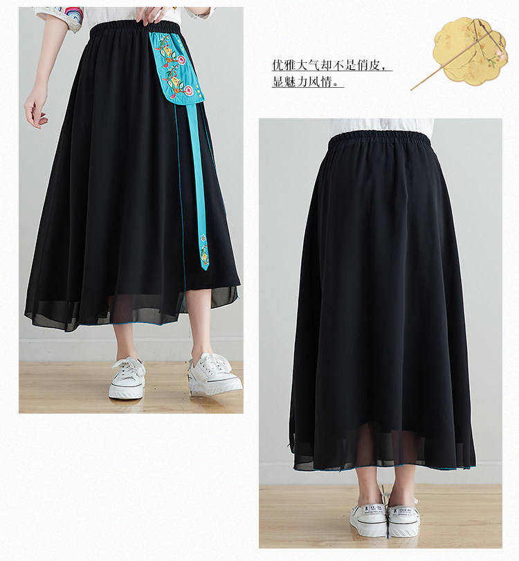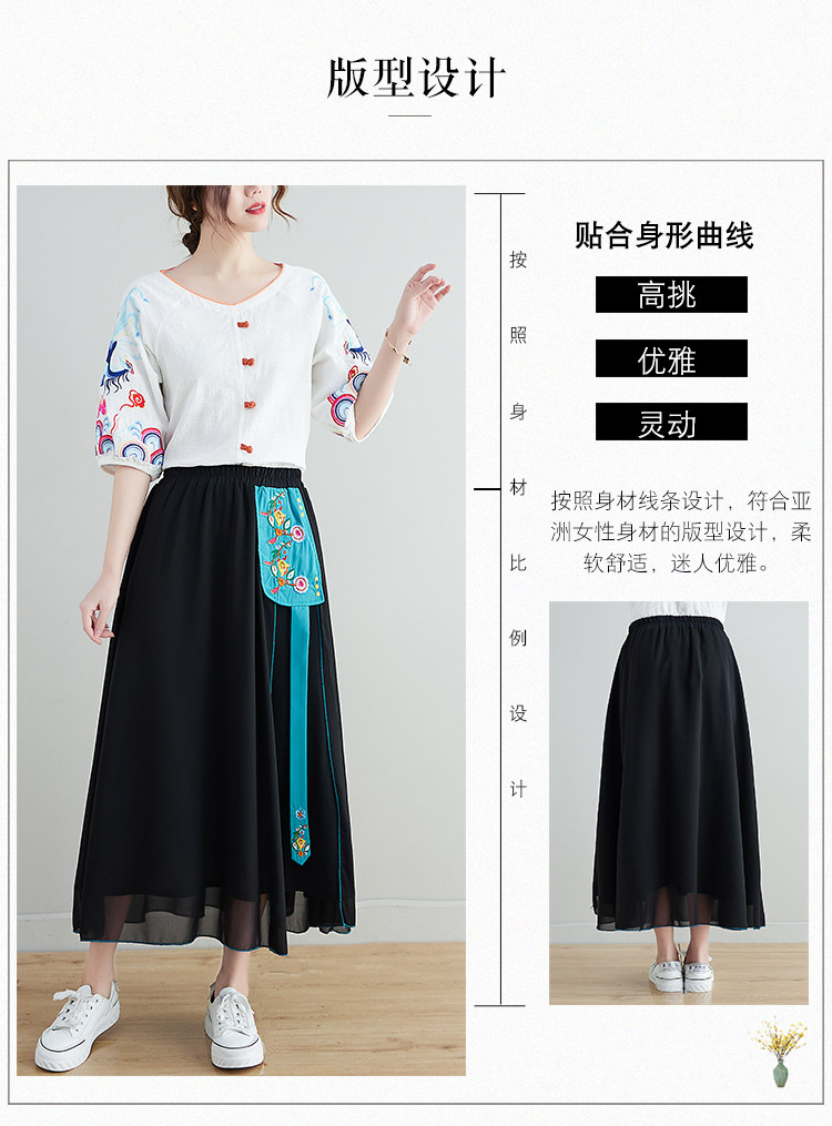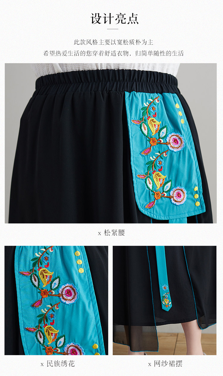 RM24859#春夏民族风女装半身裙文艺复古中国风雪纺绣花大摆中长裙女