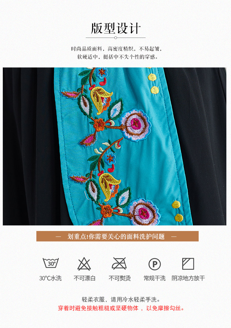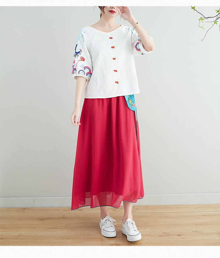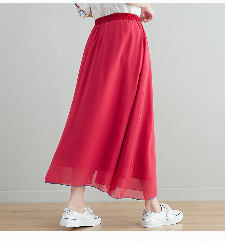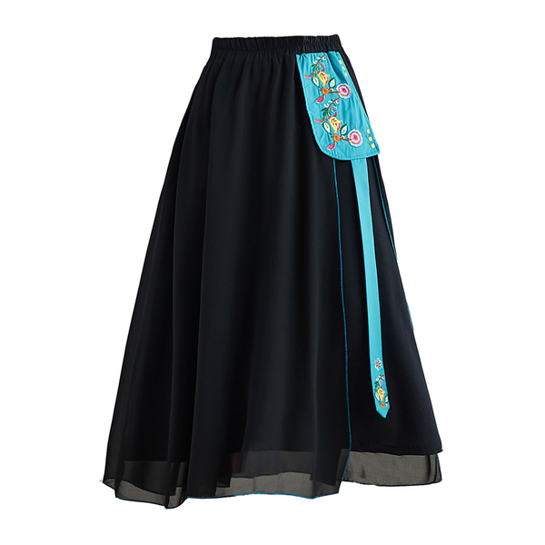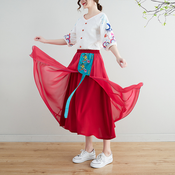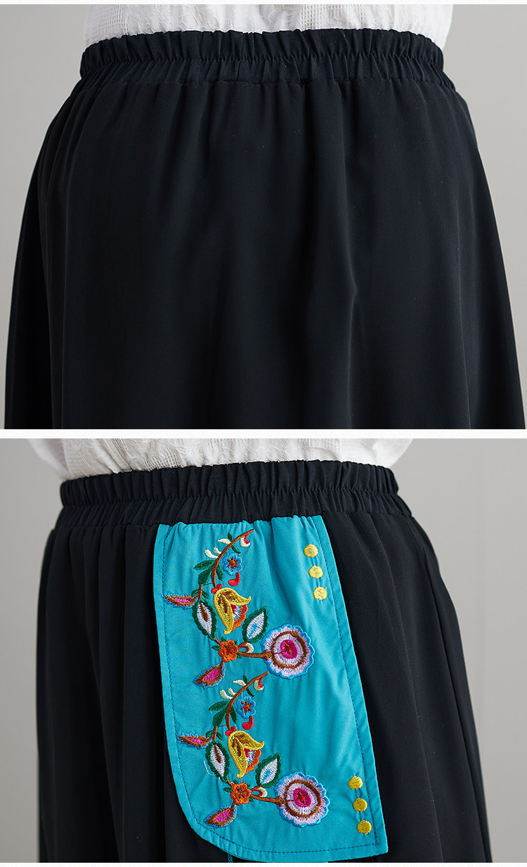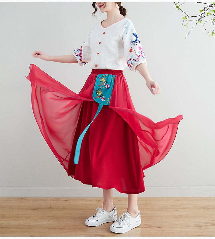 RM24859#春夏民族风女装半身裙文艺复古中国风雪纺绣花大摆中长裙女