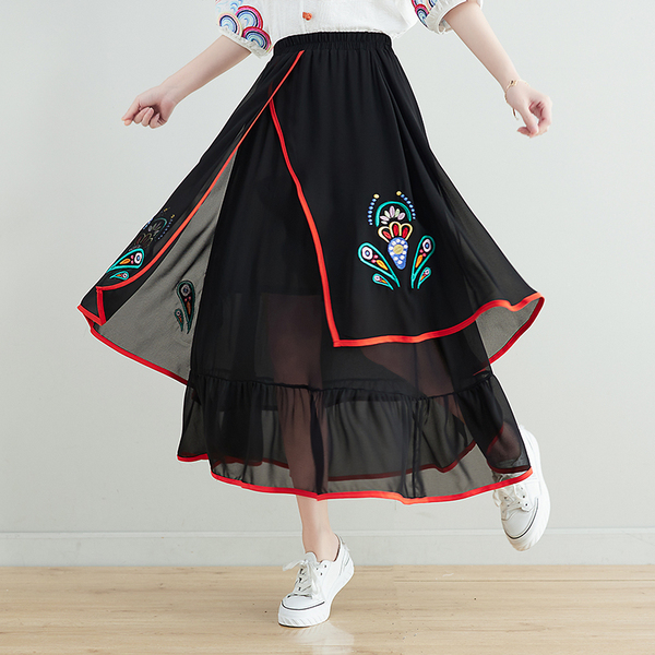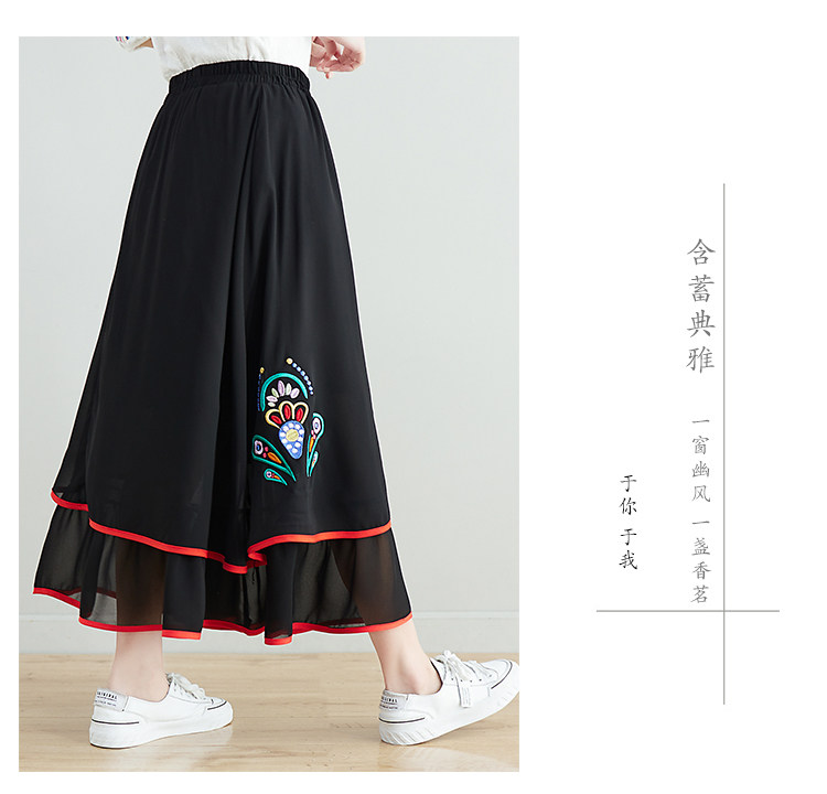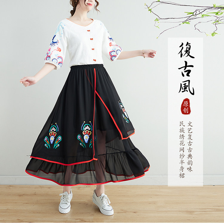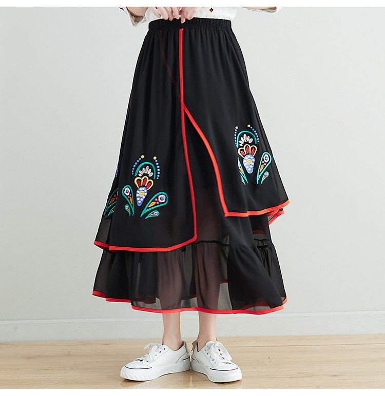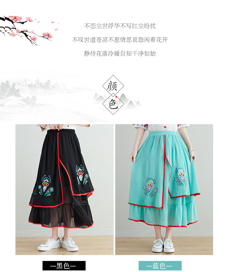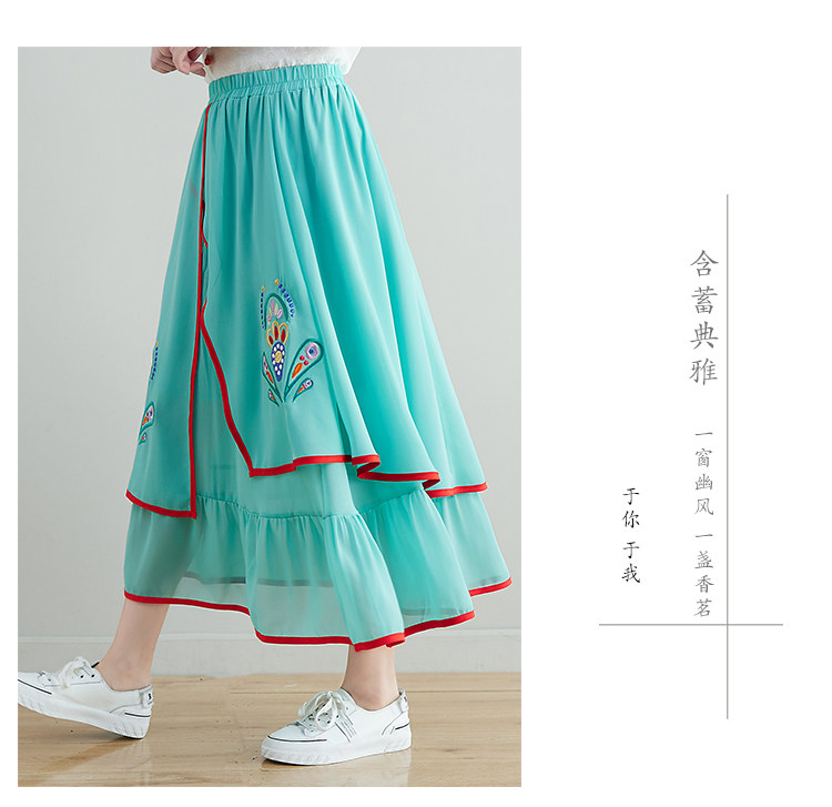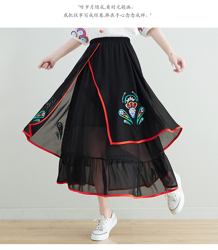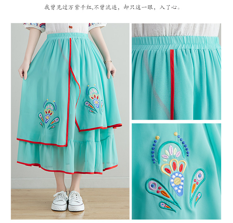 RM24860#春夏新款绣花雪纺半身裙民族风中长裙复古文艺大摆裙女裙子