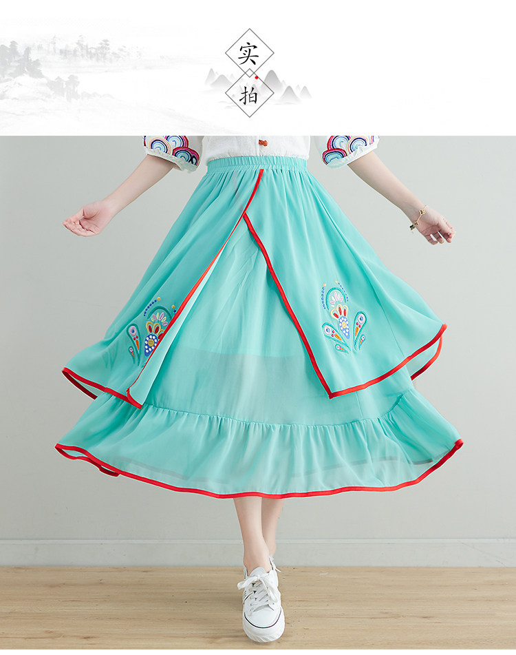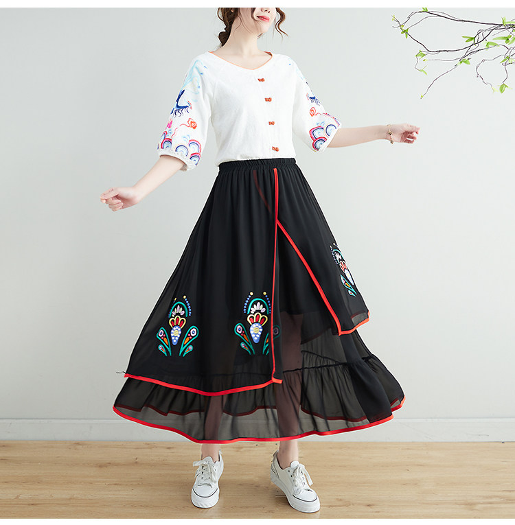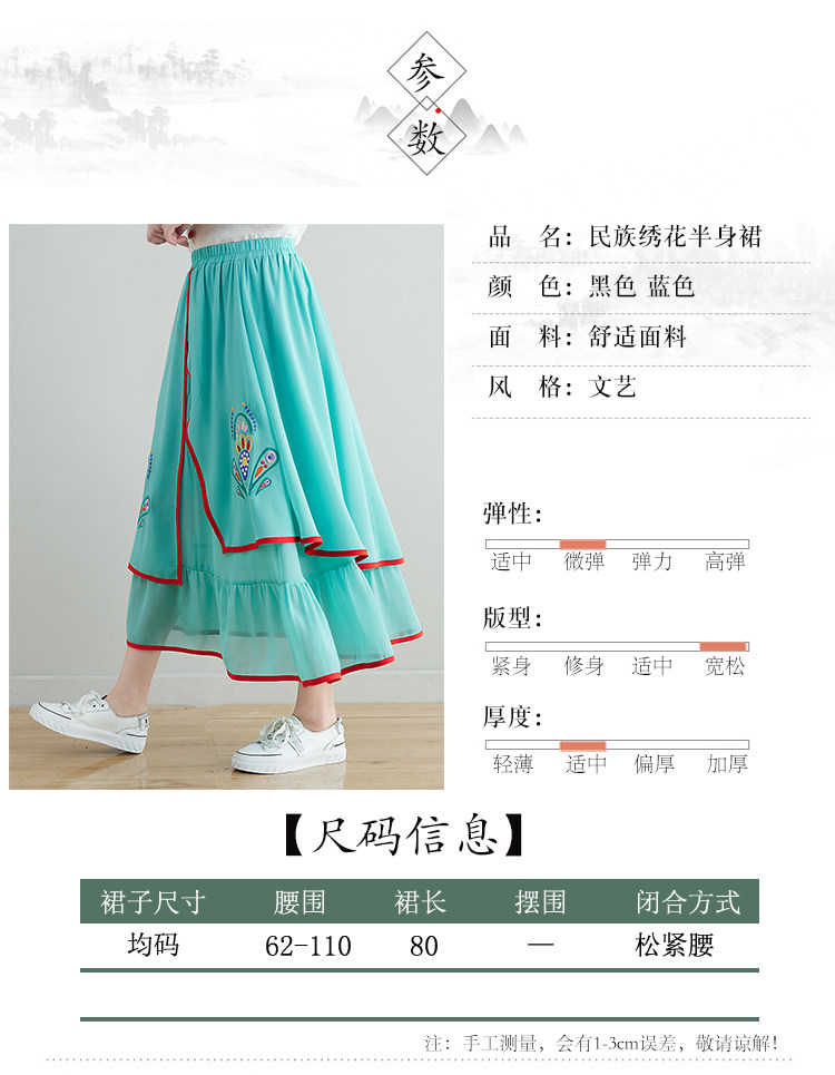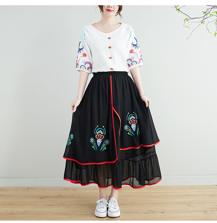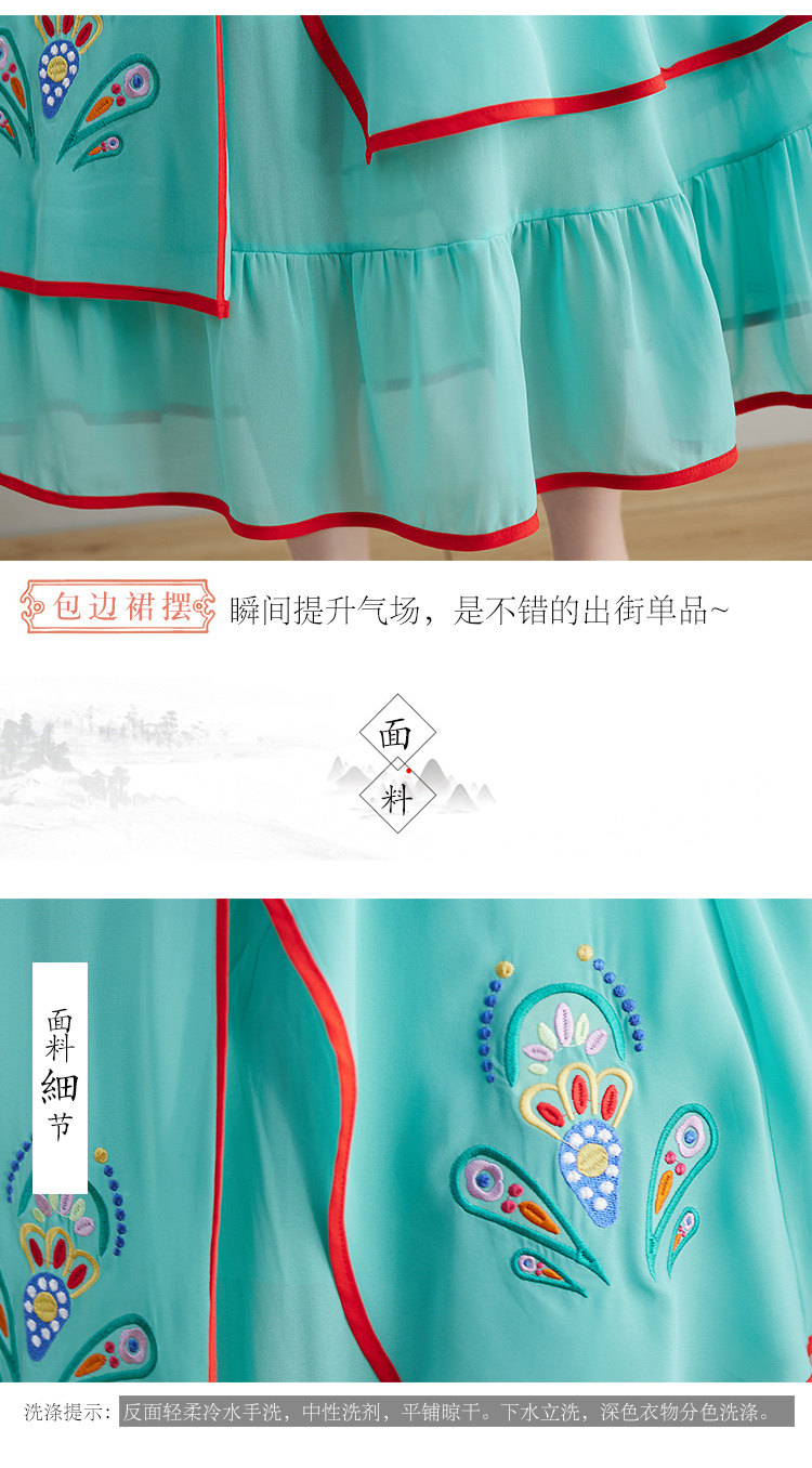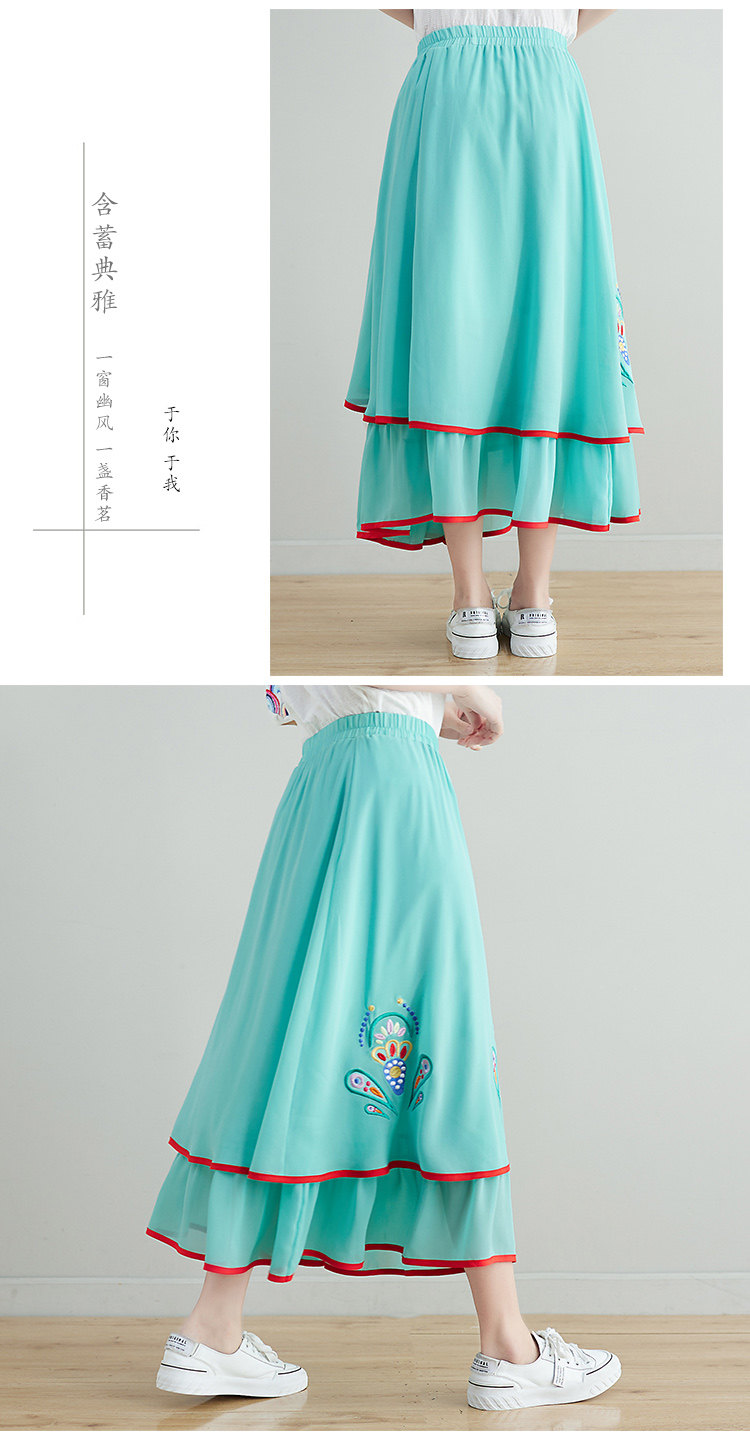 RM24860#春夏新款绣花雪纺半身裙民族风中长裙复古文艺大摆裙女裙子