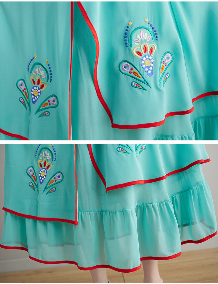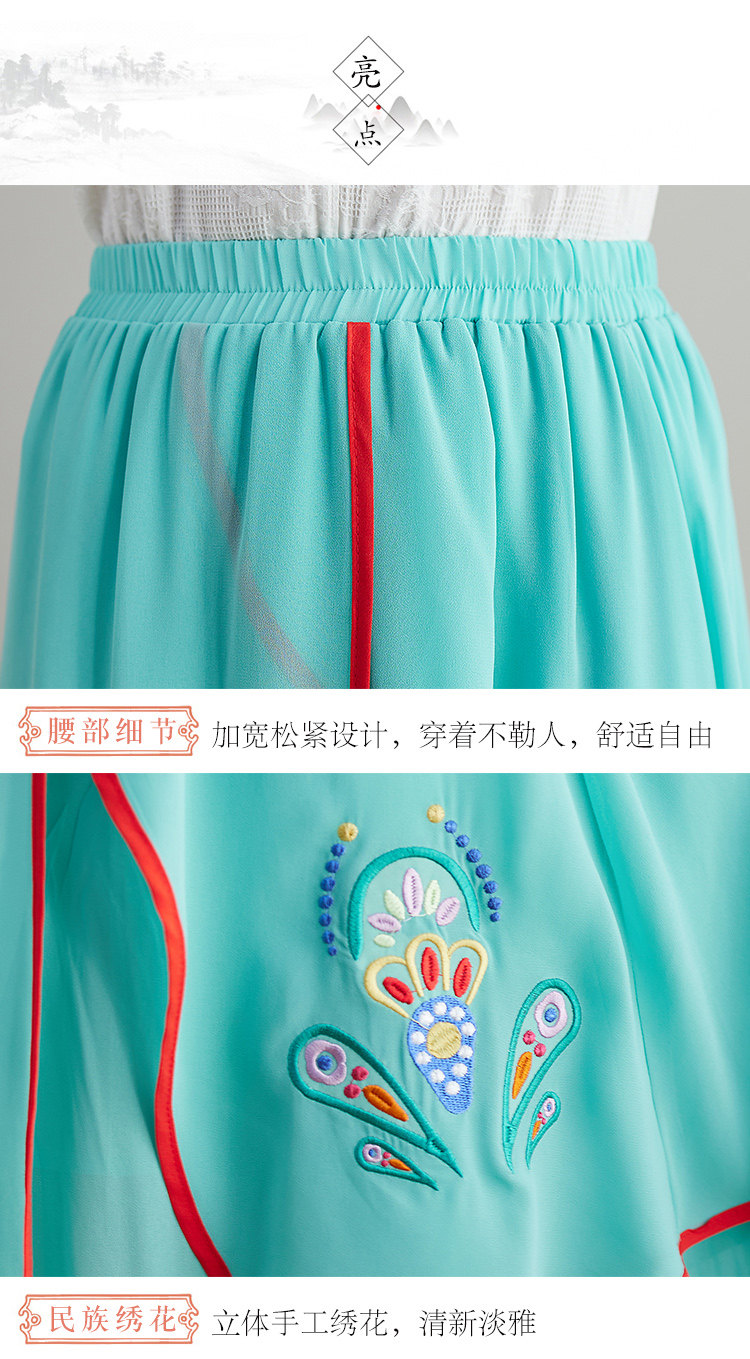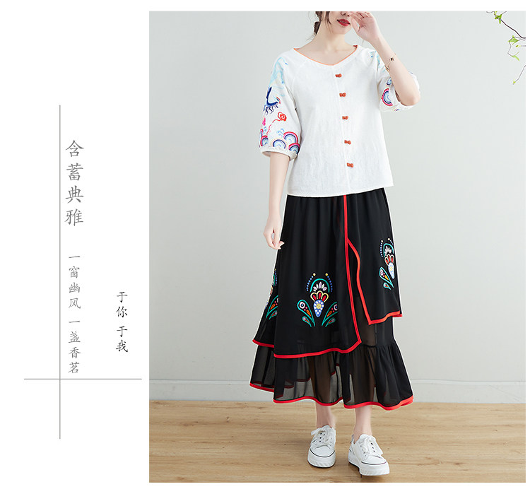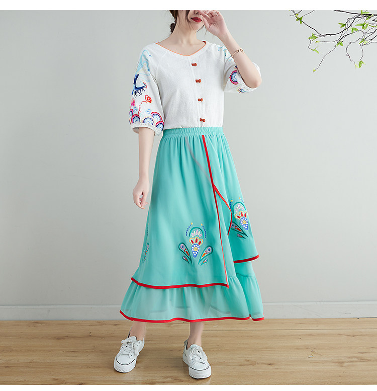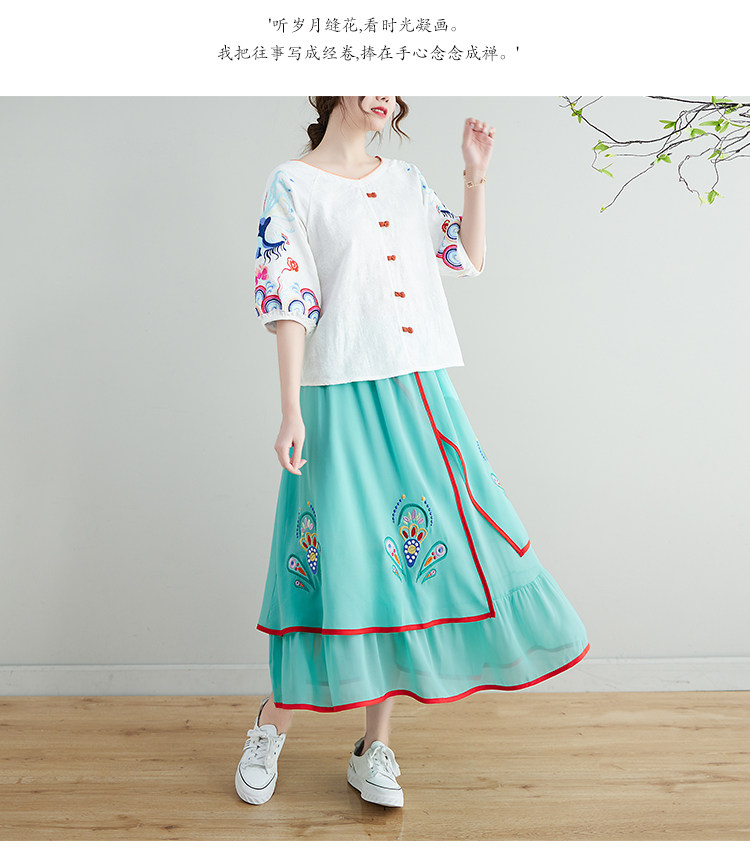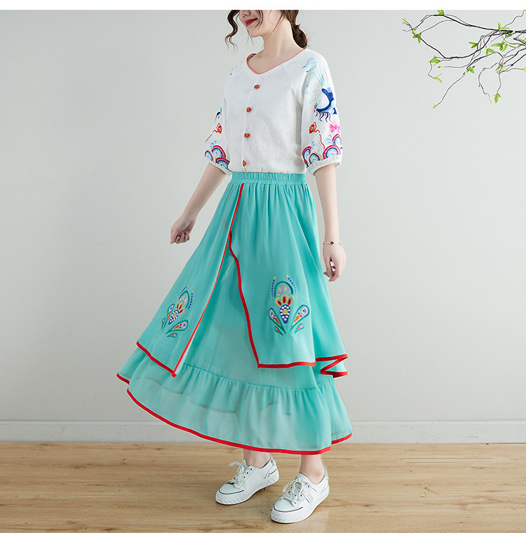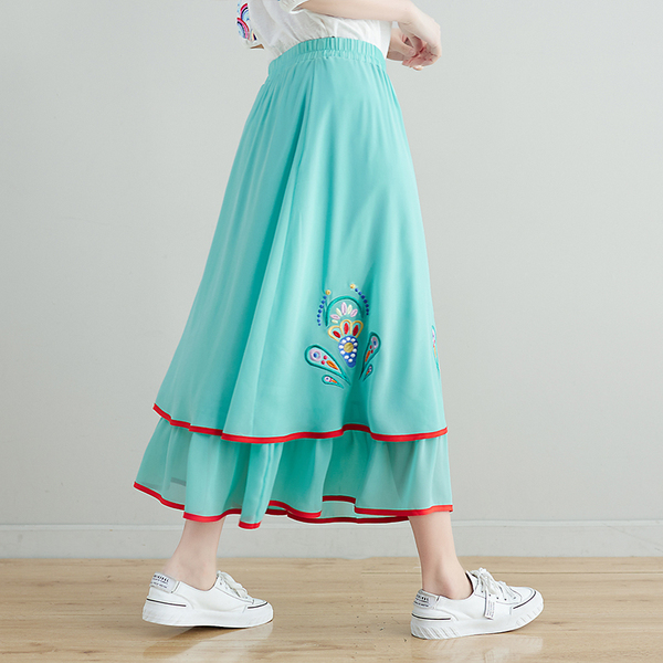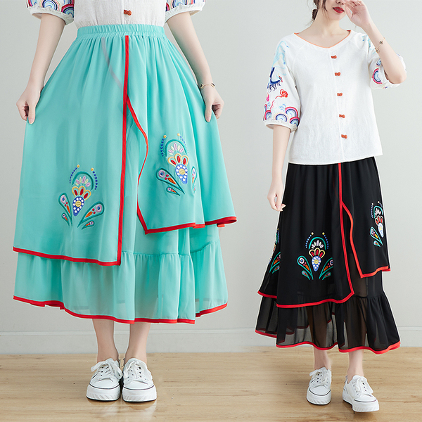 RM24860#春夏新款绣花雪纺半身裙民族风中长裙复古文艺大摆裙女裙子