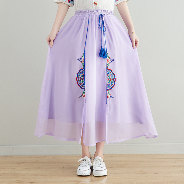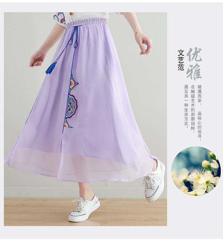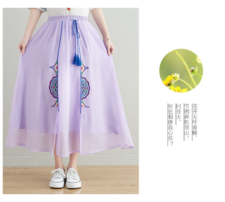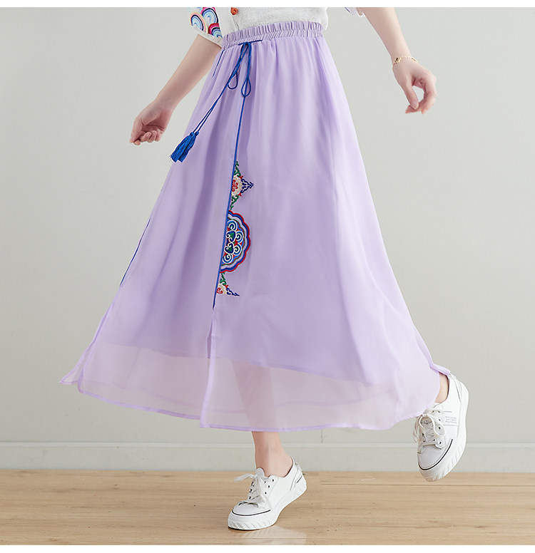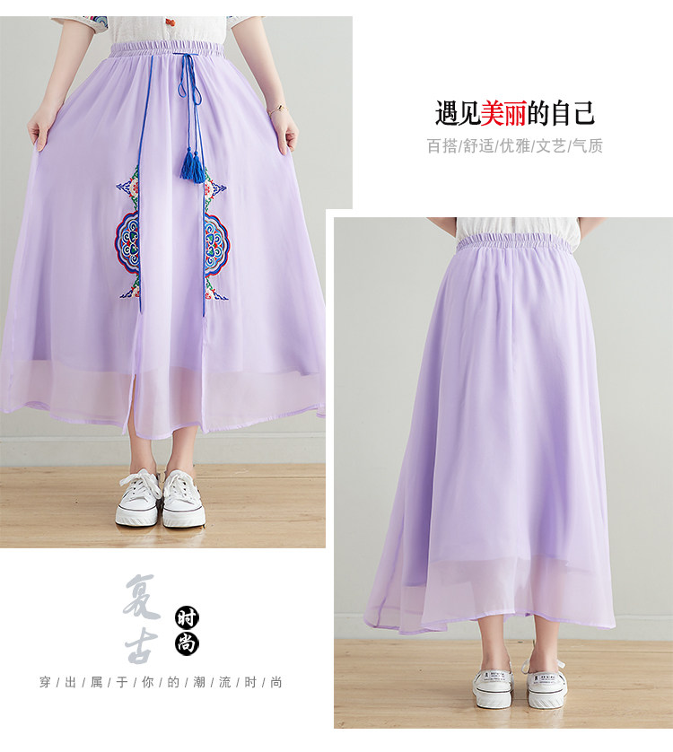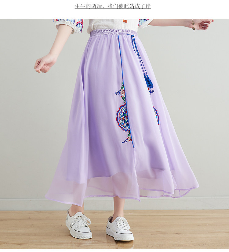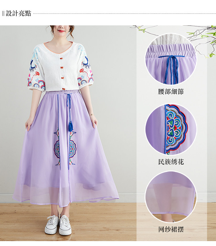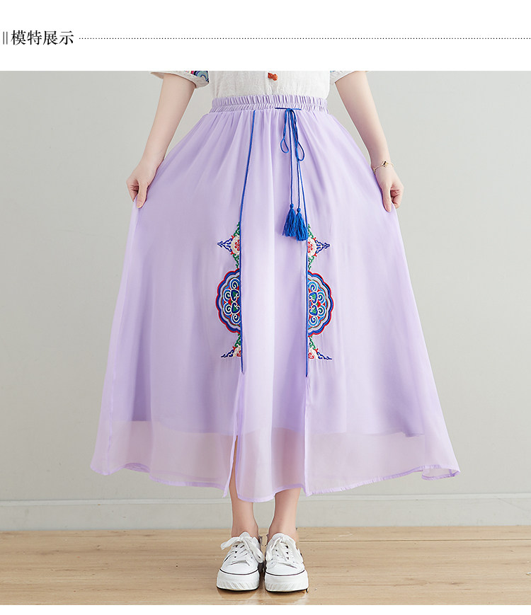 RM24861#春夏民族风女装复古中长绣花裙女流苏绑带纱裙半身大摆裙女