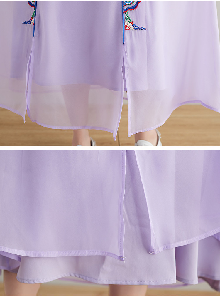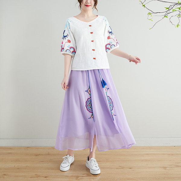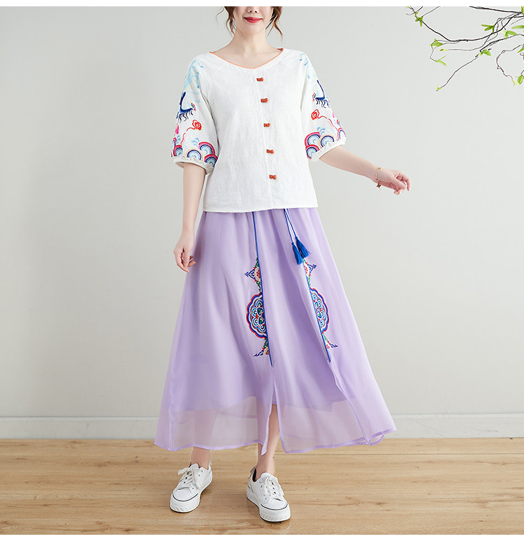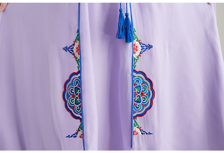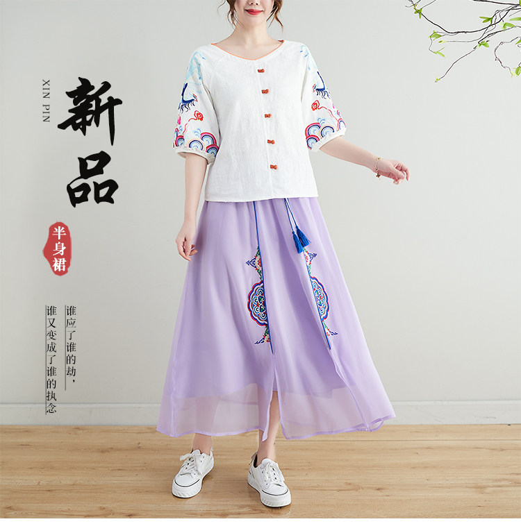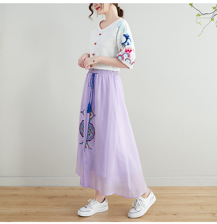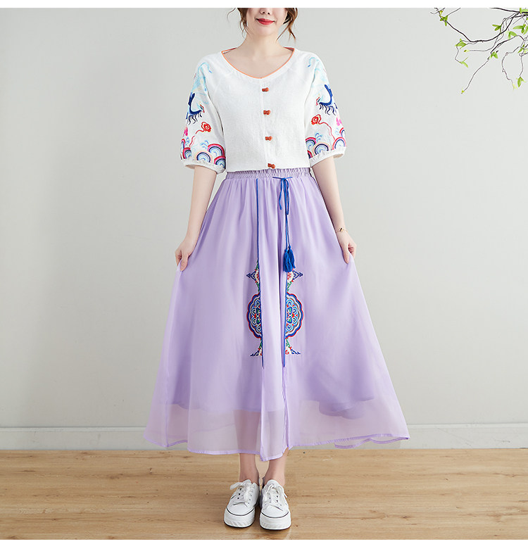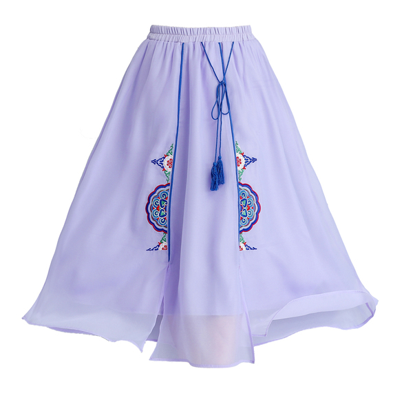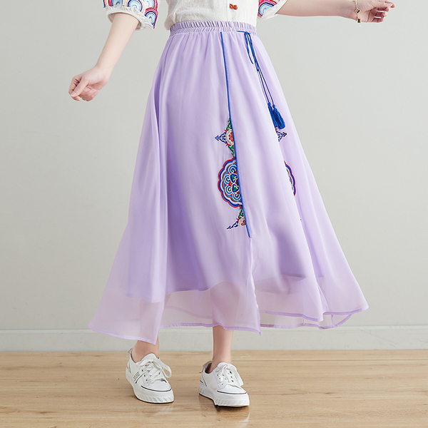 RM24861#春夏民族风女装复古中长绣花裙女流苏绑带纱裙半身大摆裙女
