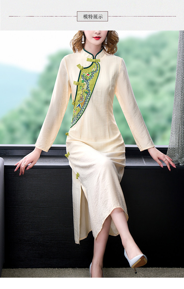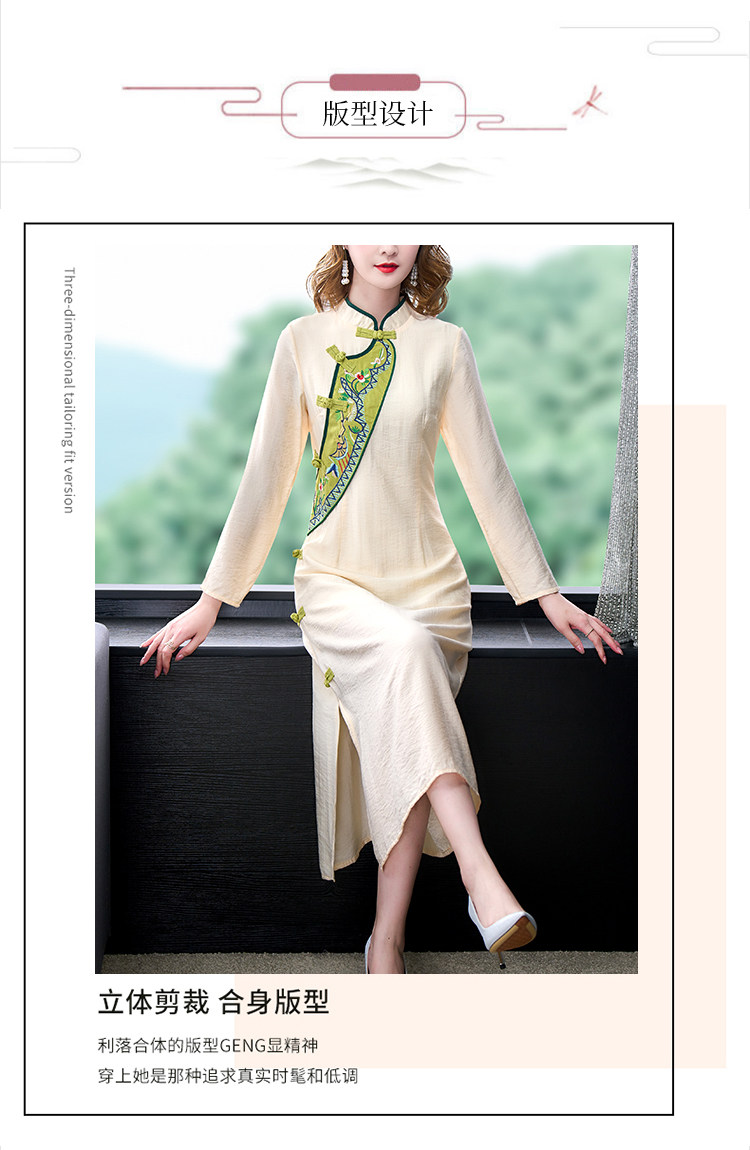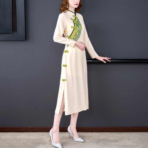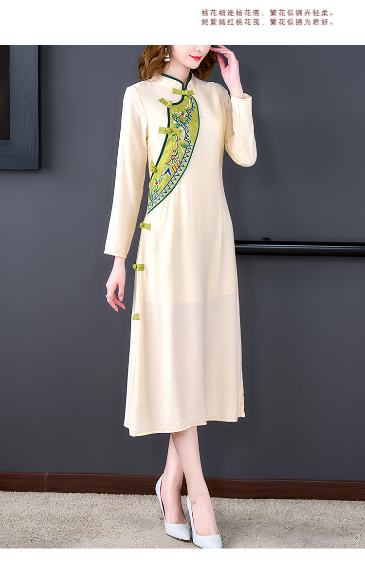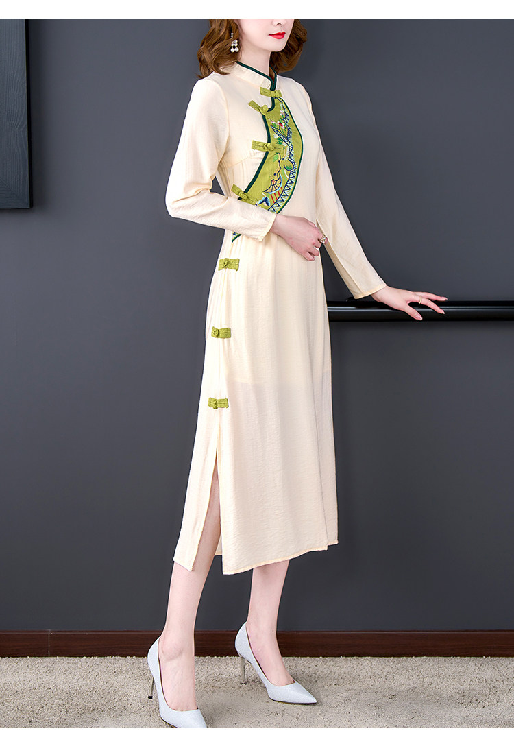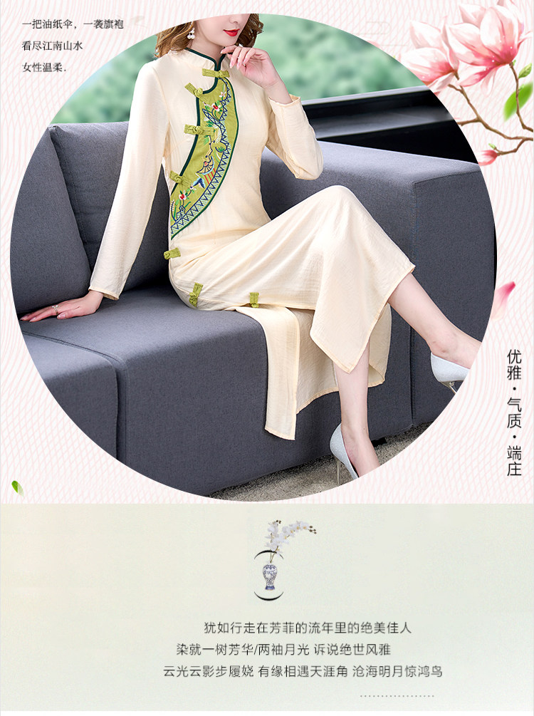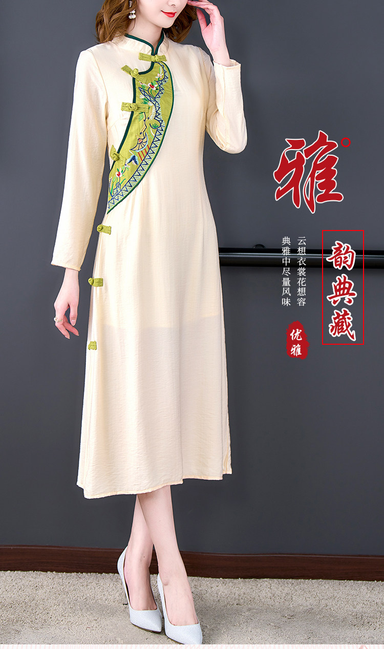 RM24870#复古中国风刺绣连衣裙显瘦长袖改良旗袍女中长裙子