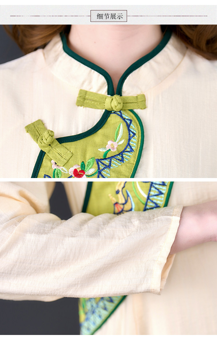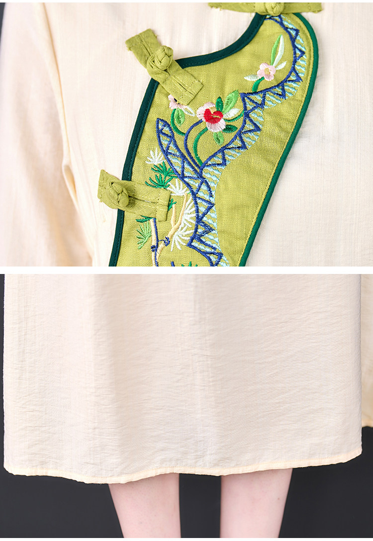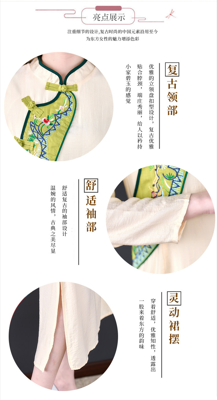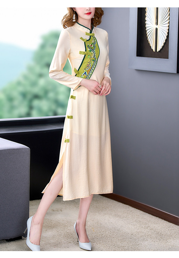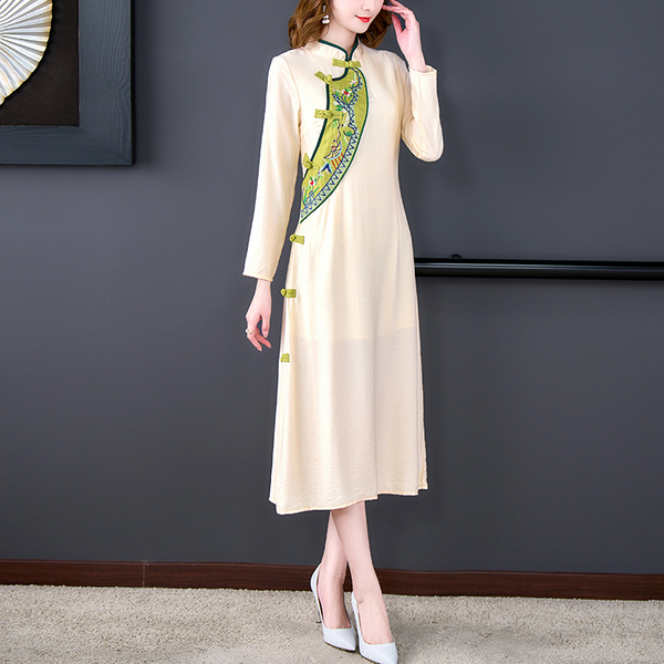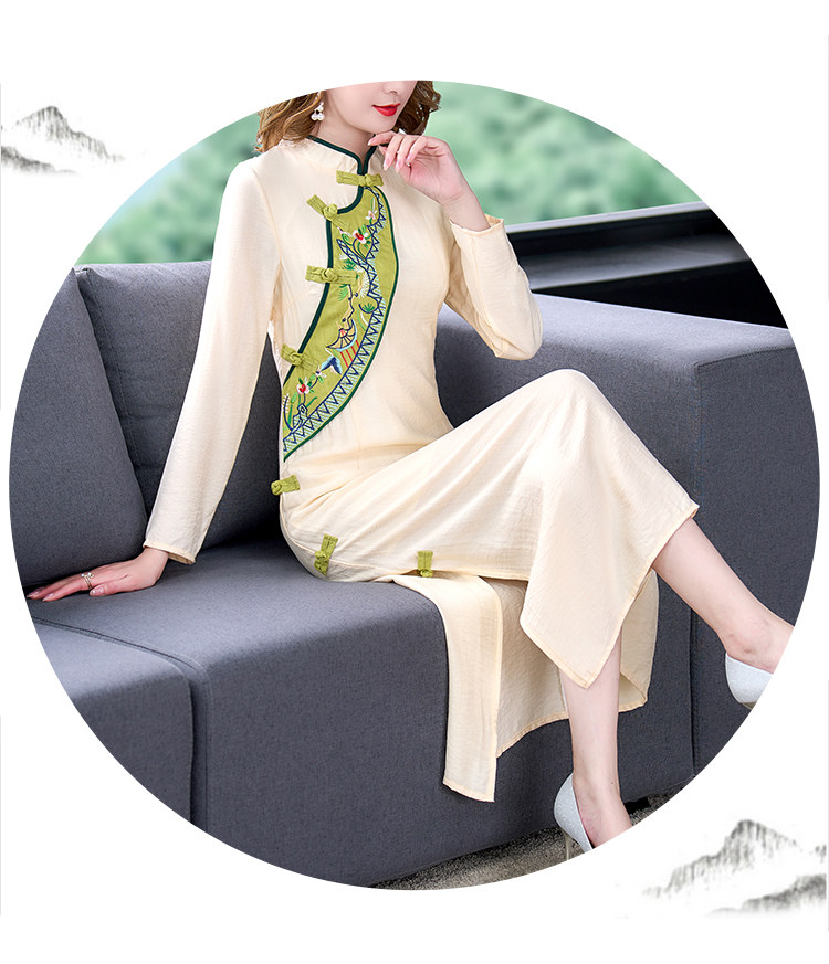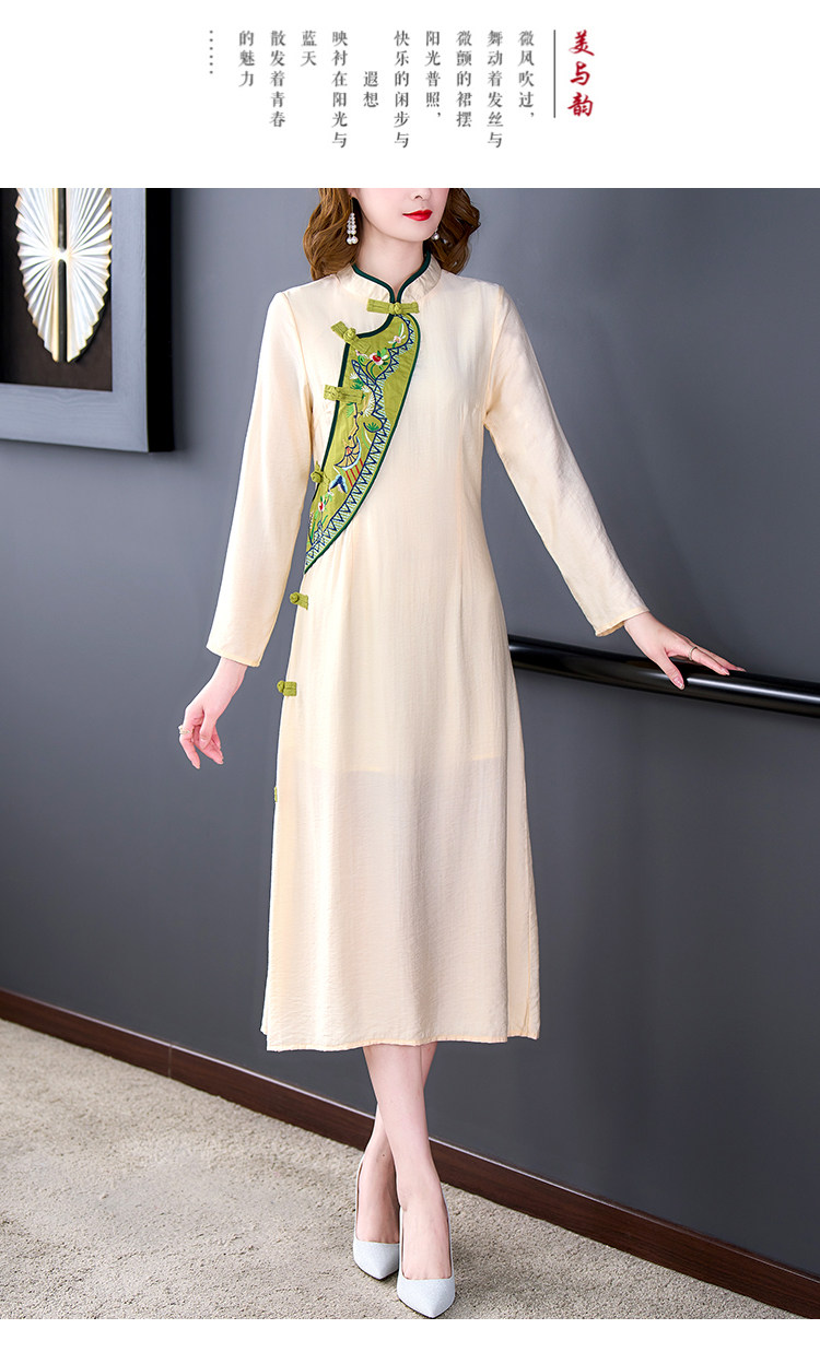 RM24870#复古中国风刺绣连衣裙显瘦长袖改良旗袍女中长裙子
