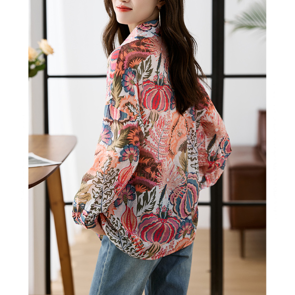 RM24897#洋气休闲秋季新款女装翻领花色雪纺衫上衣开衫衬衫打底衫衬衣