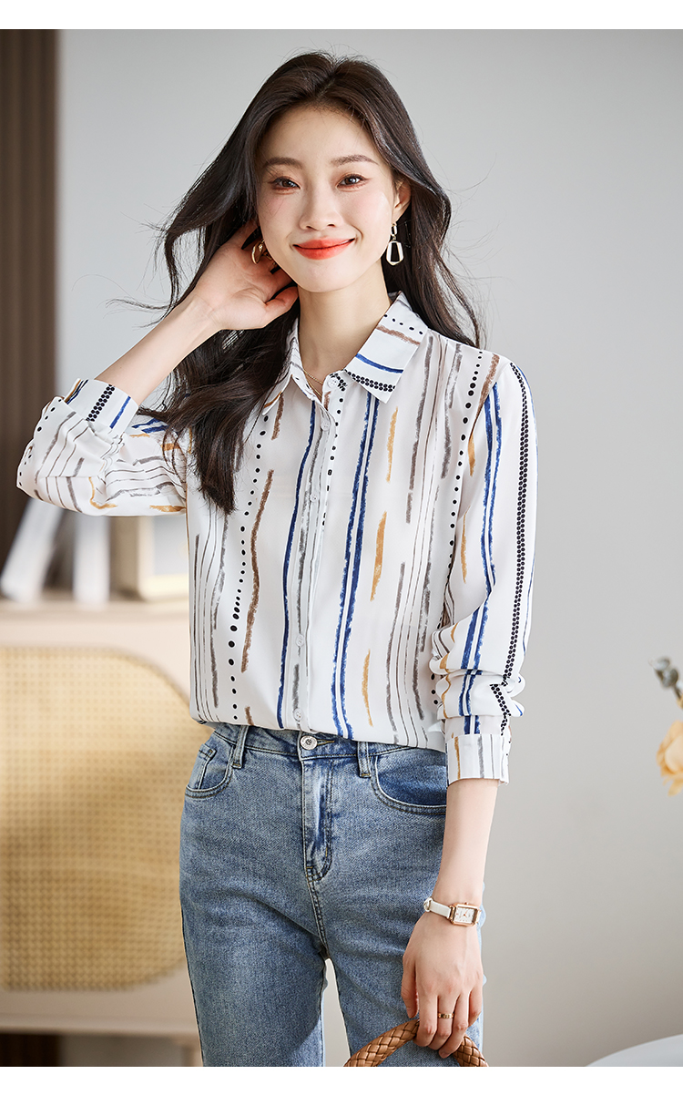 RM24900#洋气休闲秋季新款女装翻领彩色雪纺衫上衣开衫衬衫打底衫衬衣