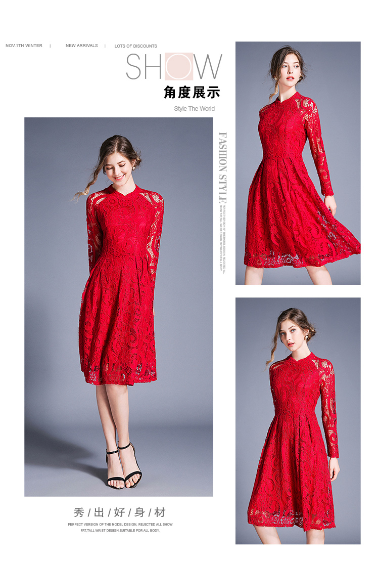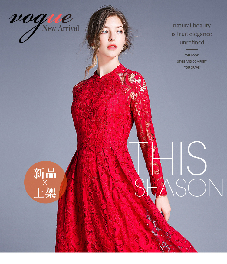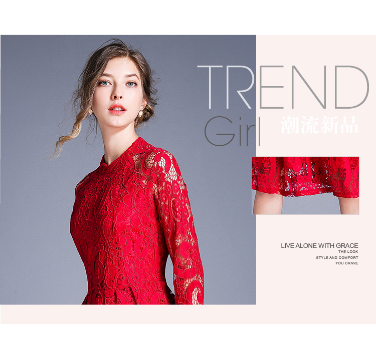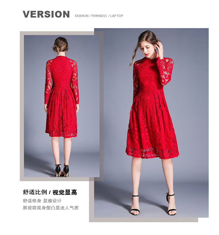 RY1843#欧美大摆蕾丝连衣裙