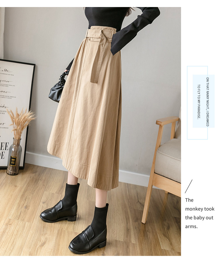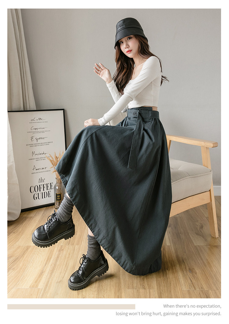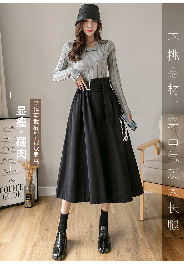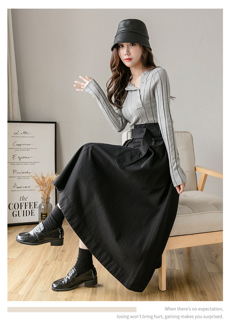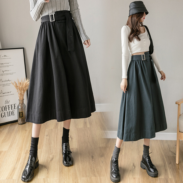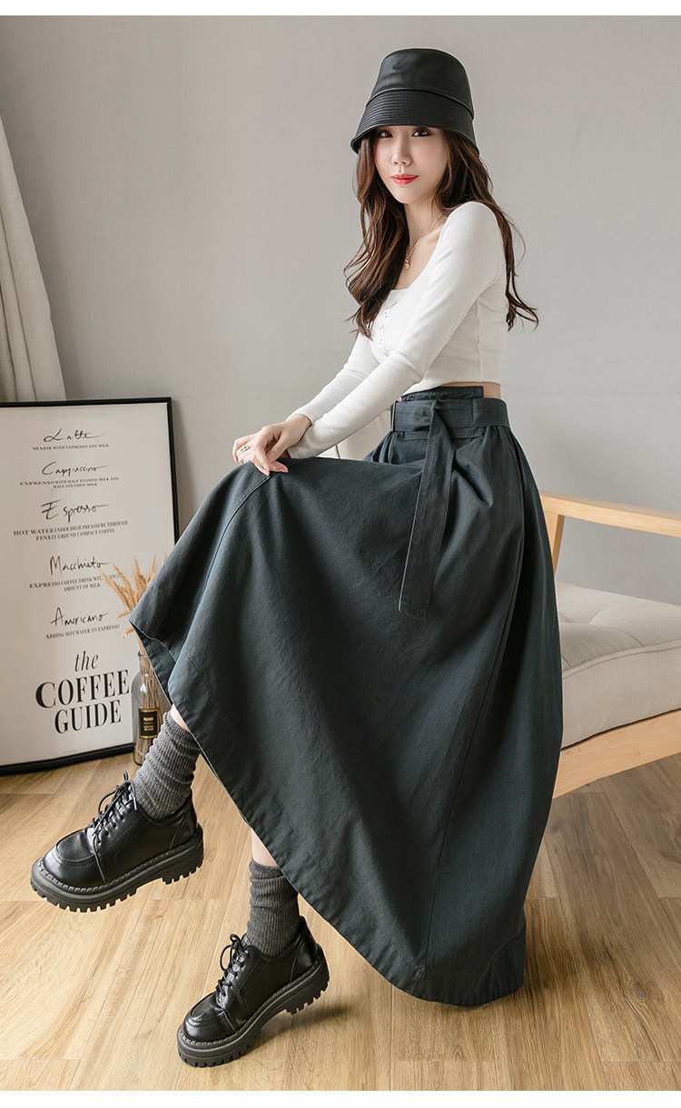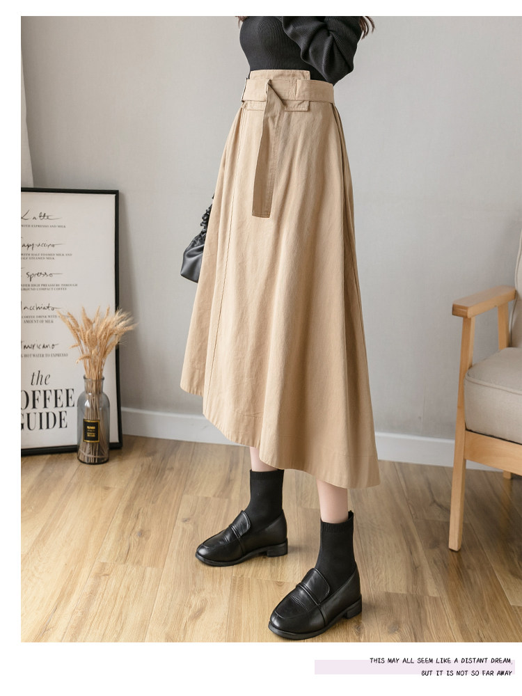 RY1847#韩版不规则裙女新款春装中长款黑色高腰显瘦a字裙秋冬半身长裙子