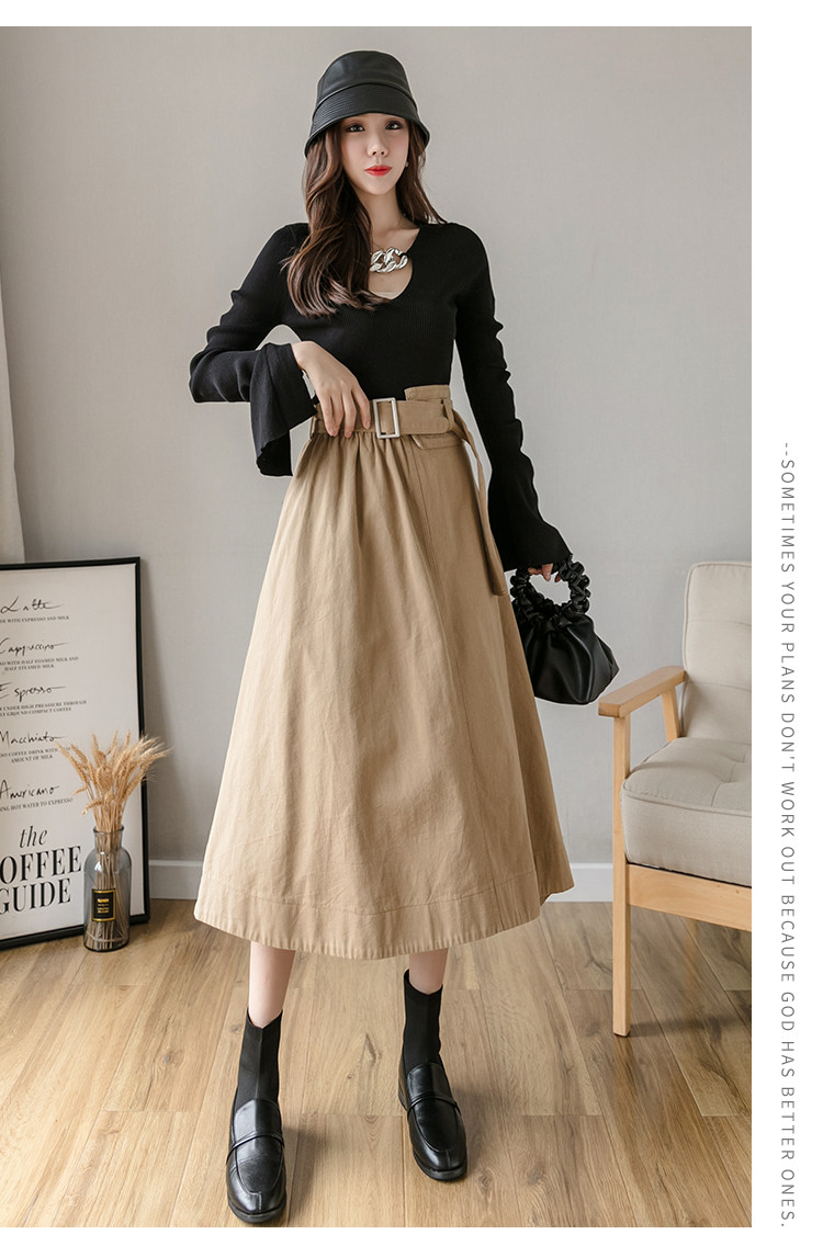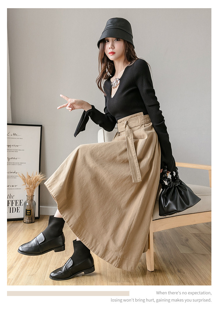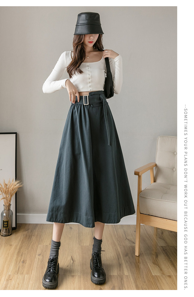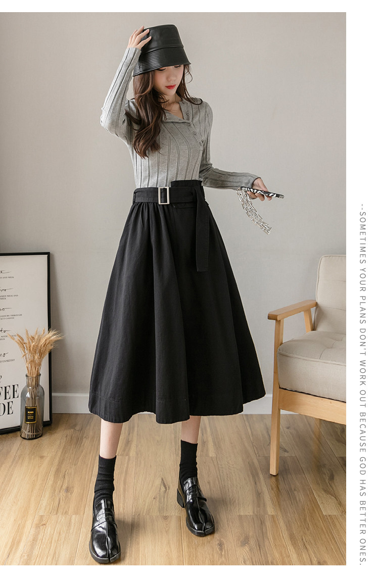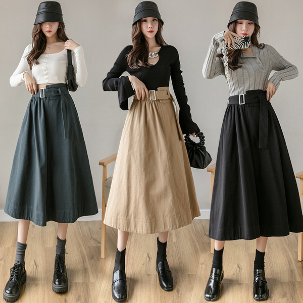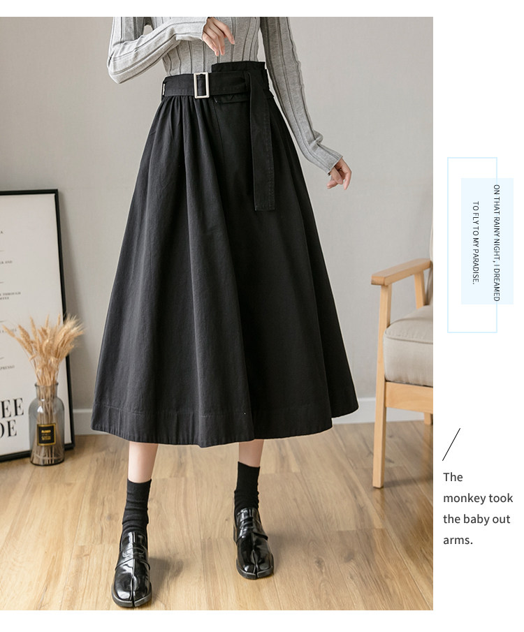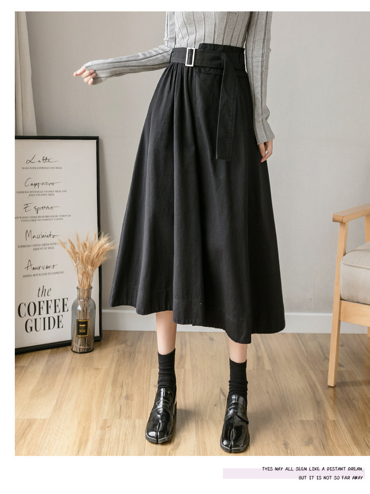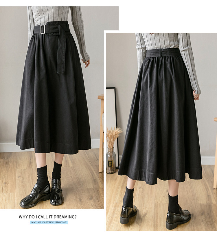 RY1847#韩版不规则裙女新款春装中长款黑色高腰显瘦a字裙秋冬半身长裙子