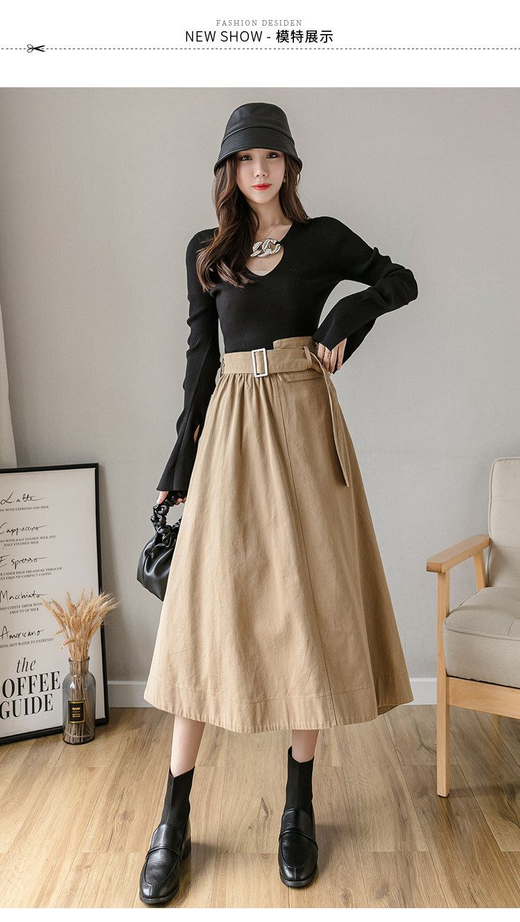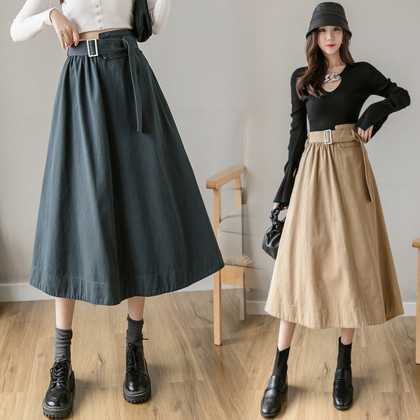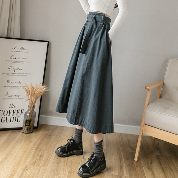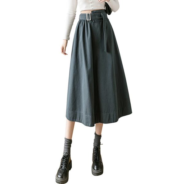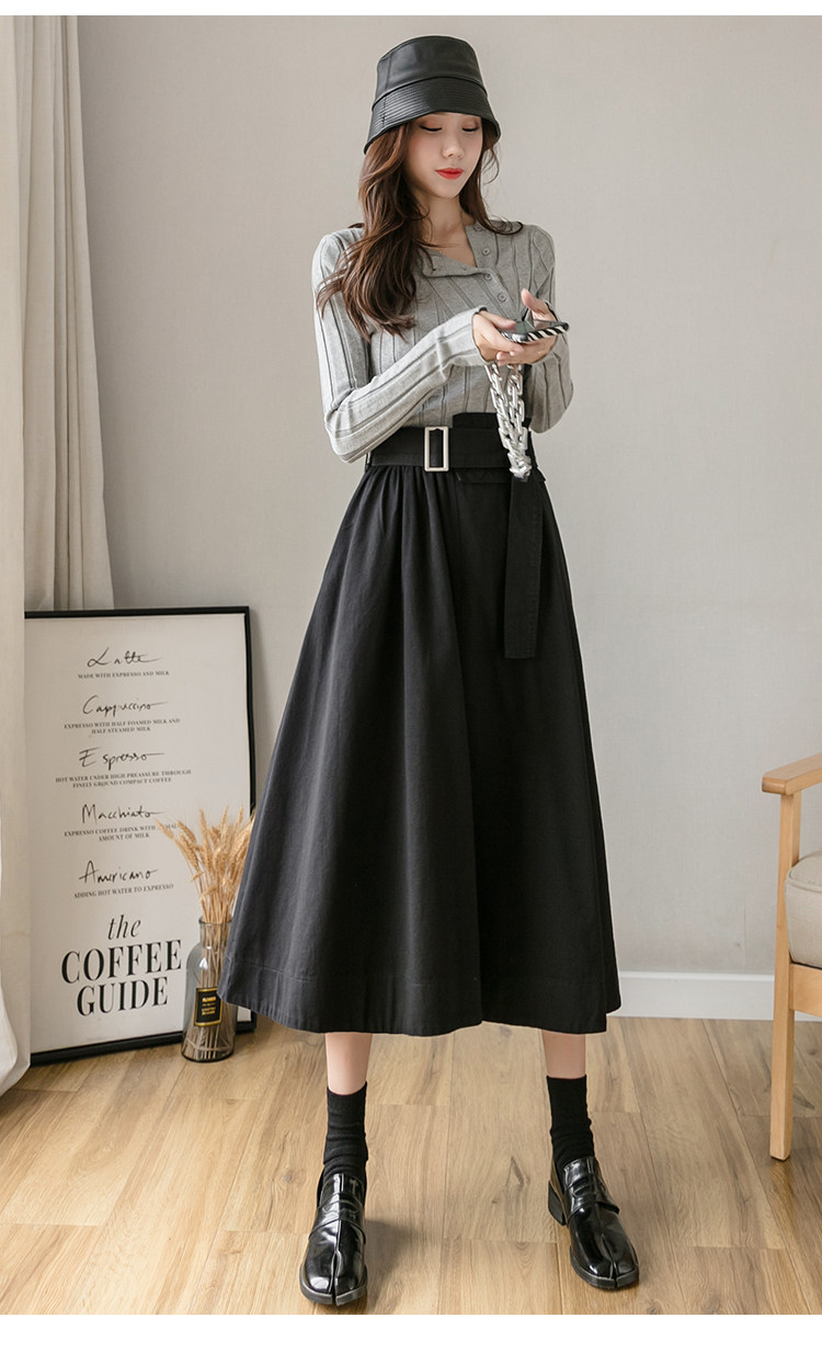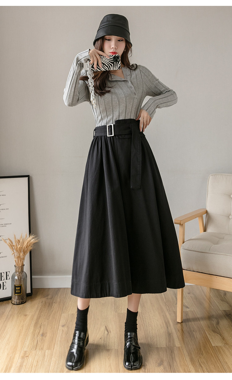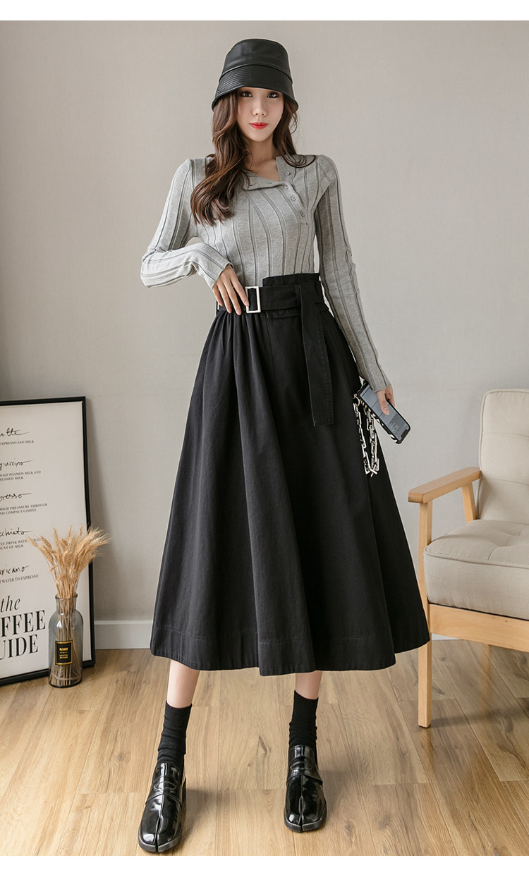 RY1847#韩版不规则裙女新款春装中长款黑色高腰显瘦a字裙秋冬半身长裙子