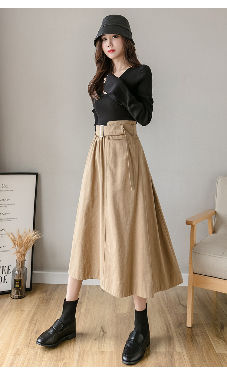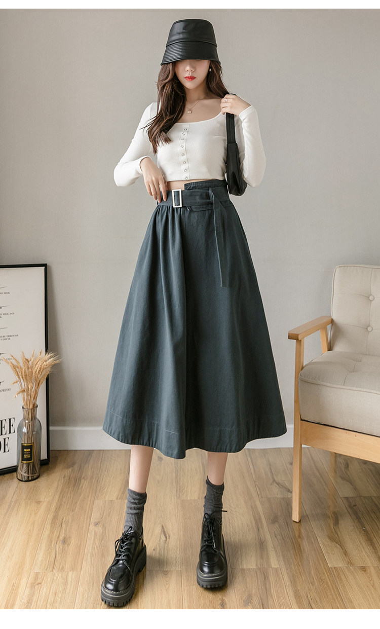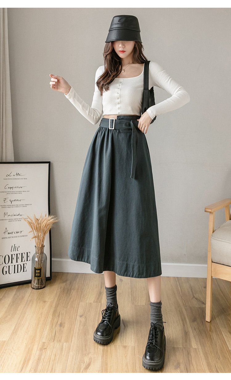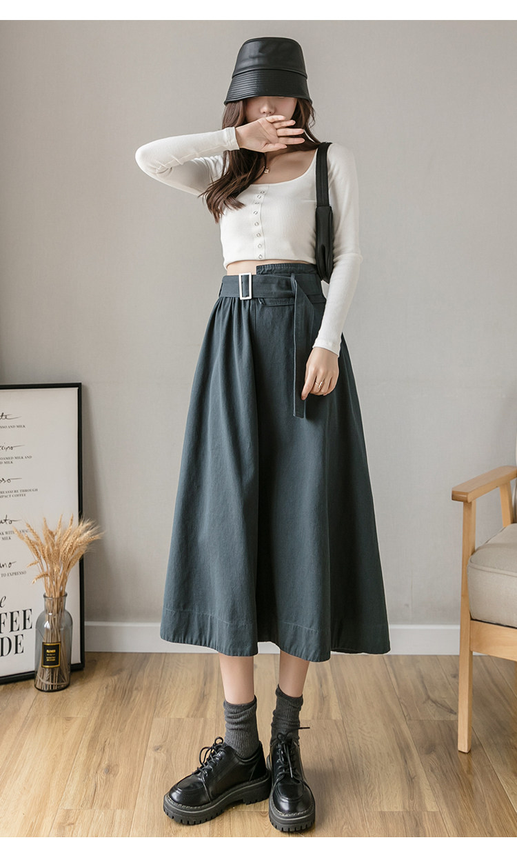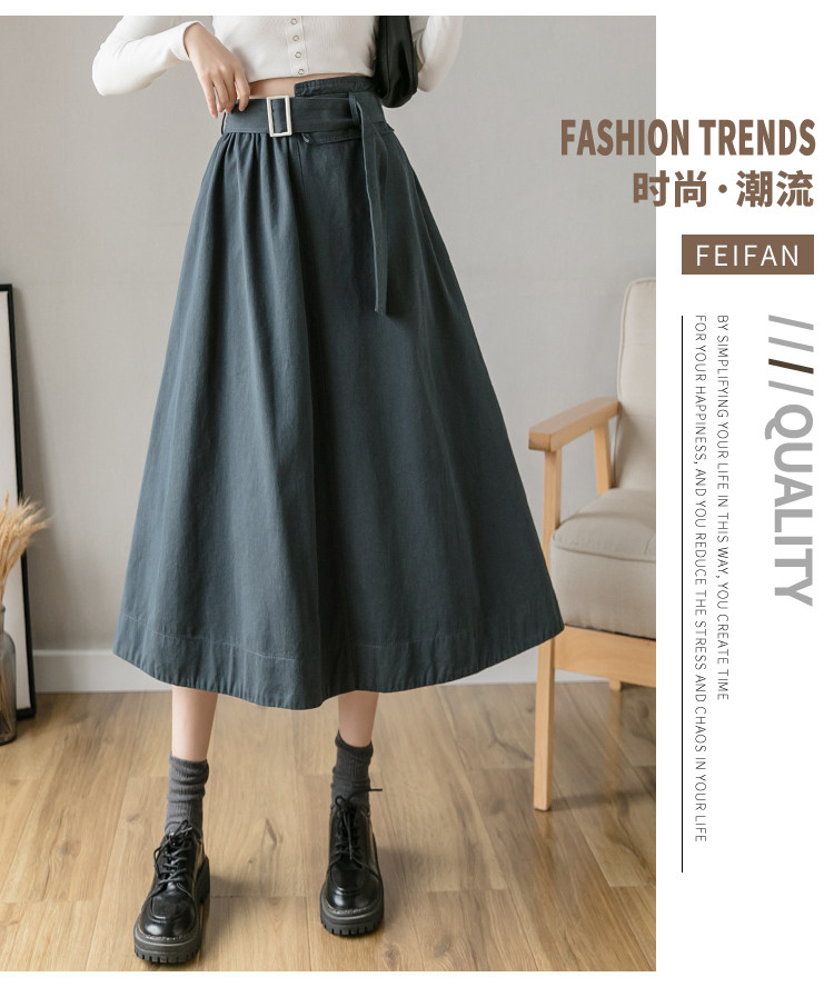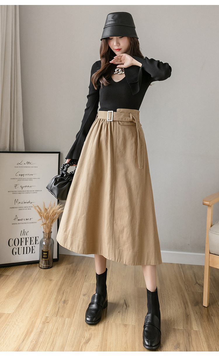 RY1847#韩版不规则裙女新款春装中长款黑色高腰显瘦a字裙秋冬半身长裙子