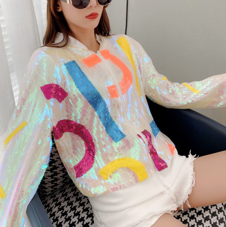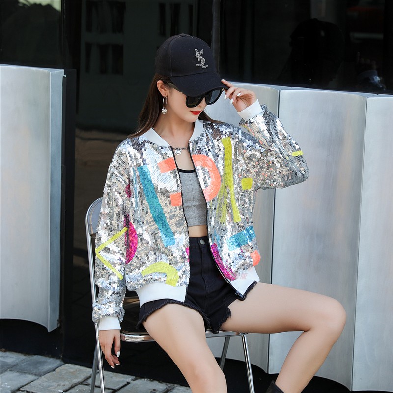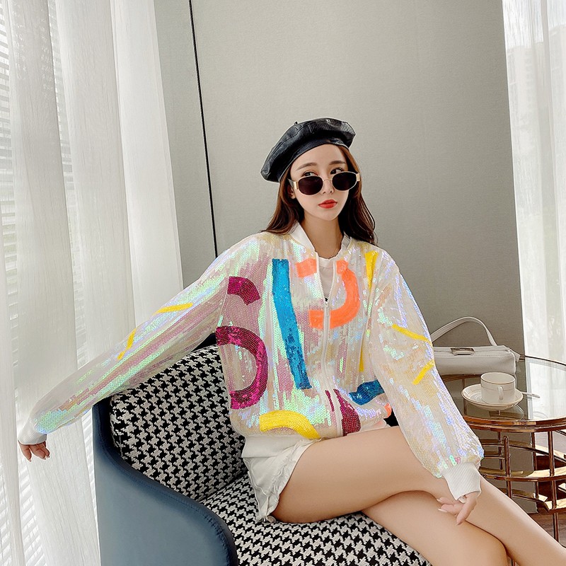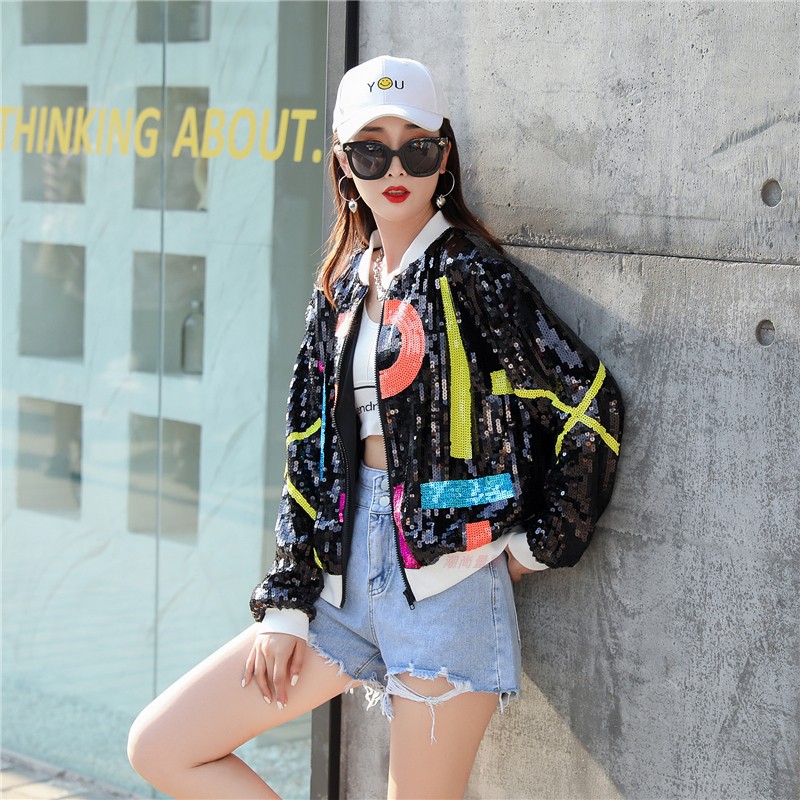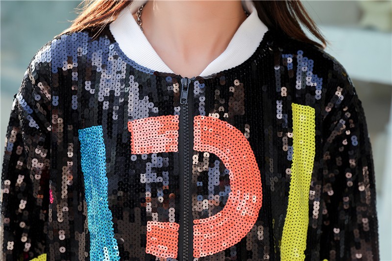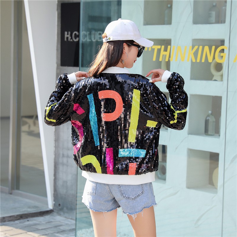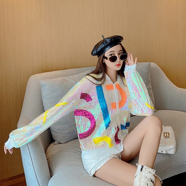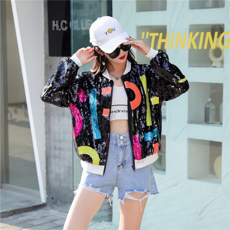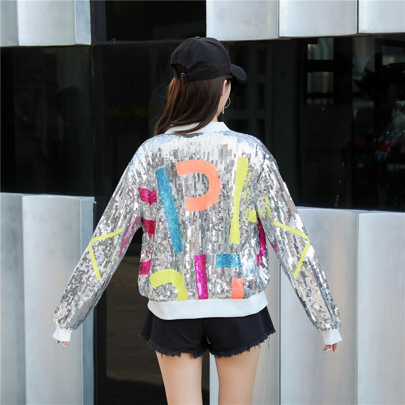 全身利用亮片设计,打造出街头造型,潮流感十足,上身很闲气质的哦