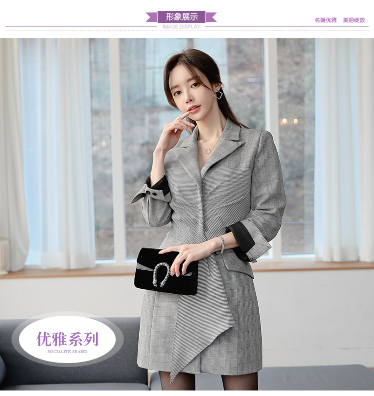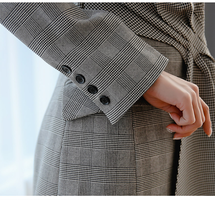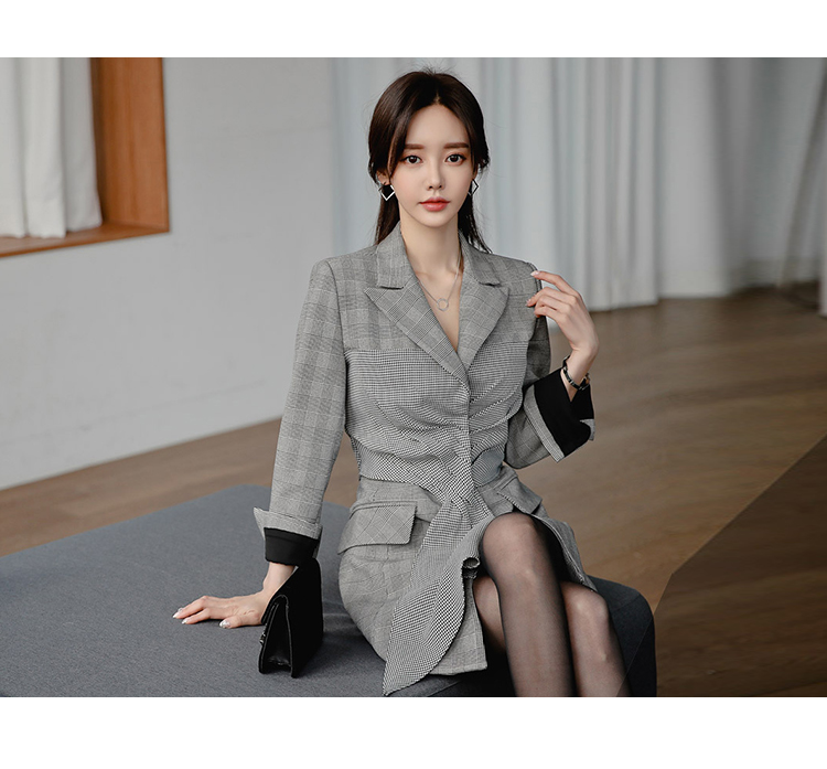 RM25021#韩版新品格子外套长袖修身本装西装V领连衣裙外套