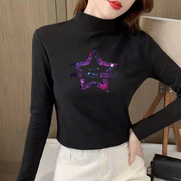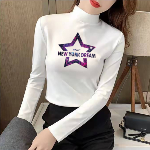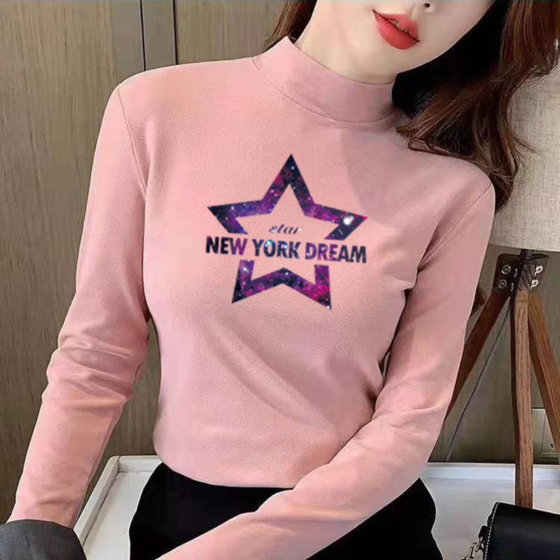 RM25559#双面氨纶德绒秋冬季新款德绒修身显瘦保暖T恤女半高领