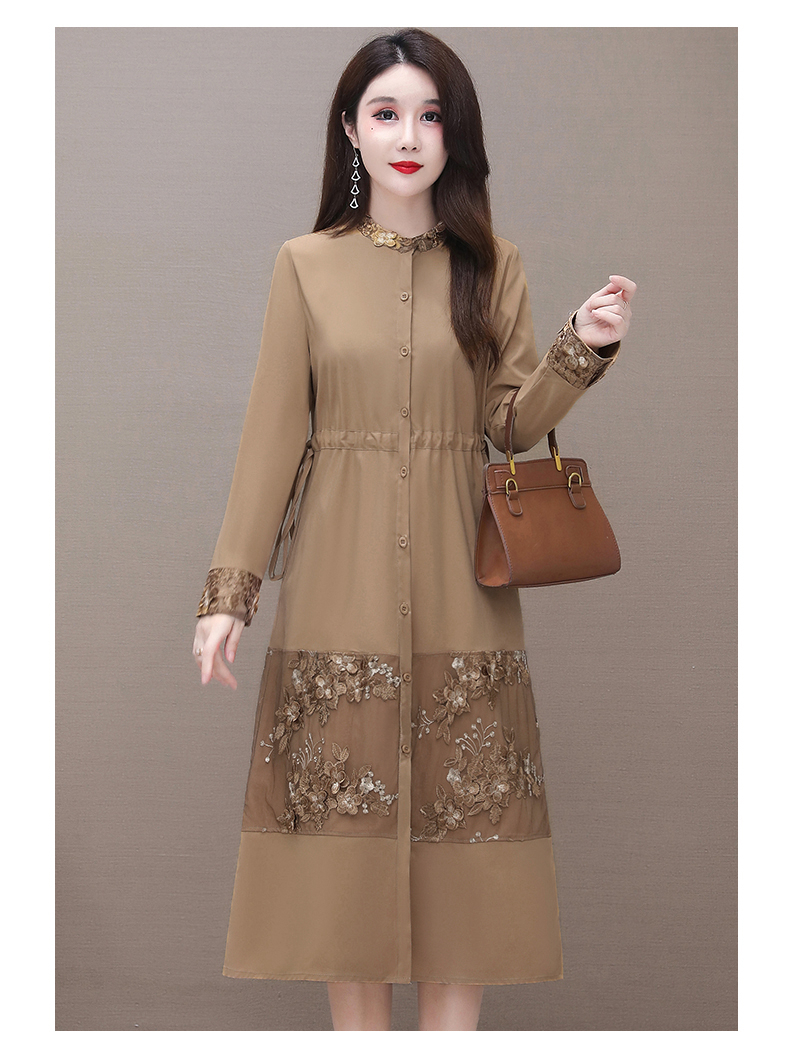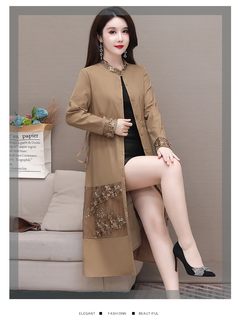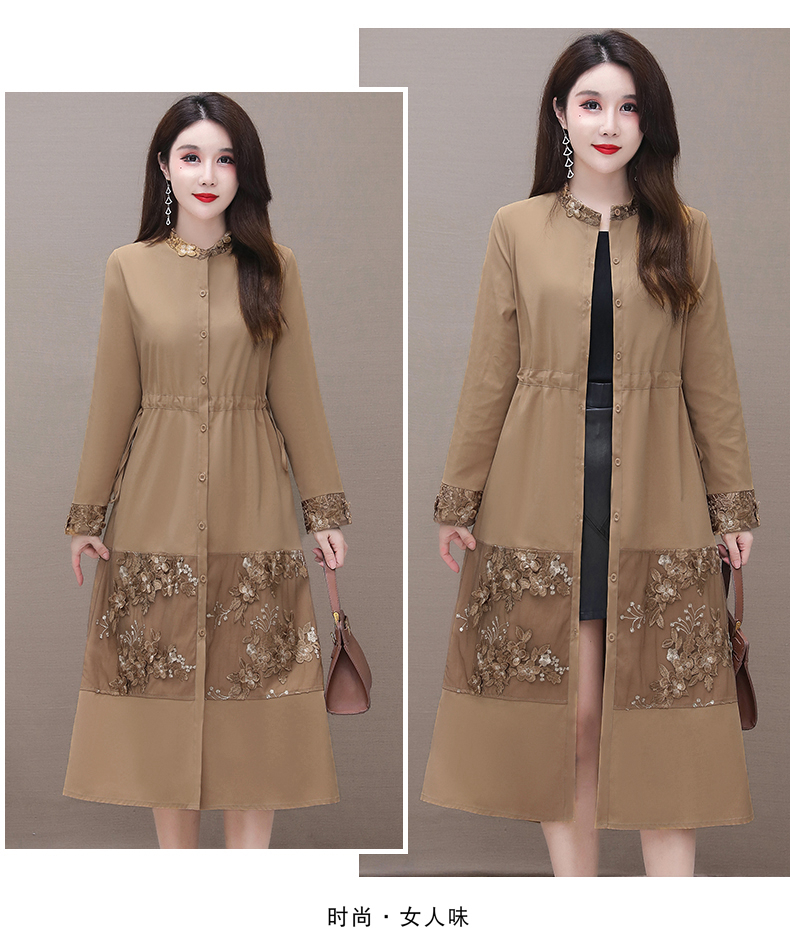 RM25780#时尚绣花风衣外套女2023秋冬季新款流行洋气女士修身中长款大衣