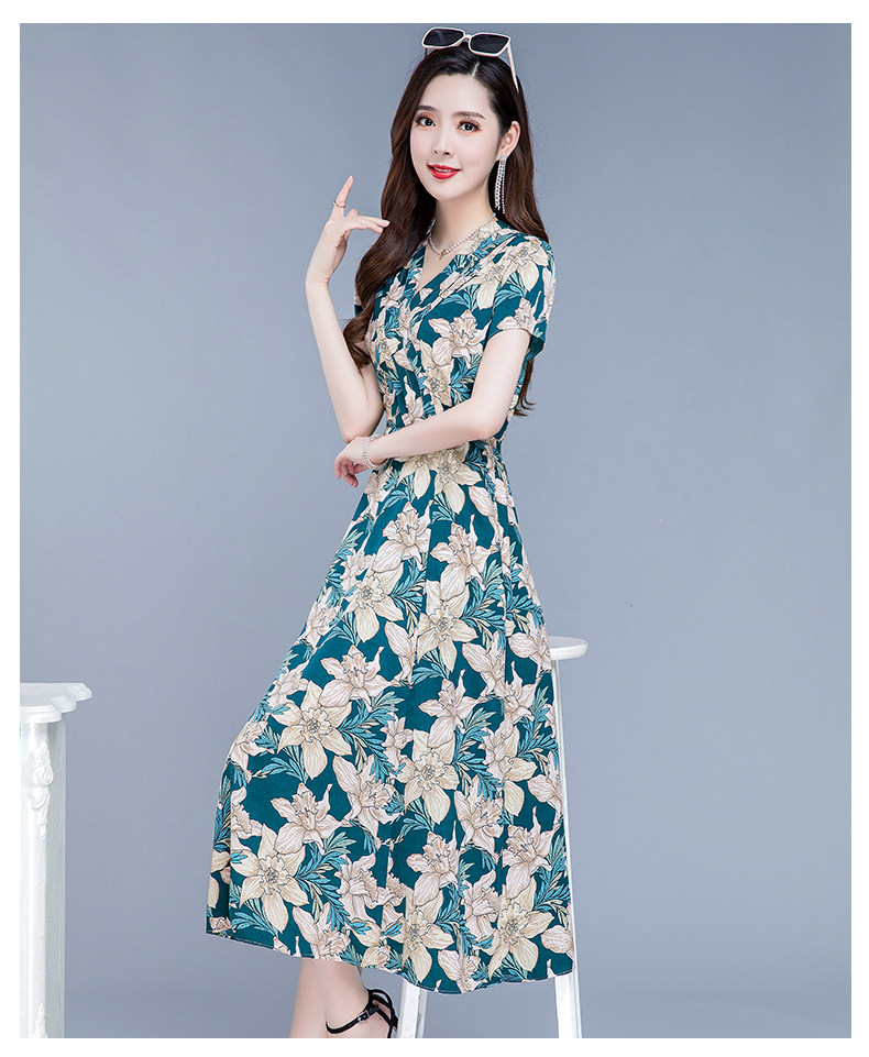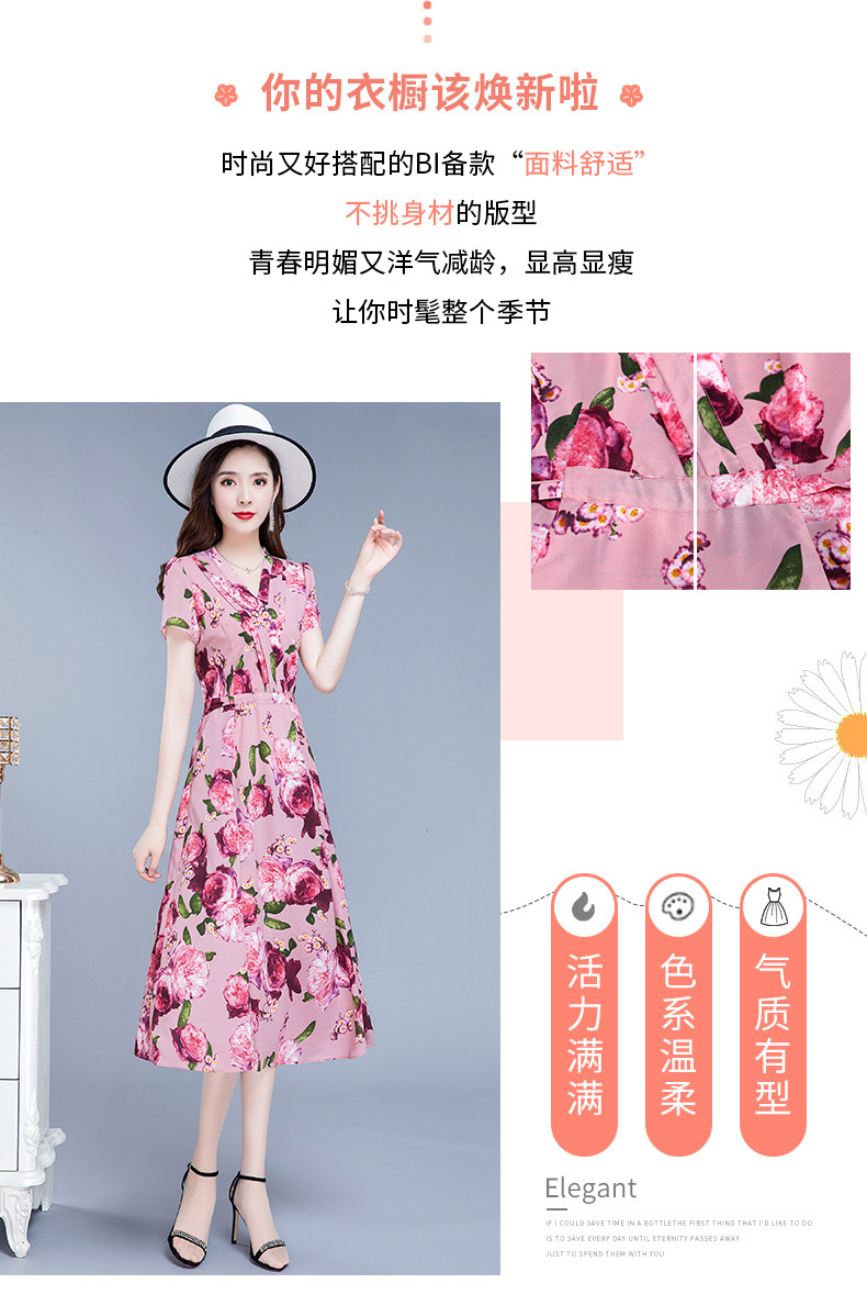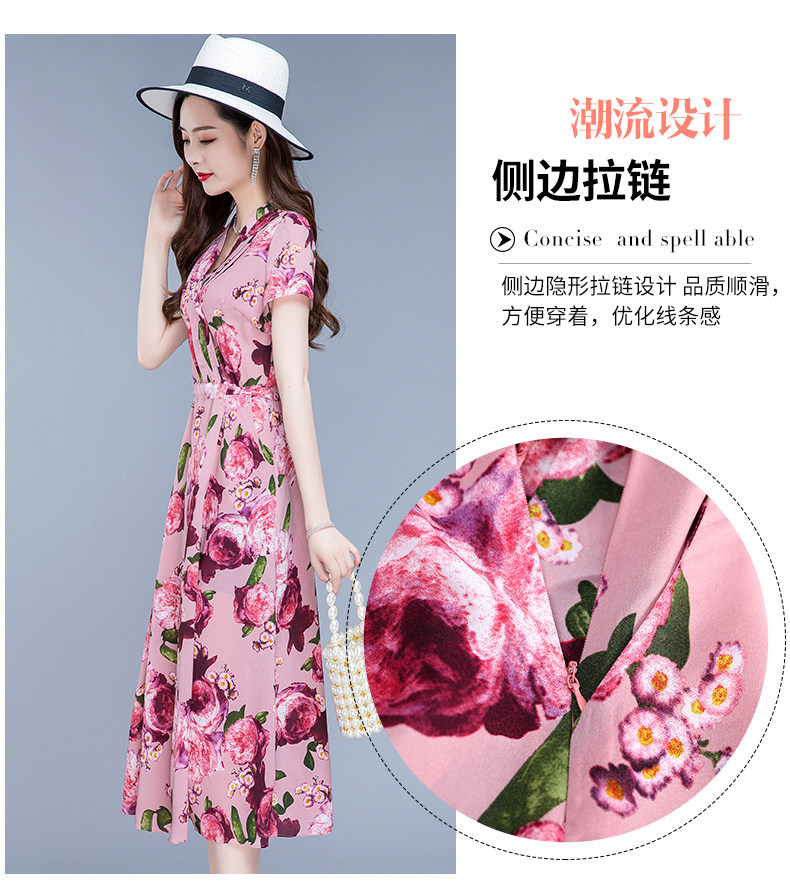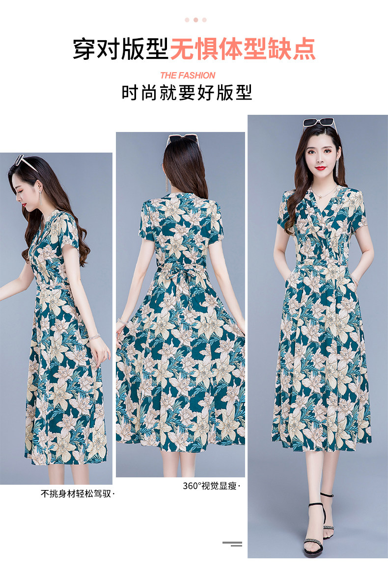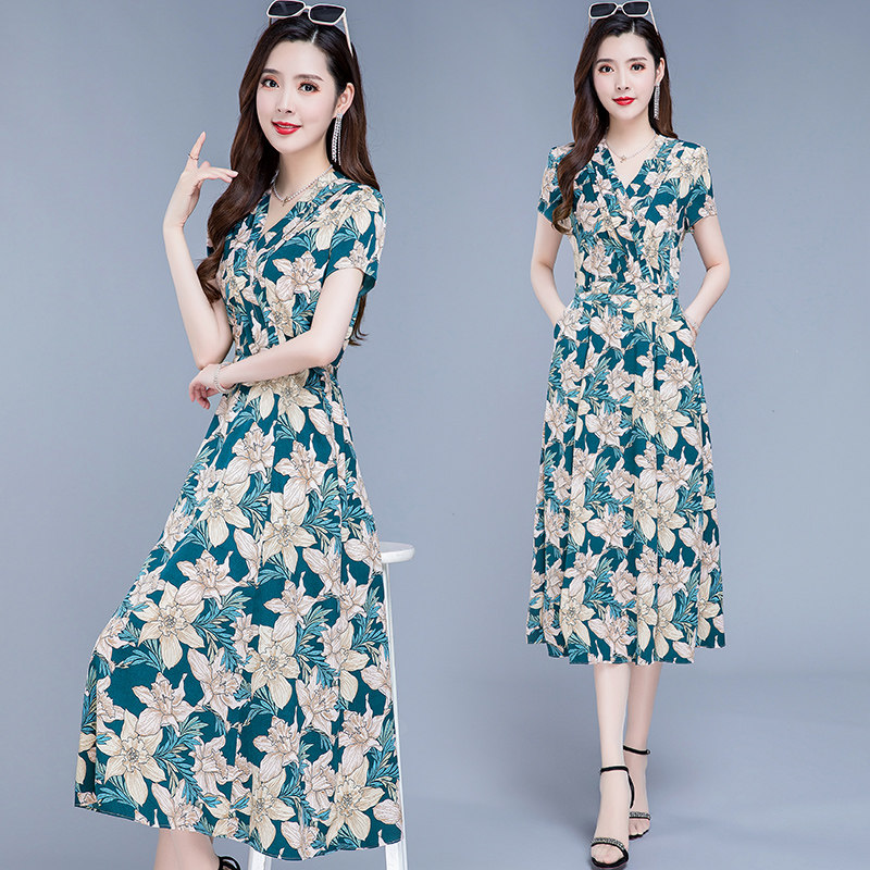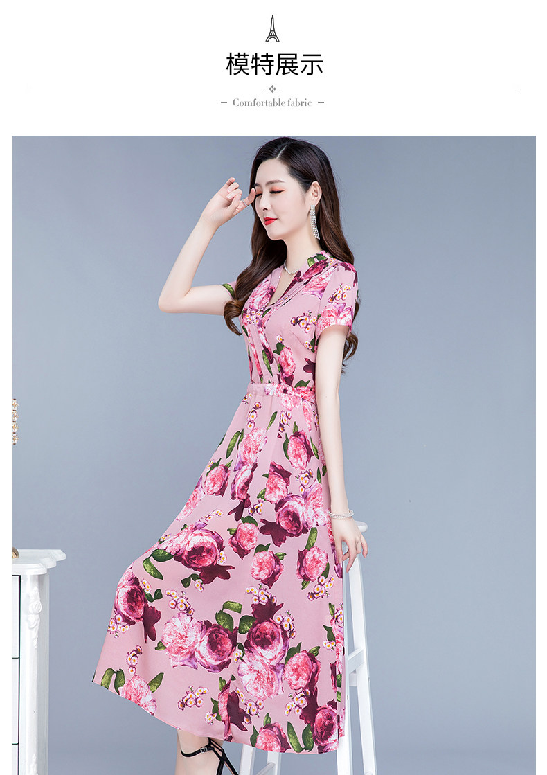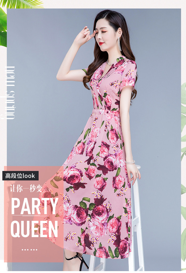 RM25789#碎花真丝连衣裙女夏2023新款修身显瘦贵夫人中年长款过膝印花裙子