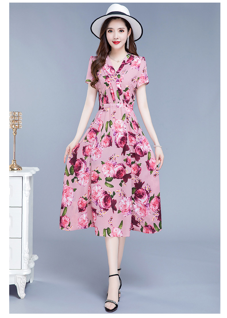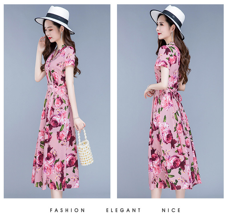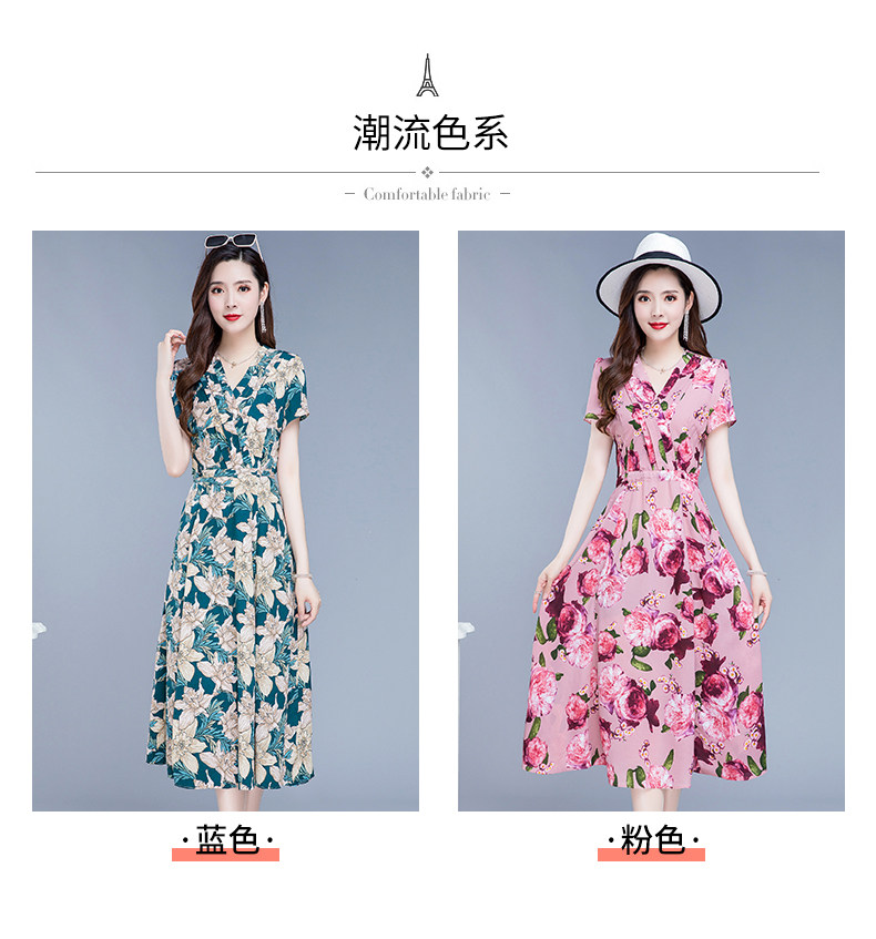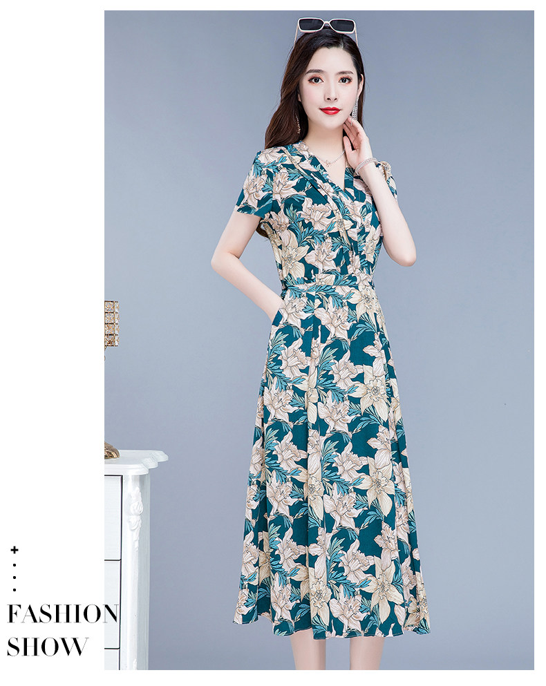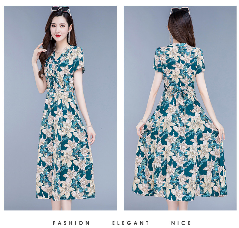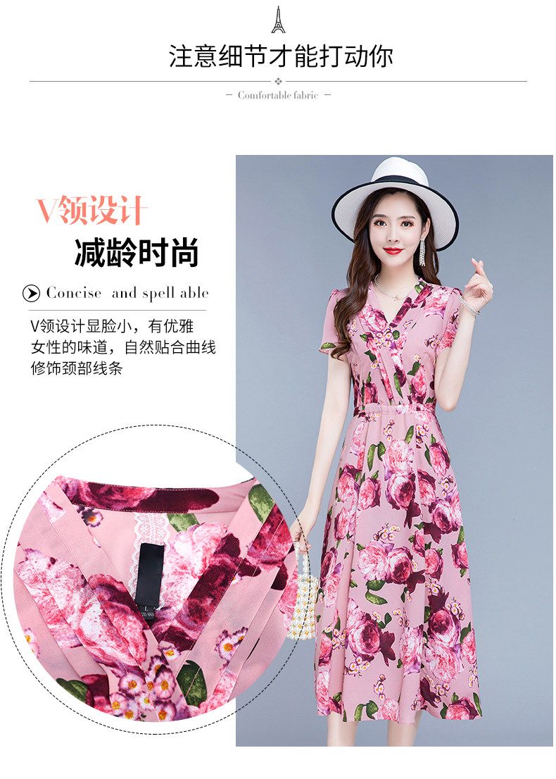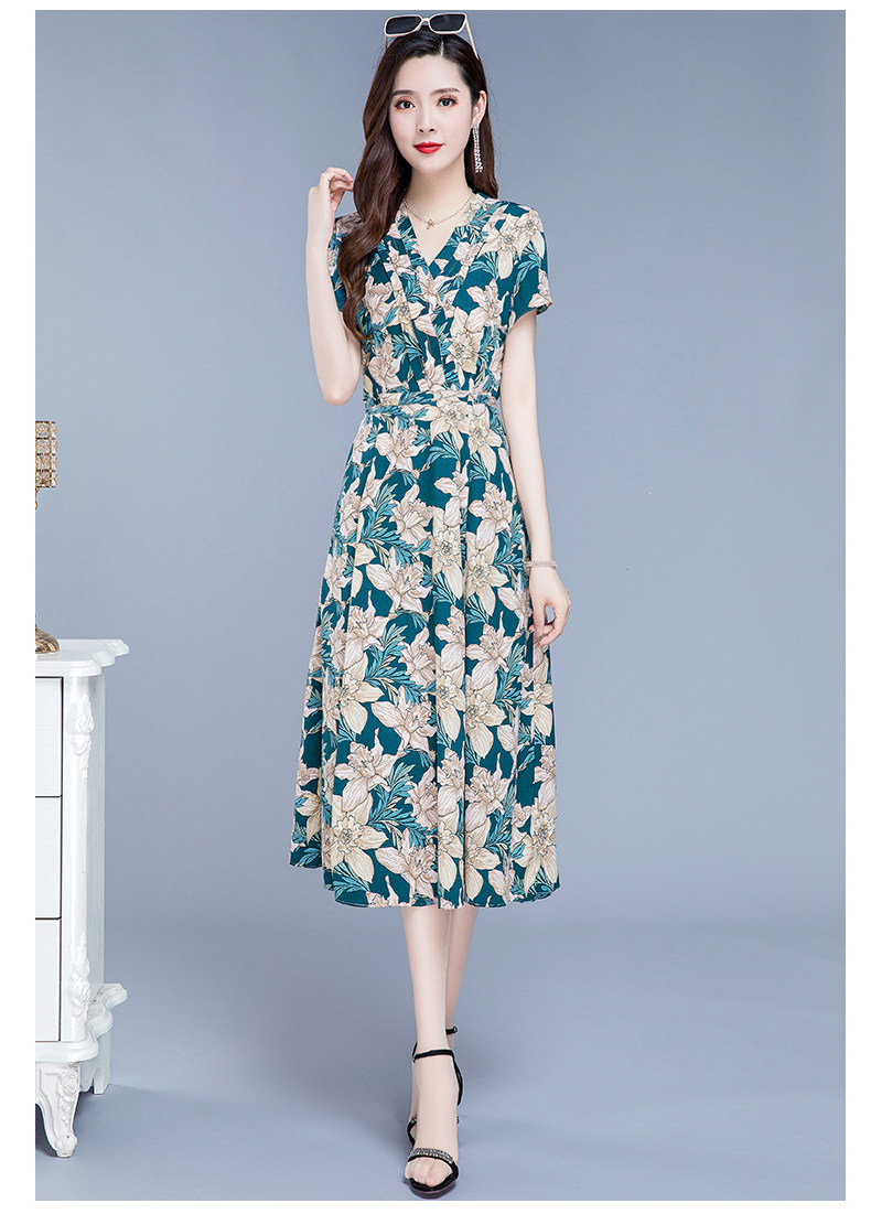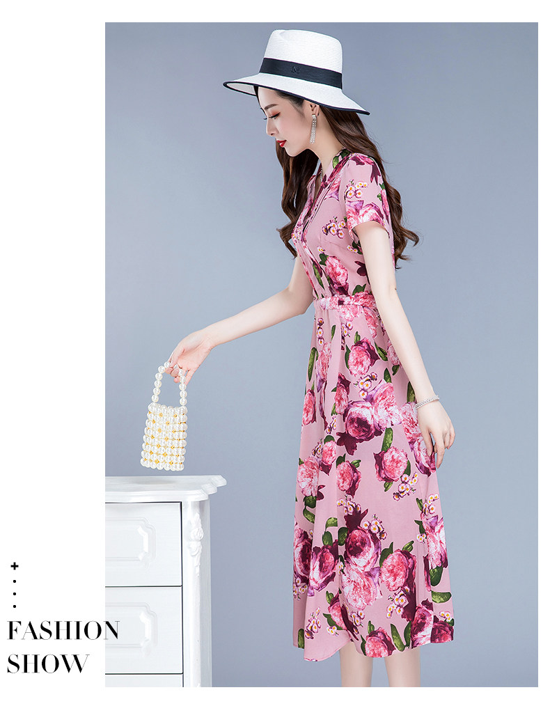 RM25789#碎花真丝连衣裙女夏2023新款修身显瘦贵夫人中年长款过膝印花裙子