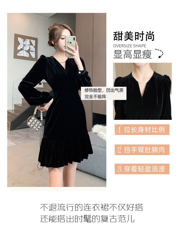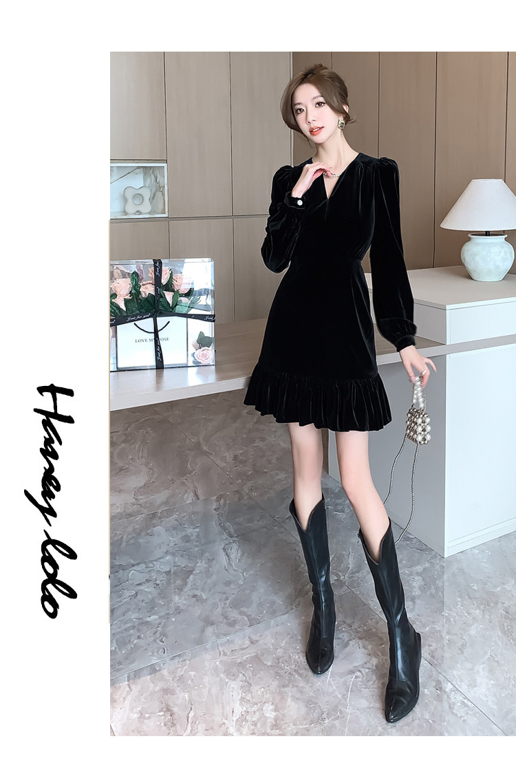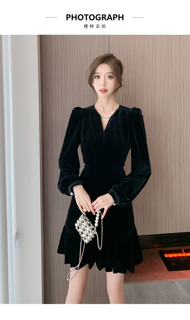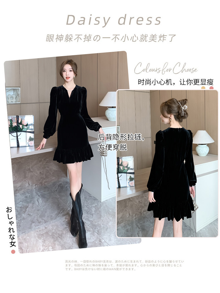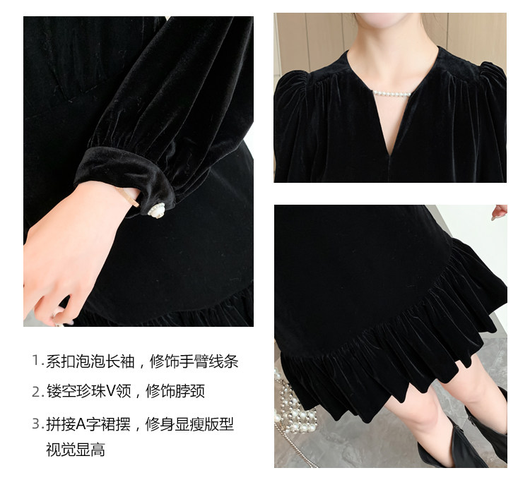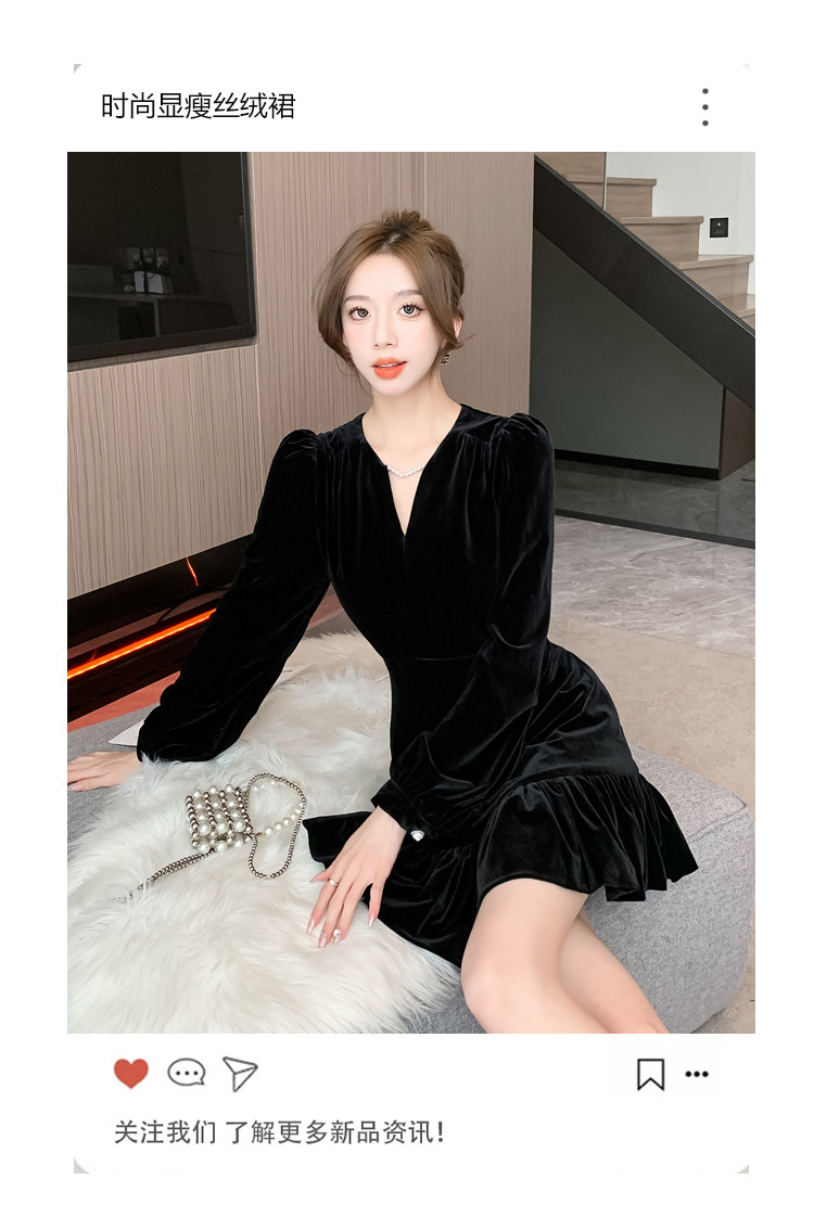 RM25859#秋冬新款高级显瘦小黑裙丝绒连衣裙