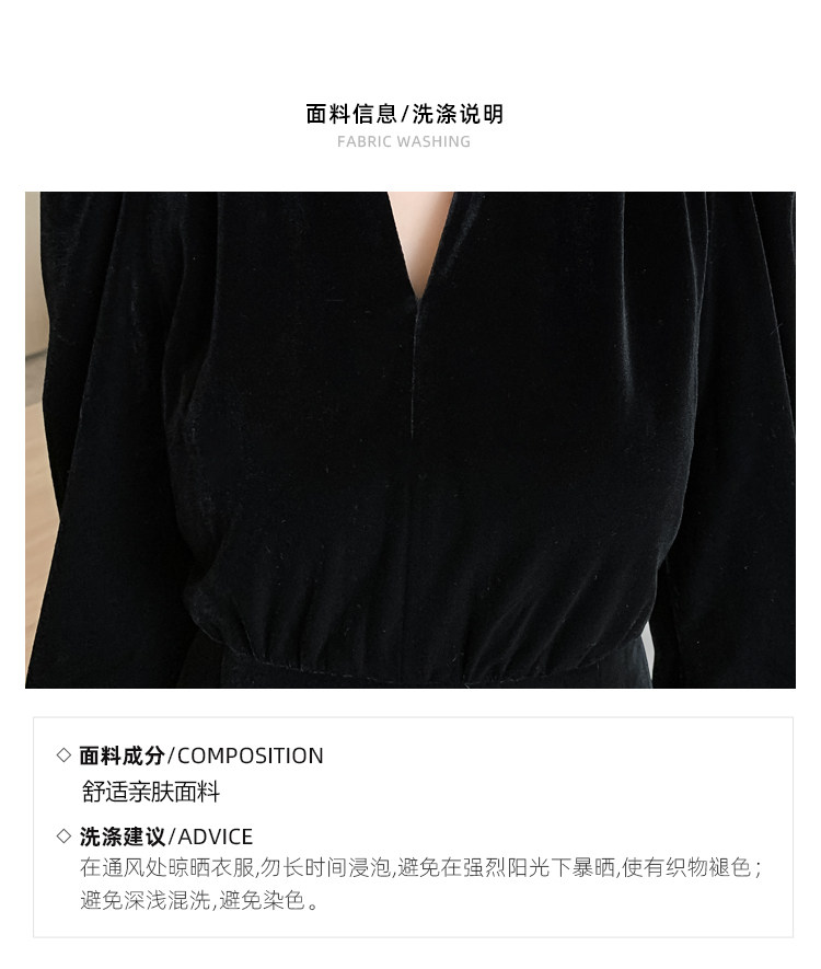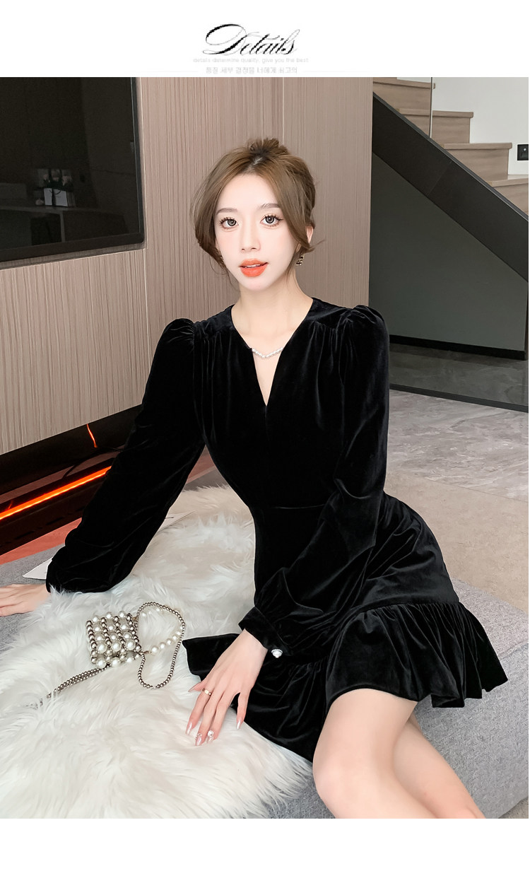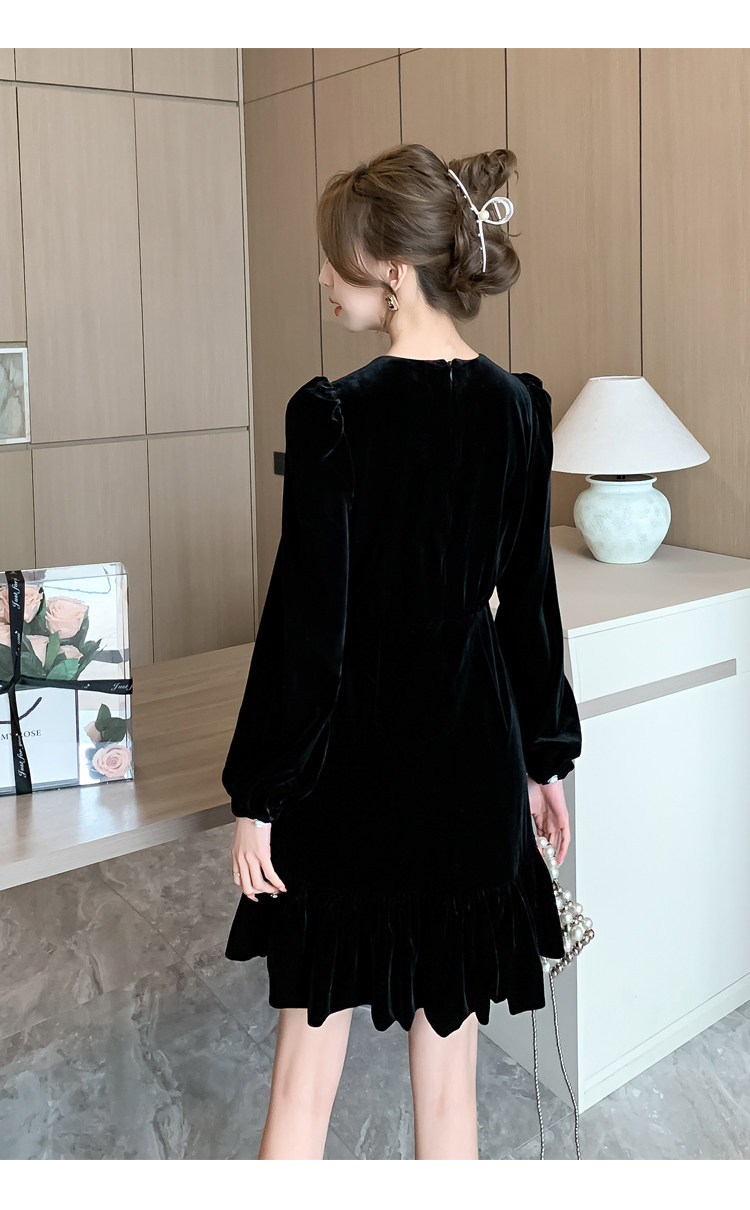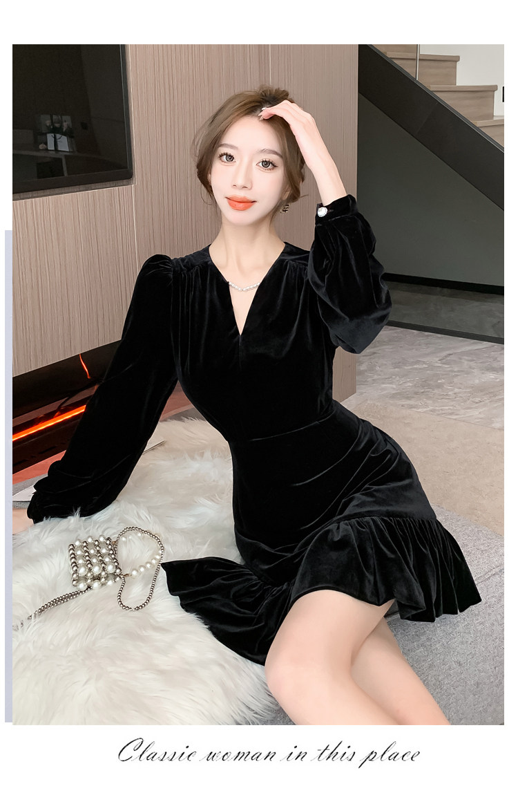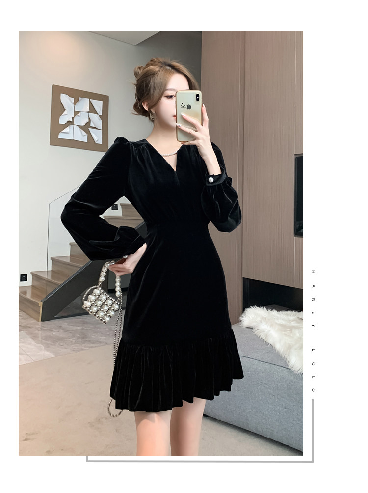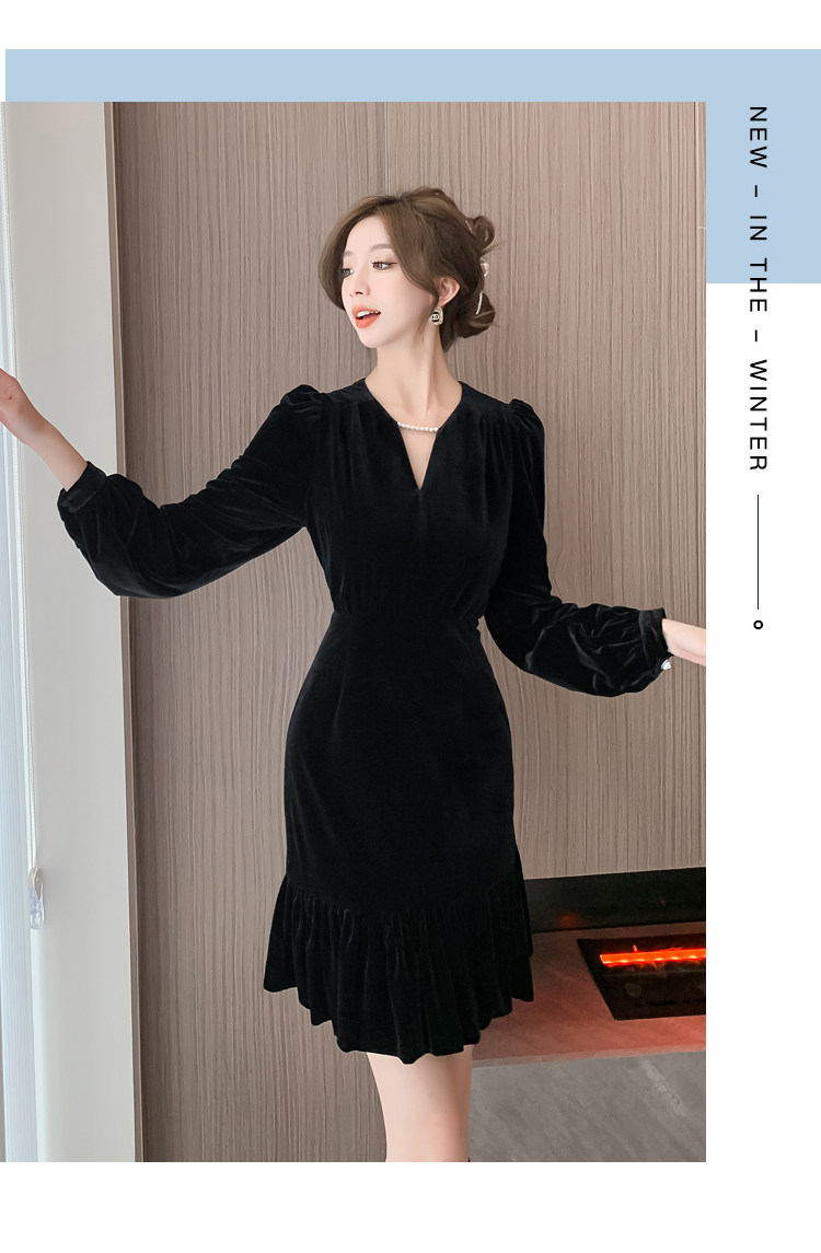 RM25859#秋冬新款高级显瘦小黑裙丝绒连衣裙