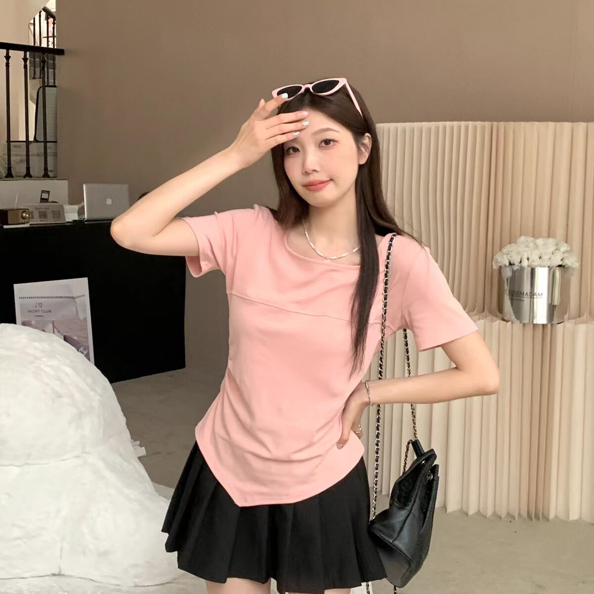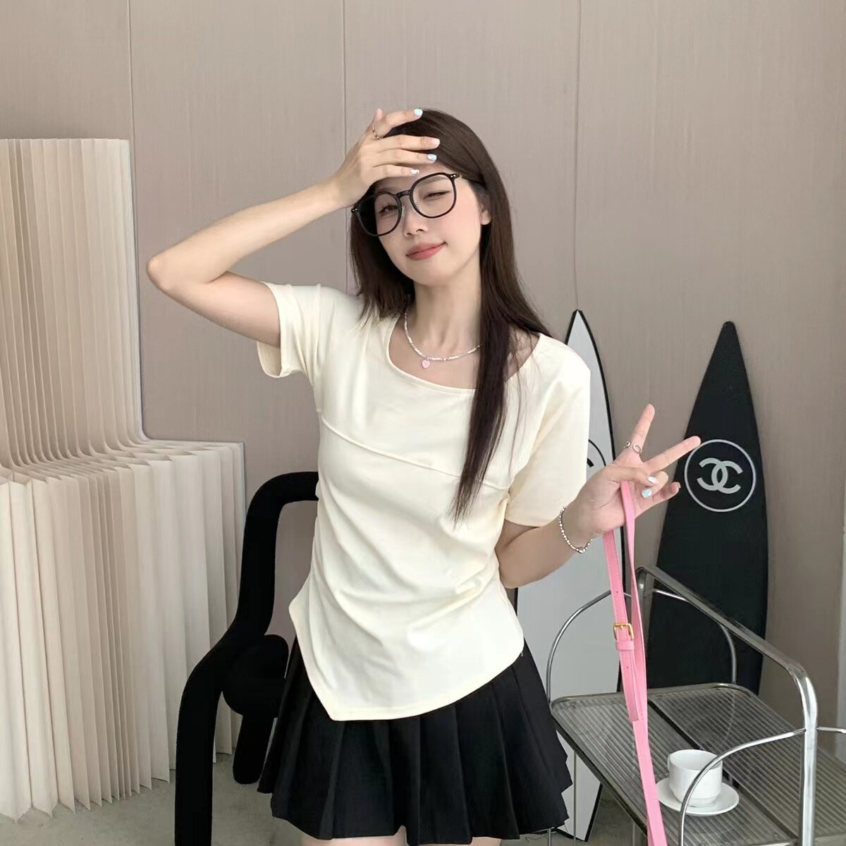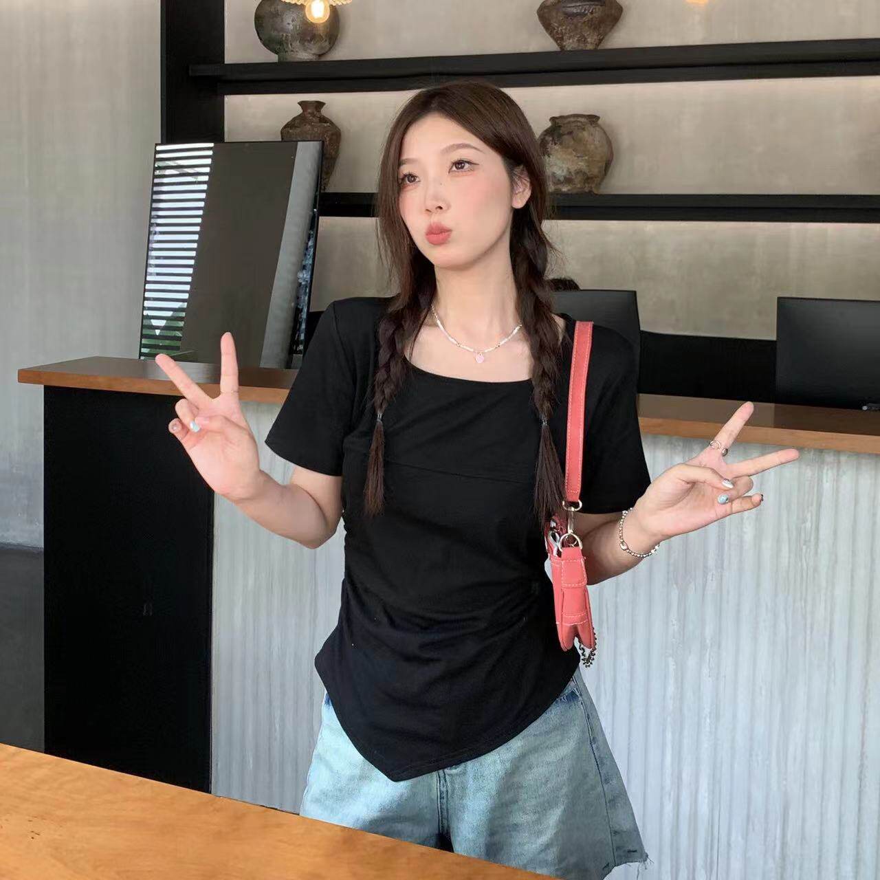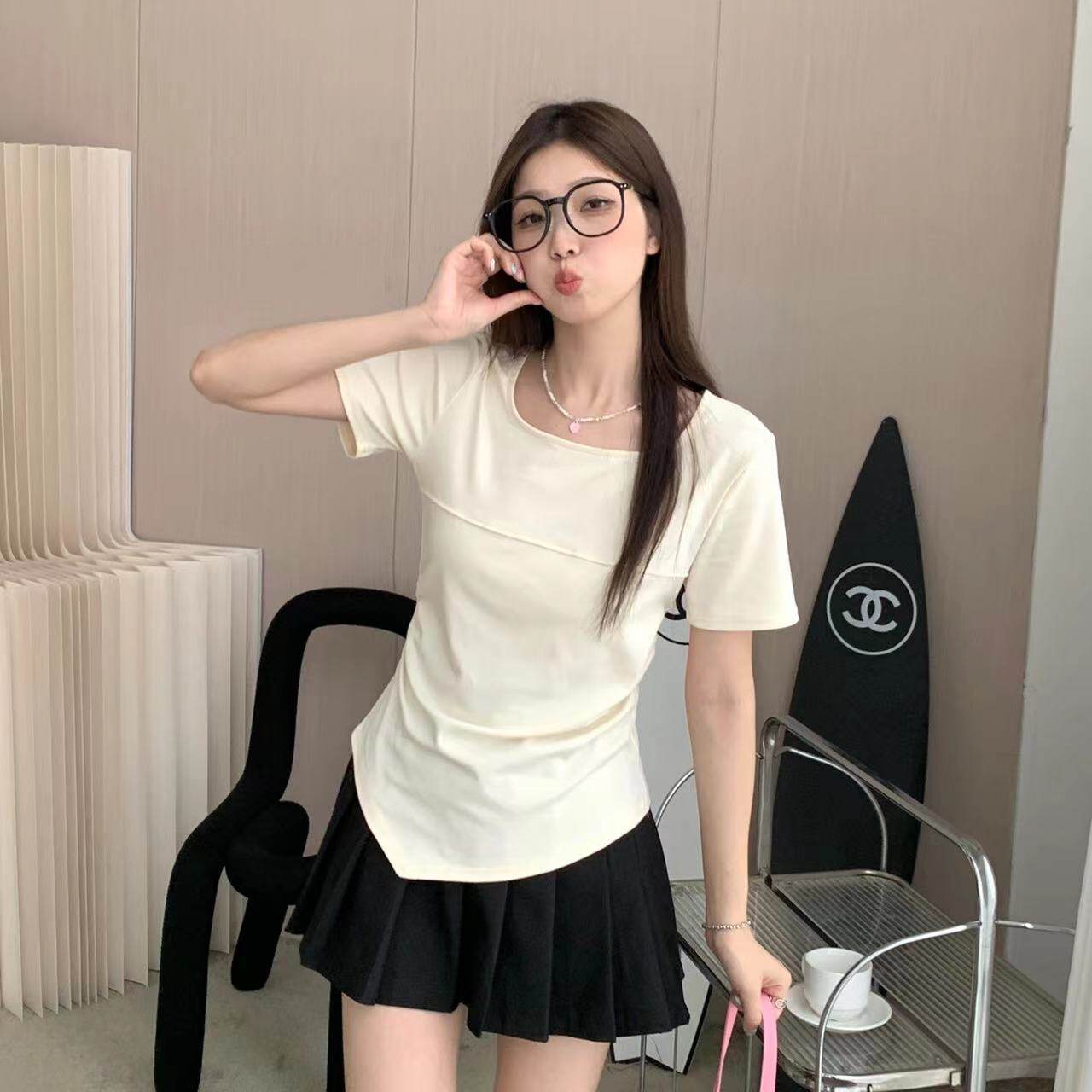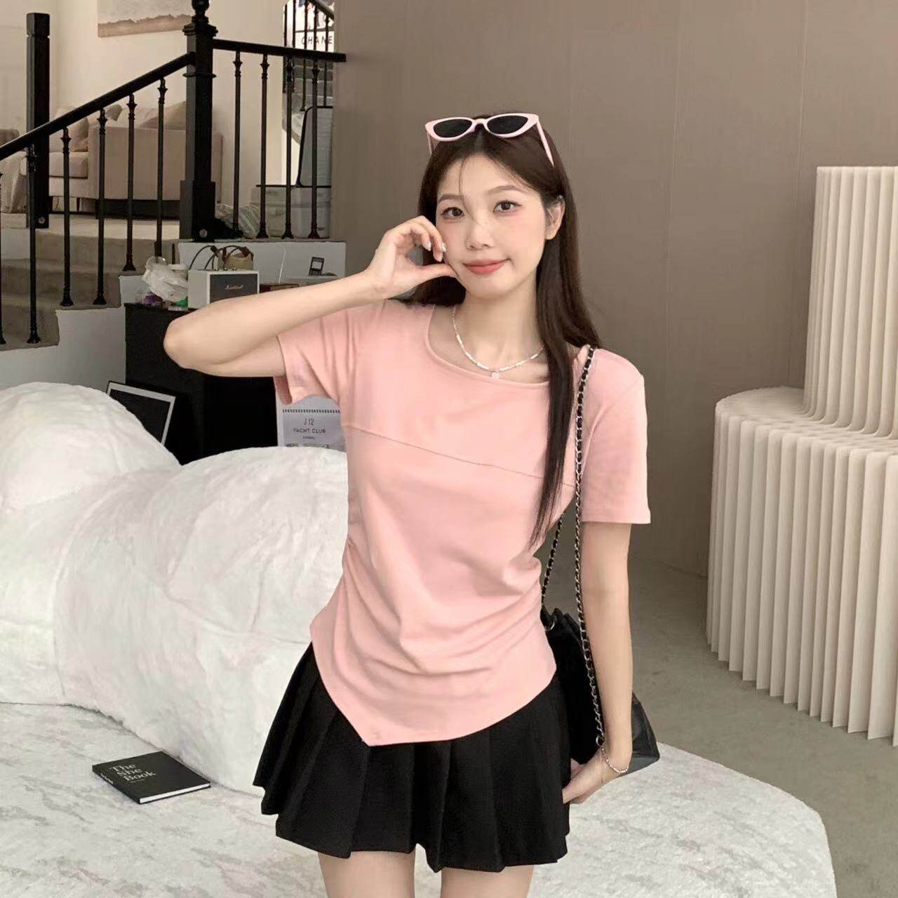 RM25868#大码胖MM正肩短袖T恤女夏季遮肉显瘦微胖设计感上衣女