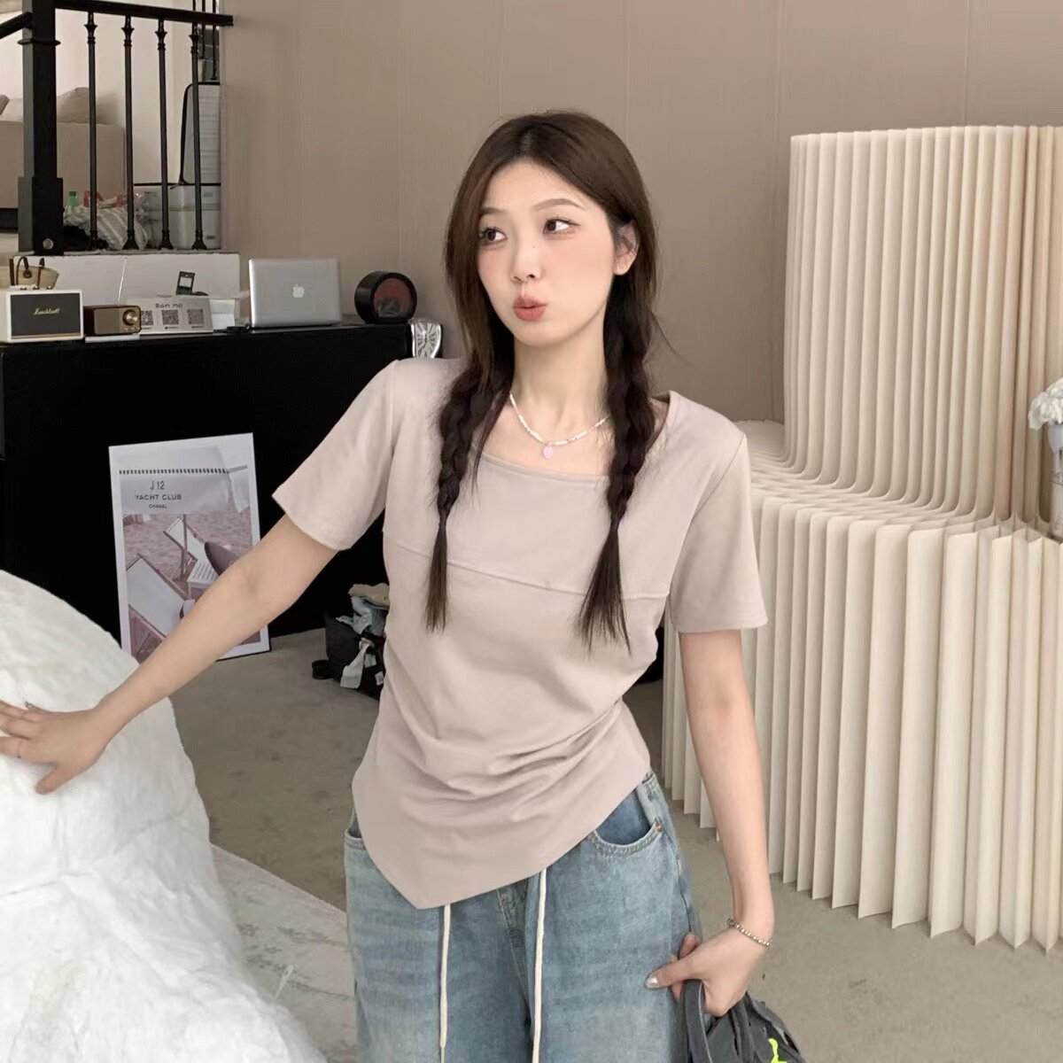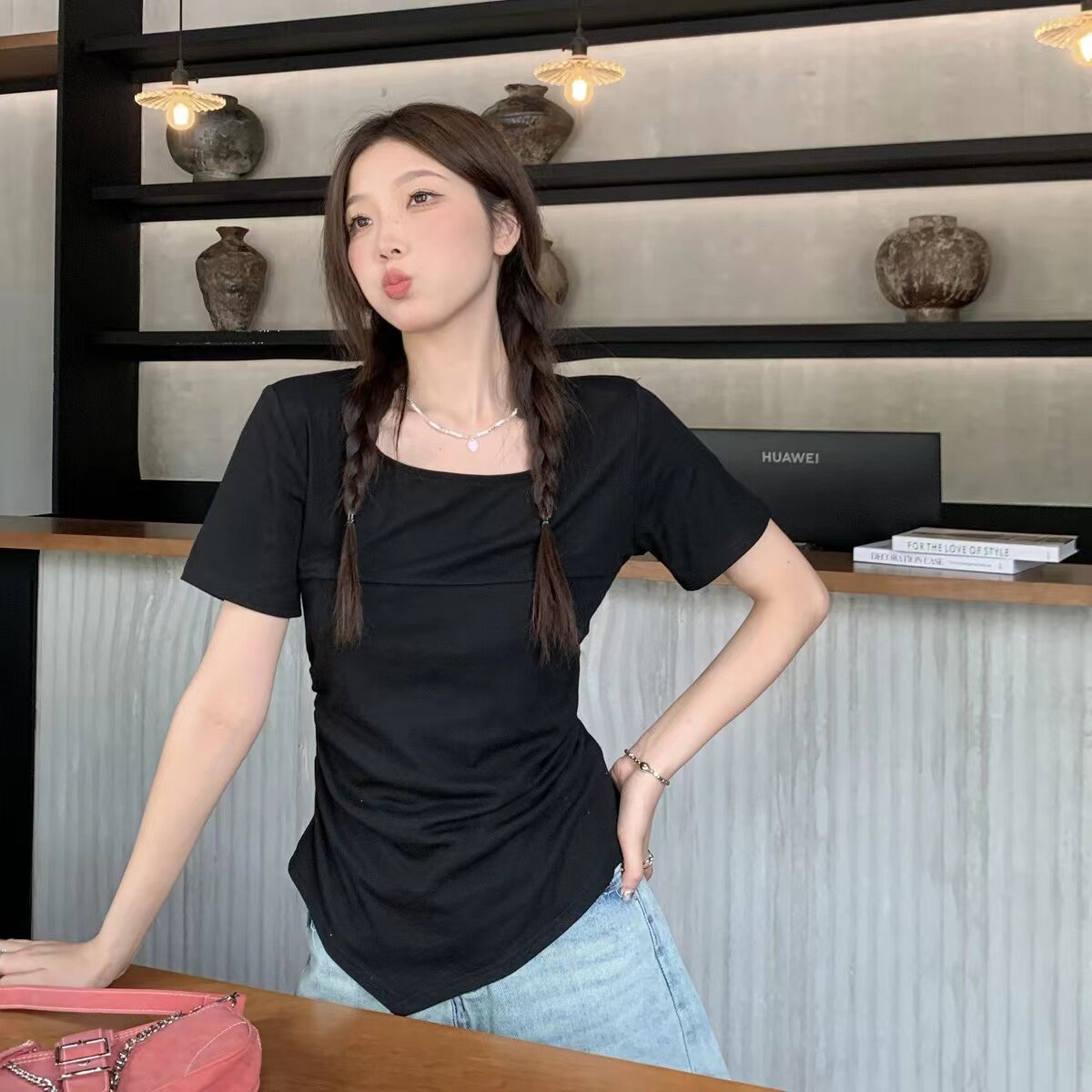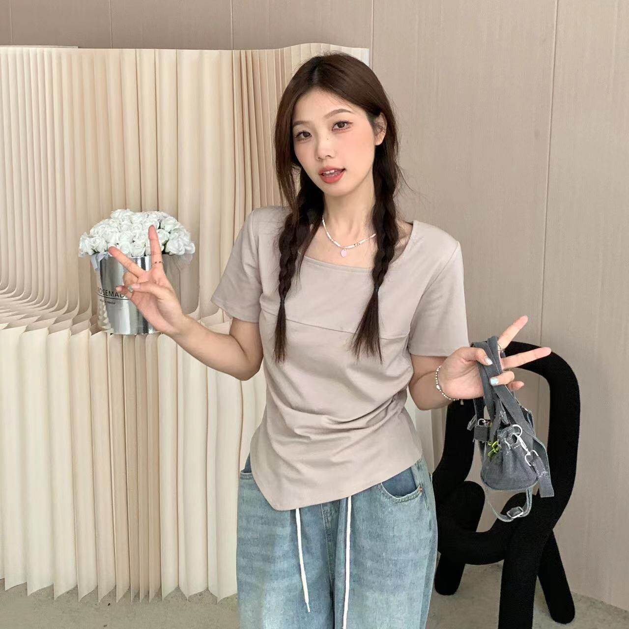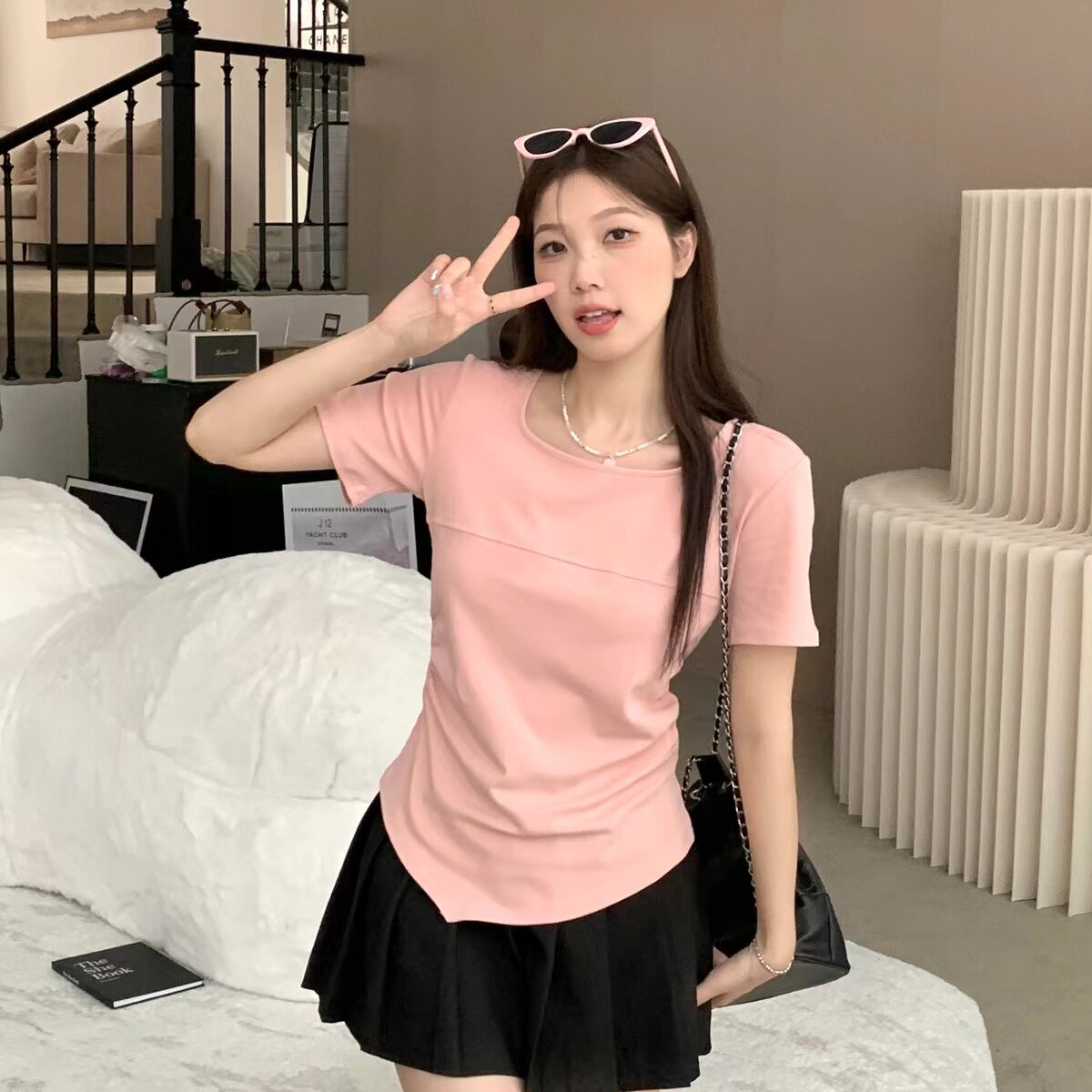 RM25868#大码胖MM正肩短袖T恤女夏季遮肉显瘦微胖设计感上衣女