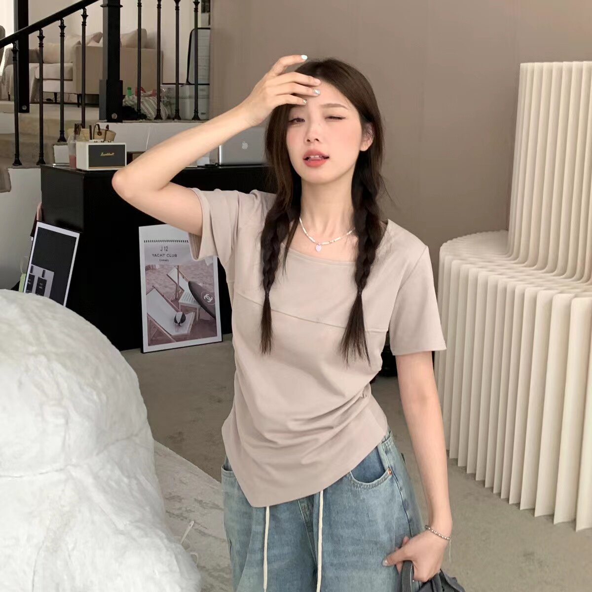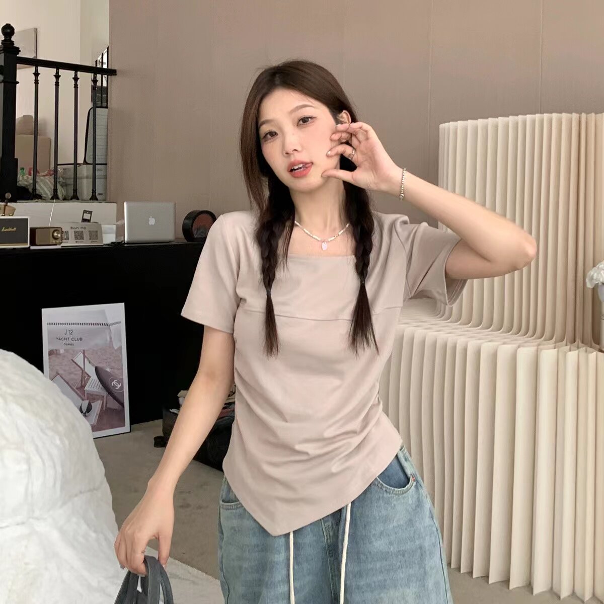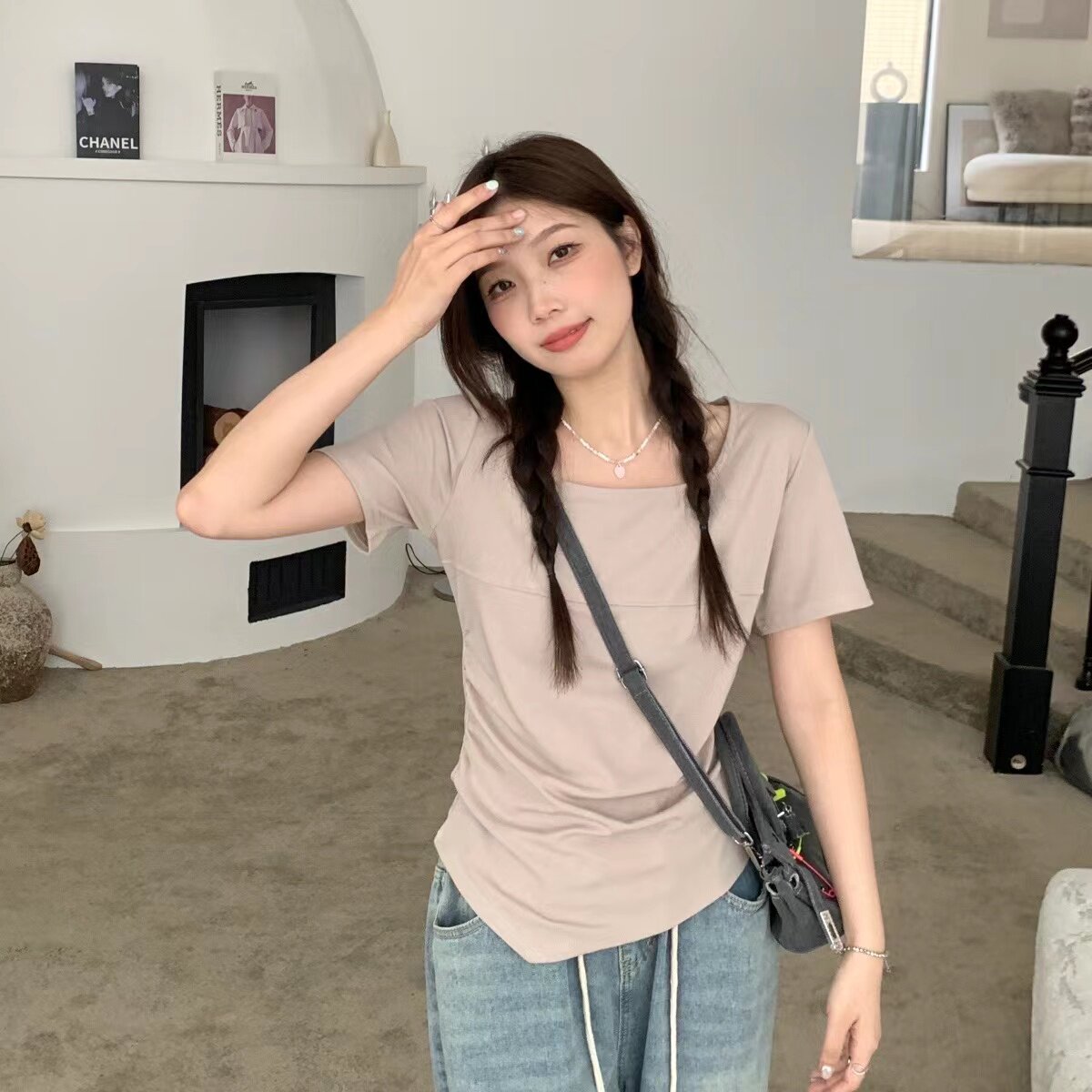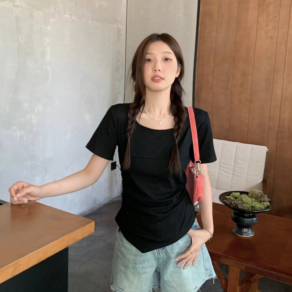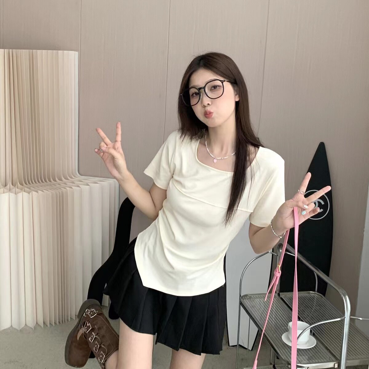 RM25868#大码胖MM正肩短袖T恤女夏季遮肉显瘦微胖设计感上衣女
