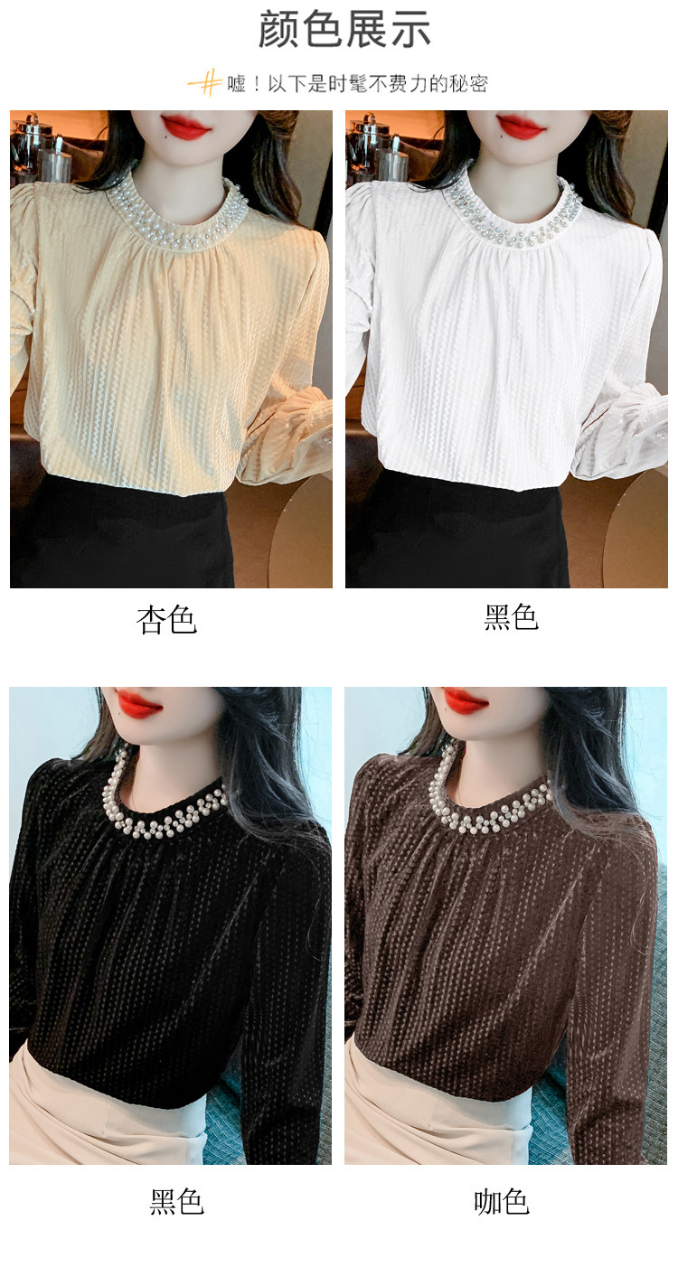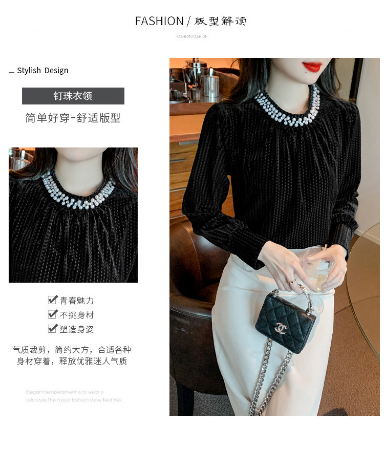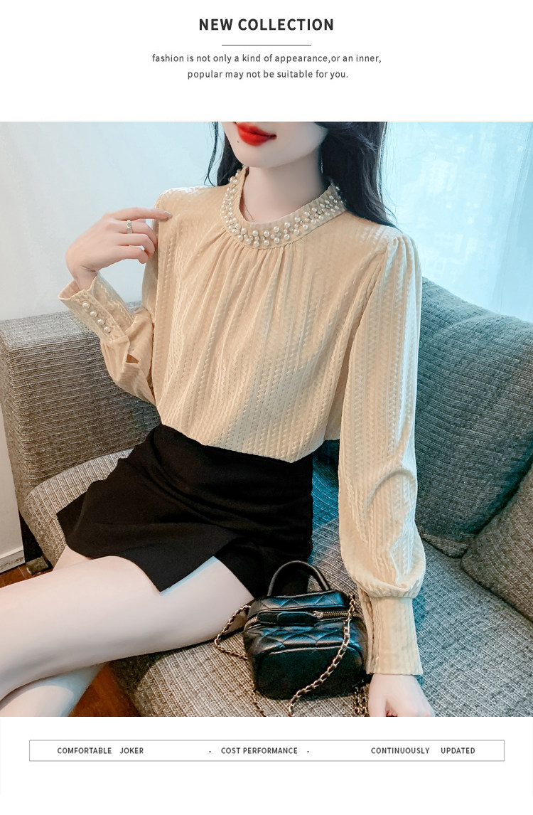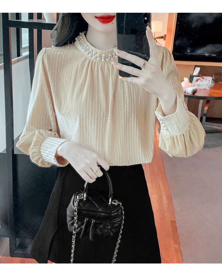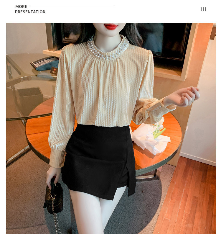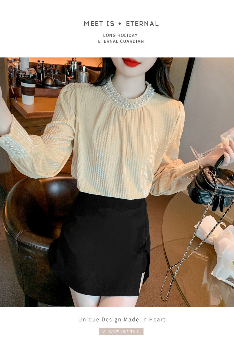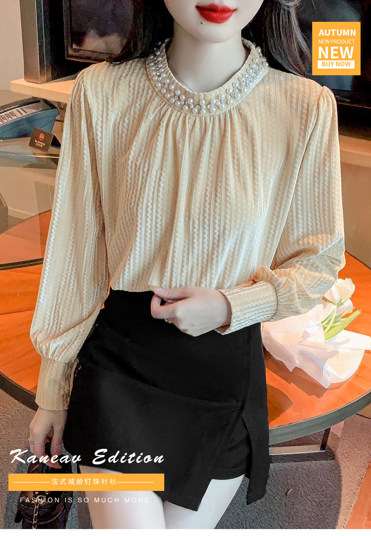 RM25870#法式减龄钉珠纯色设计感衬衫女大气显瘦内搭洋气高级感上衣女