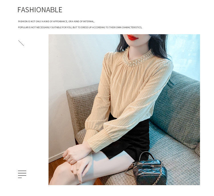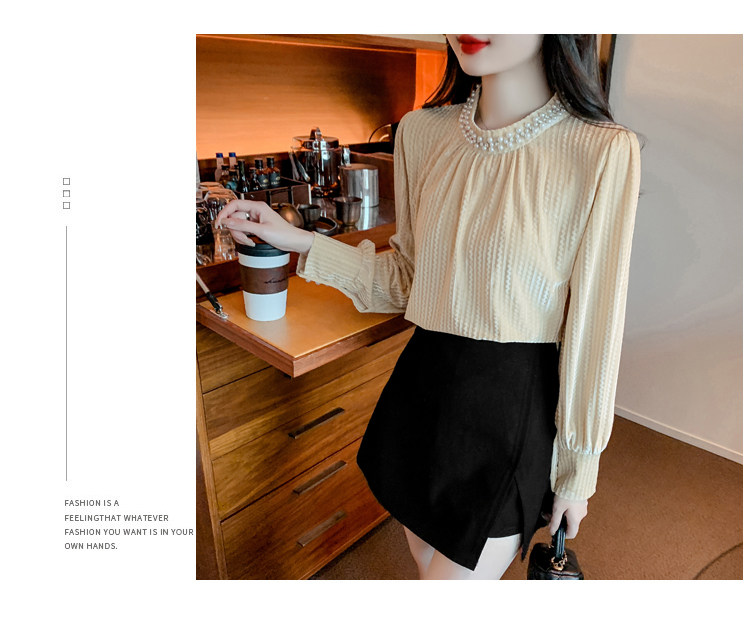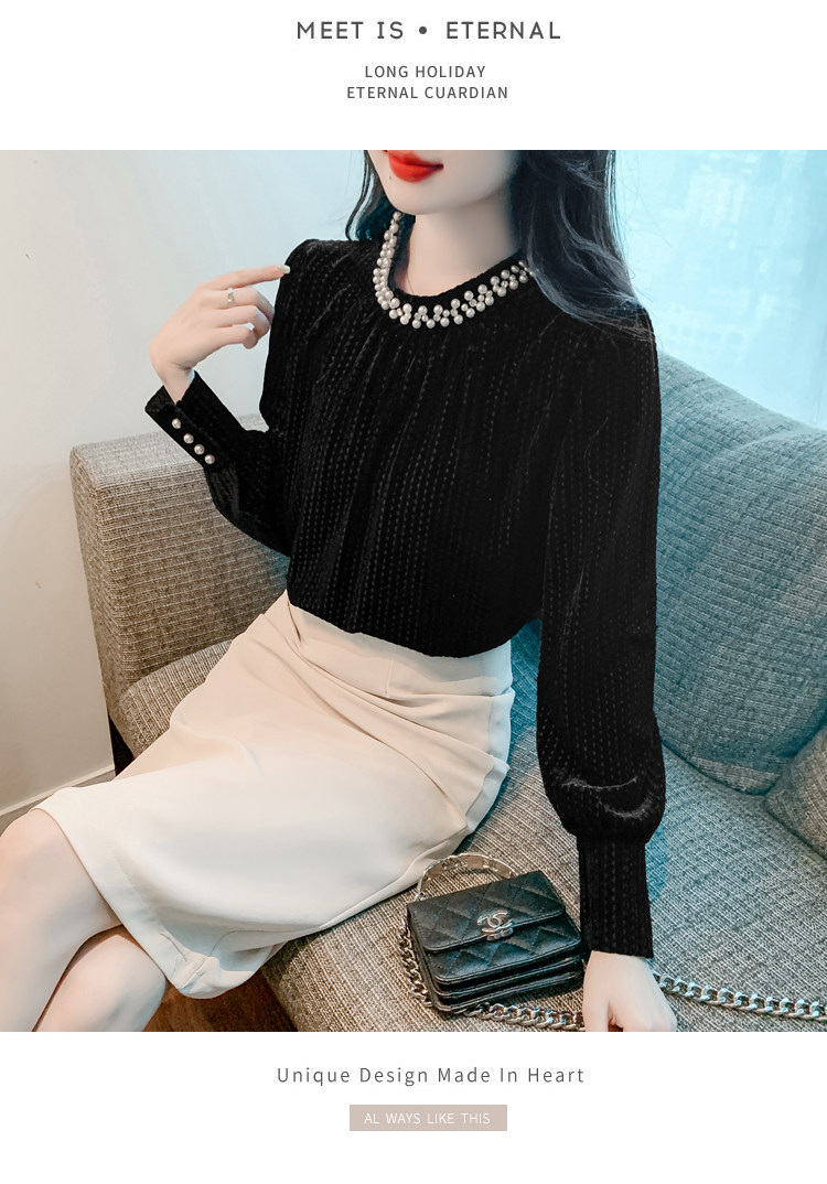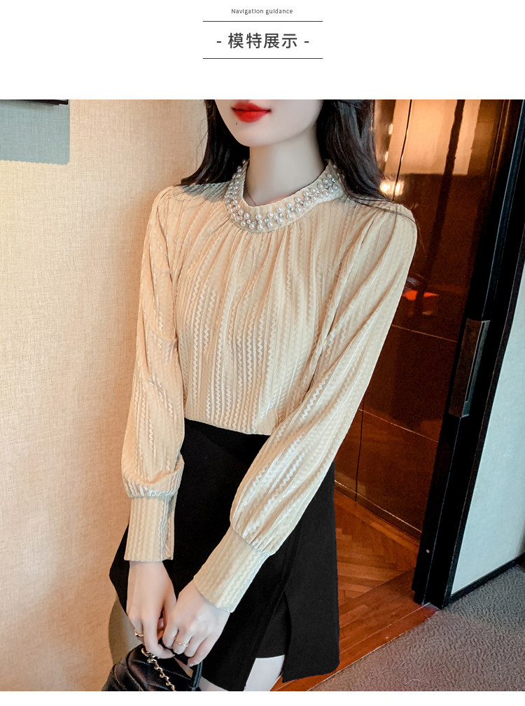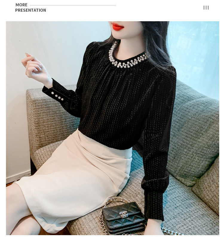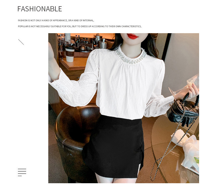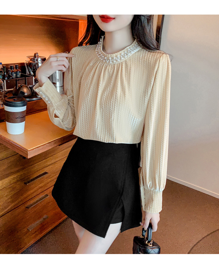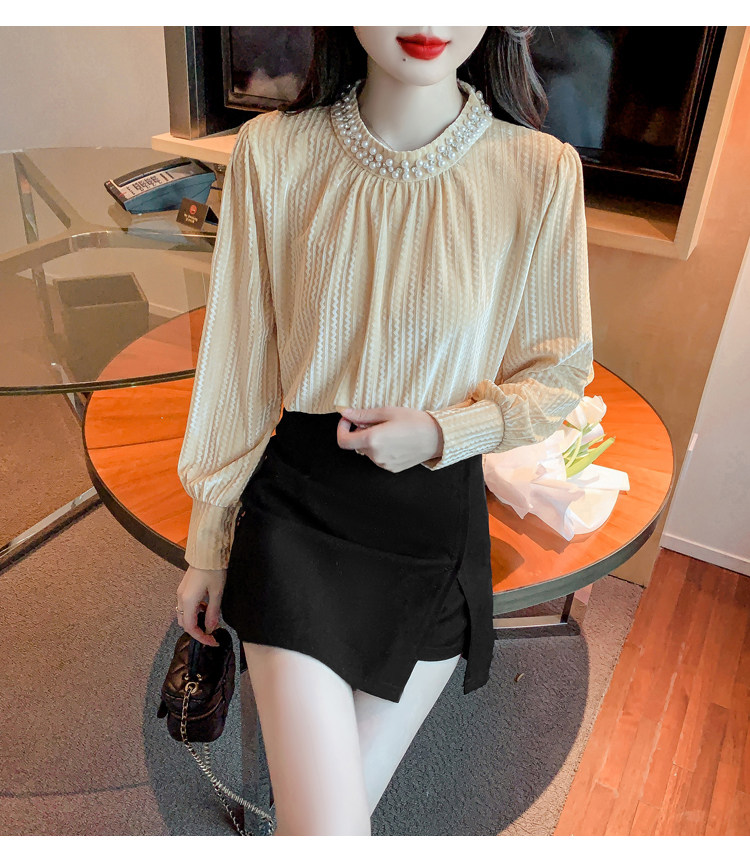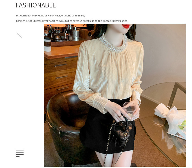 RM25870#法式减龄钉珠纯色设计感衬衫女大气显瘦内搭洋气高级感上衣女