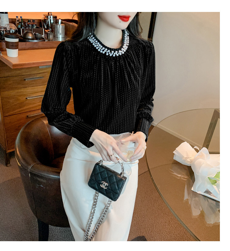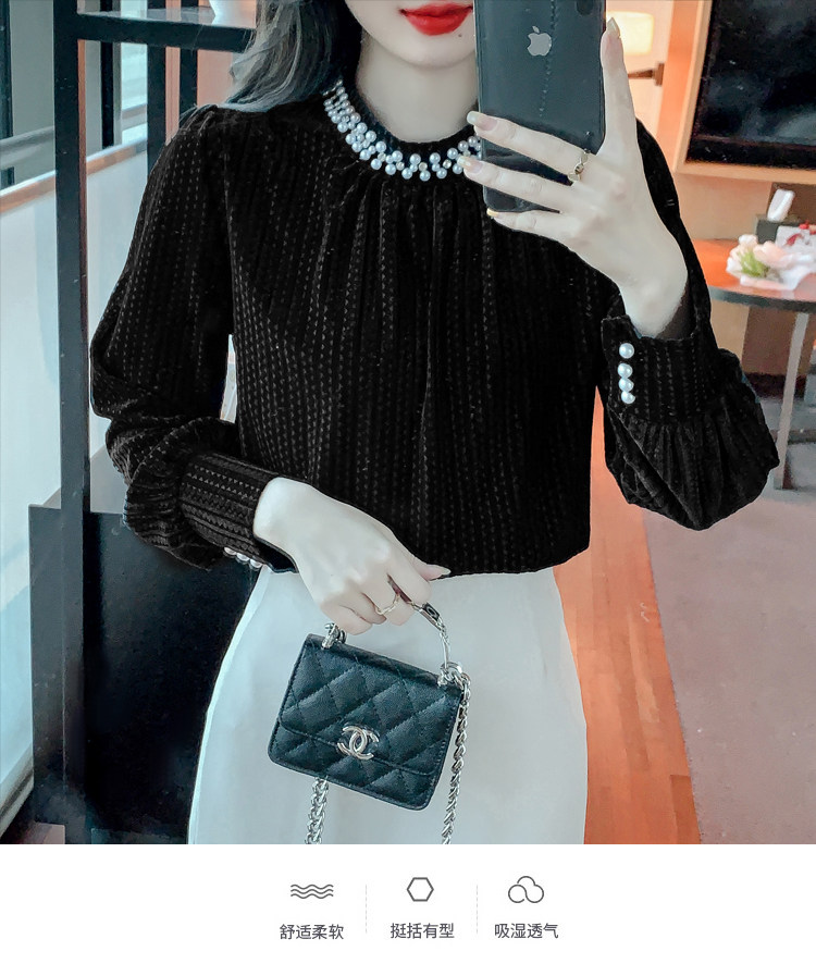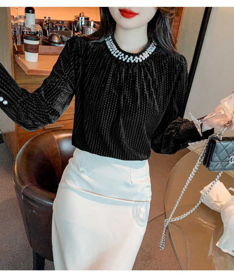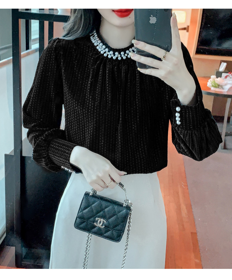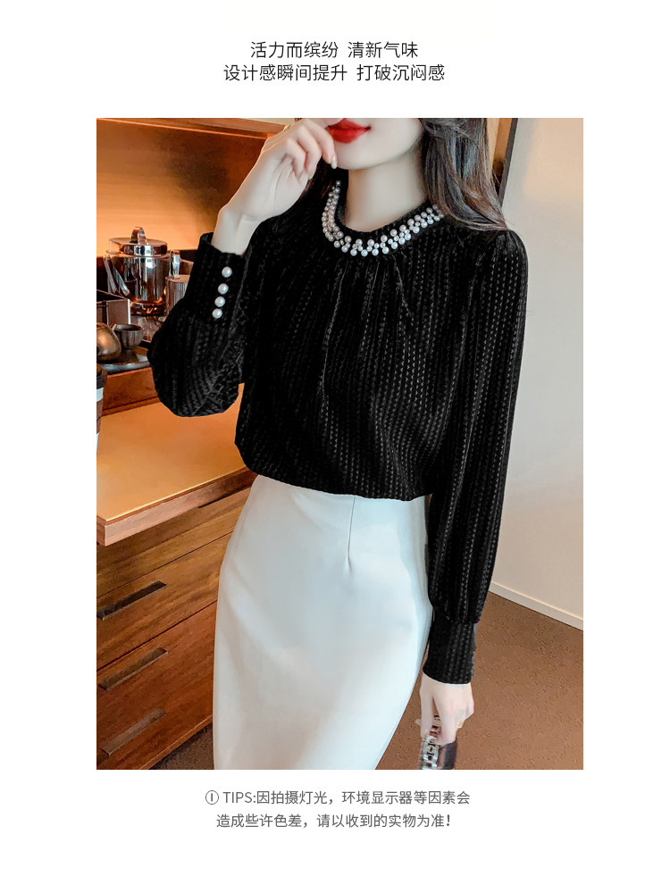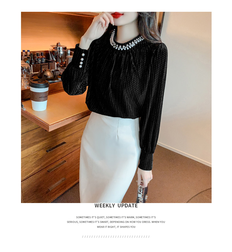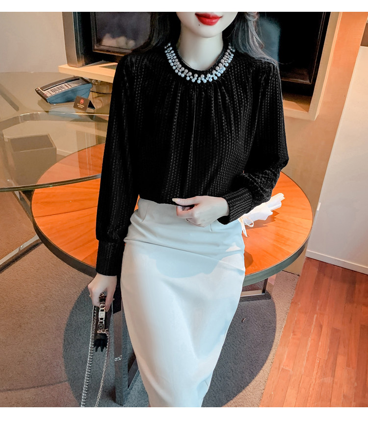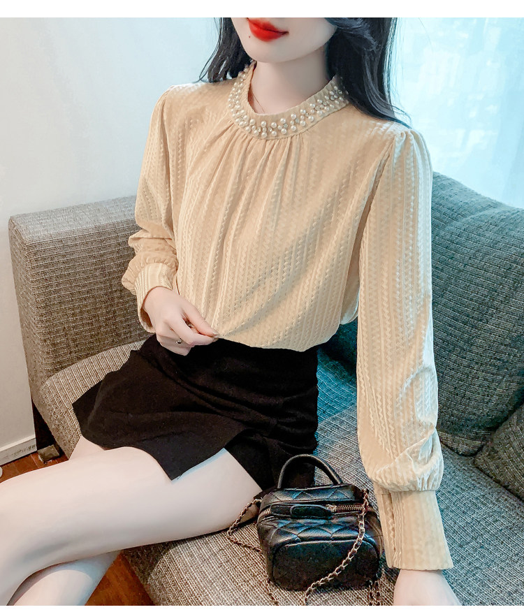 RM25870#法式减龄钉珠纯色设计感衬衫女大气显瘦内搭洋气高级感上衣女