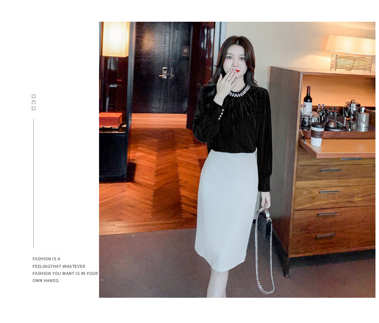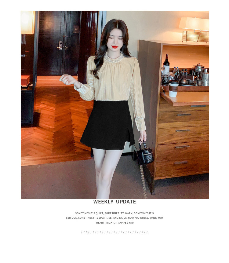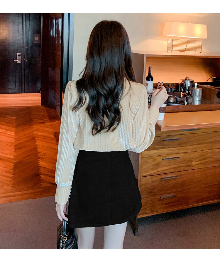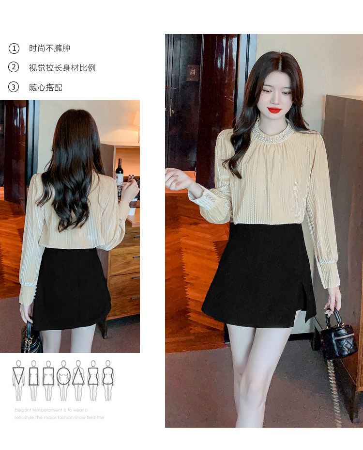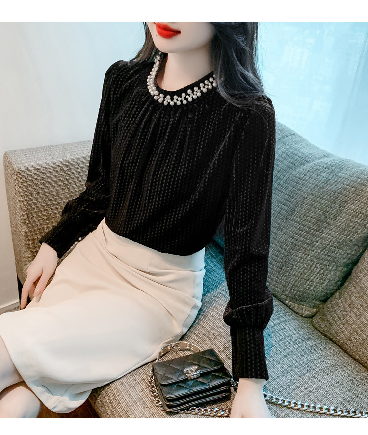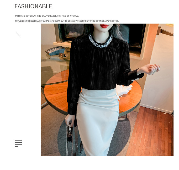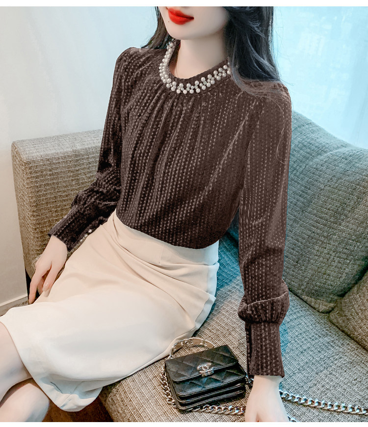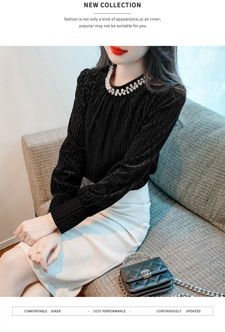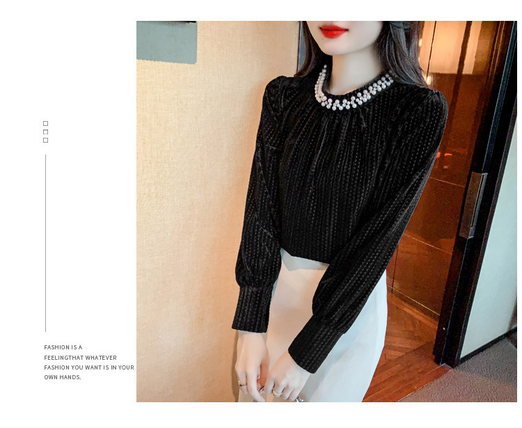 RM25870#法式减龄钉珠纯色设计感衬衫女大气显瘦内搭洋气高级感上衣女